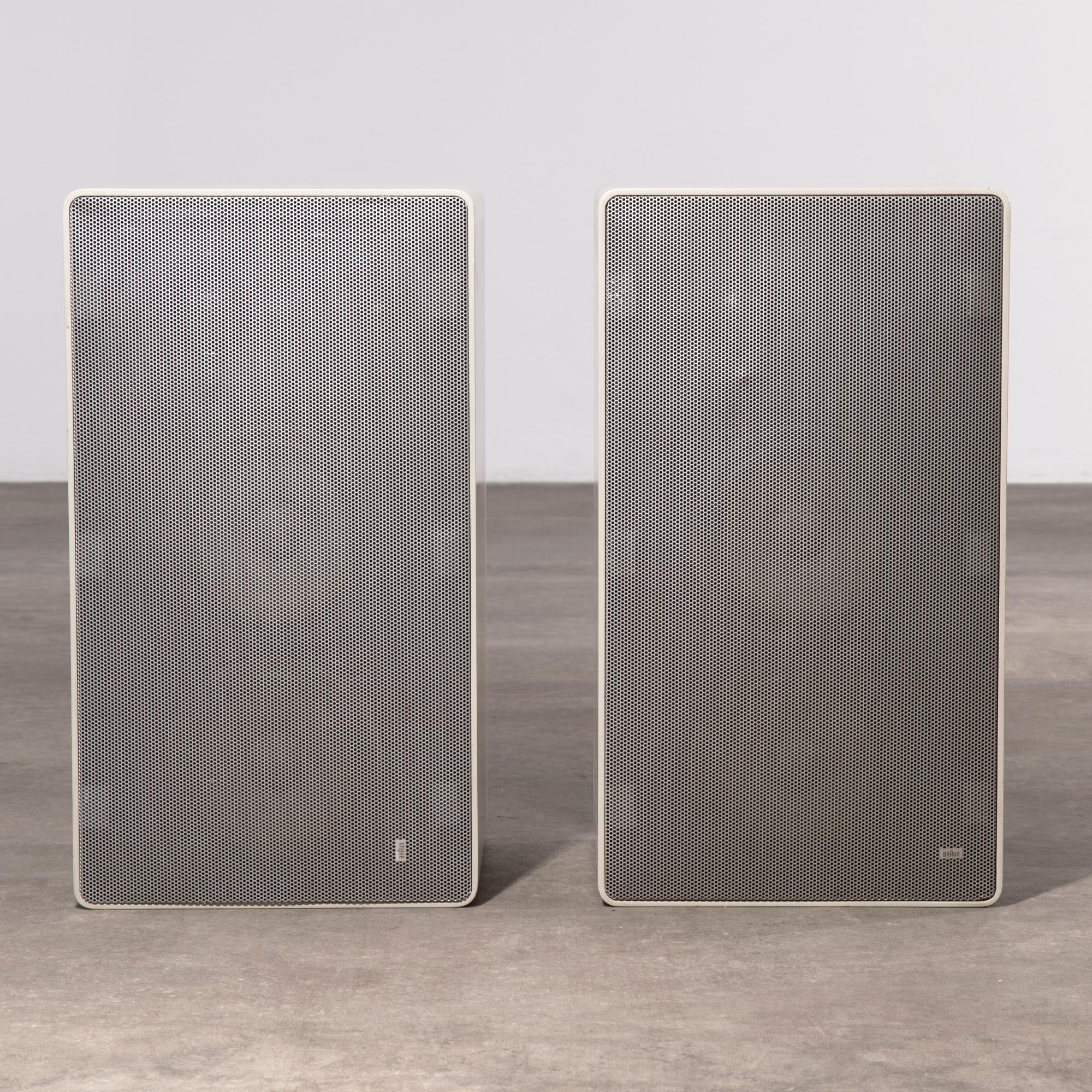 Entwurf 1973. Ausführung Braun AG. Weiß lackiertes Holz, Lochblech. 31 x 55 x 27 cm. Bezeichnet.