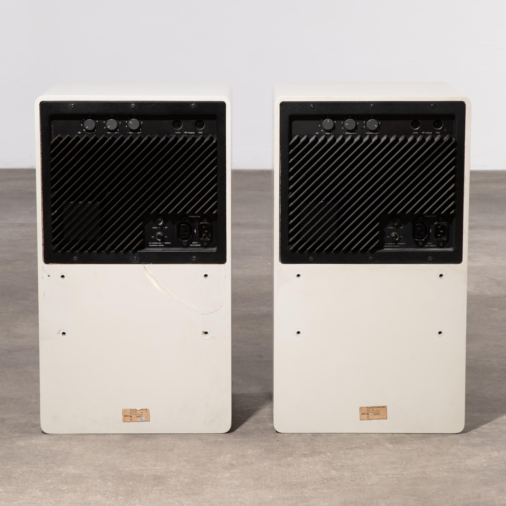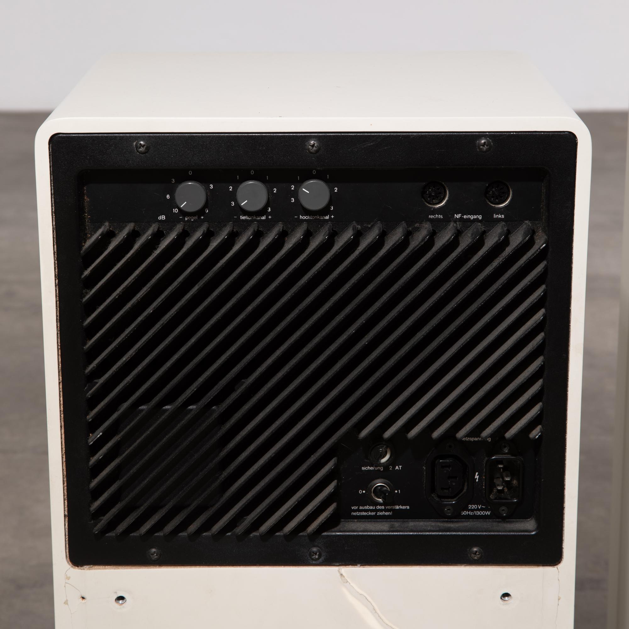 Allgemein optisch guter Zustand mit leichten, altersgemäßen Gebrauchsspuren. Bei einer Box an der Rückseite eine restaurierte Stelle am Gehäuse, eine halbe Sicherungsabdeckung fehlt. Die Kabel sind vorhanden.