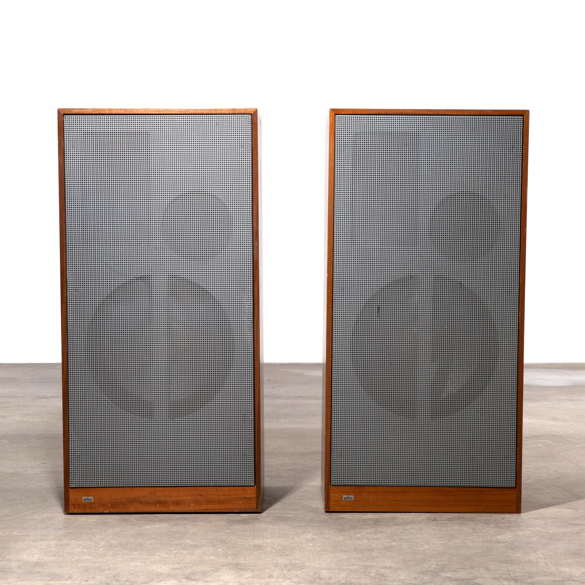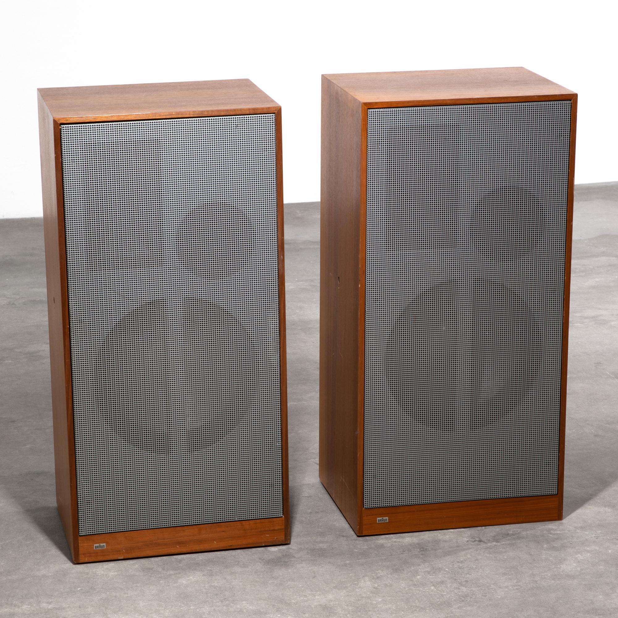 Entwurf 1962, Ausführung Braun AG. Holzgehäuse mit Nussbaumfurnier, Lochblech. 85 x 41,5 x 33 cm. Mit Typenschild bezeichnet.