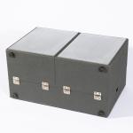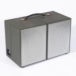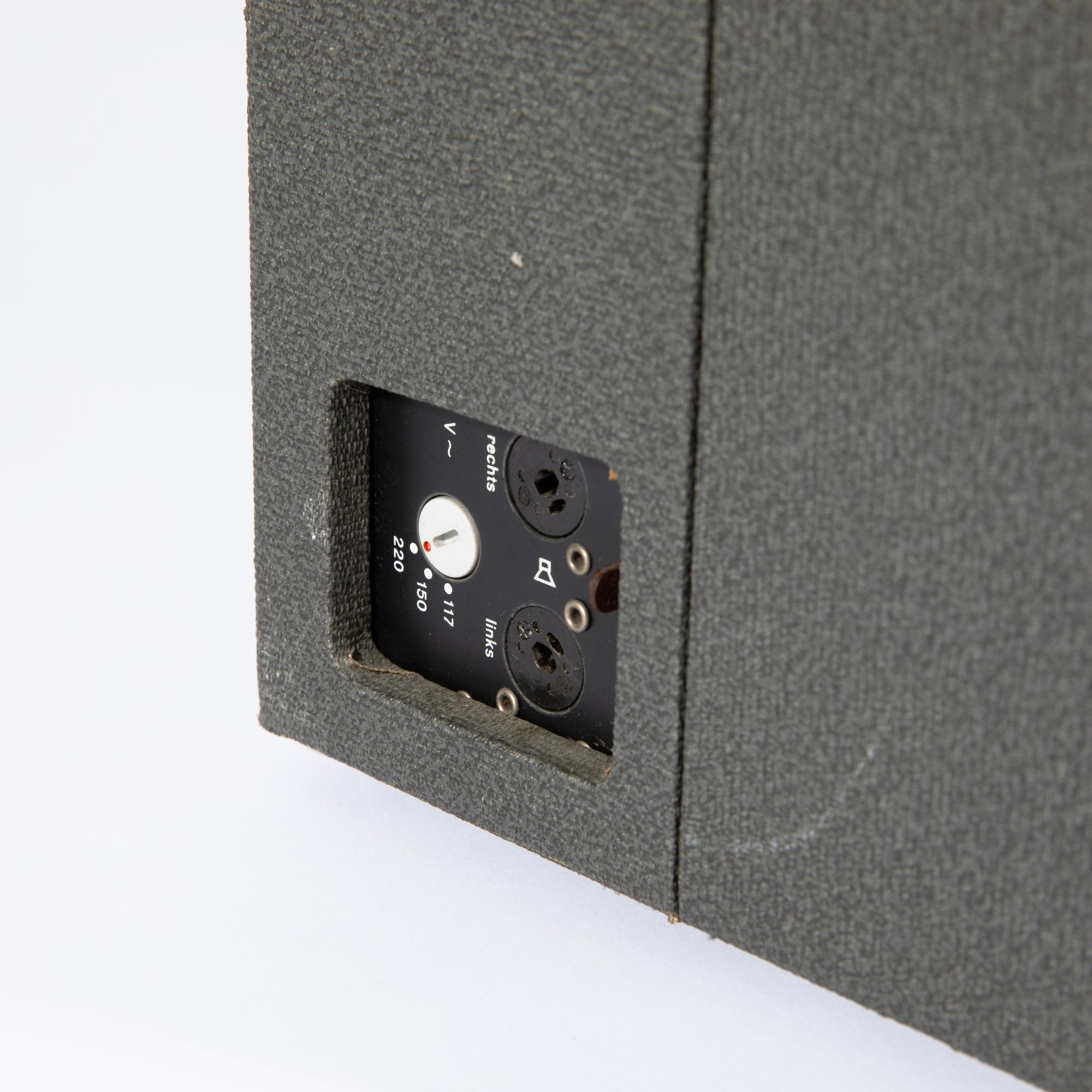 Entwurf 1961. Ausführung Braun AG. Grau bezogenes Holz, Metall, Kunststoff. 27 x 40 x 21 cm.