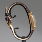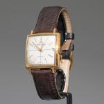 1950er Jahre. Gold. Cremefarbenes Zifferblatt mit aufgelegten Stundenbalken und Datumsanzeige. Dunkelbraunes Lederarmband nicht Original. Goldschließe original. 2,8 x 2,8 cm. Zifferblatt bezeichnet: JAEGER-LECOULTRE / FABRIQUE EN SUISSE / AUTOMATIC / SWISS MADE. Gehäuse rückseitig bezeichnet mit französischer Herstellerpunze und Goldpunze (Adlerkopf) sowie '164125'.