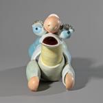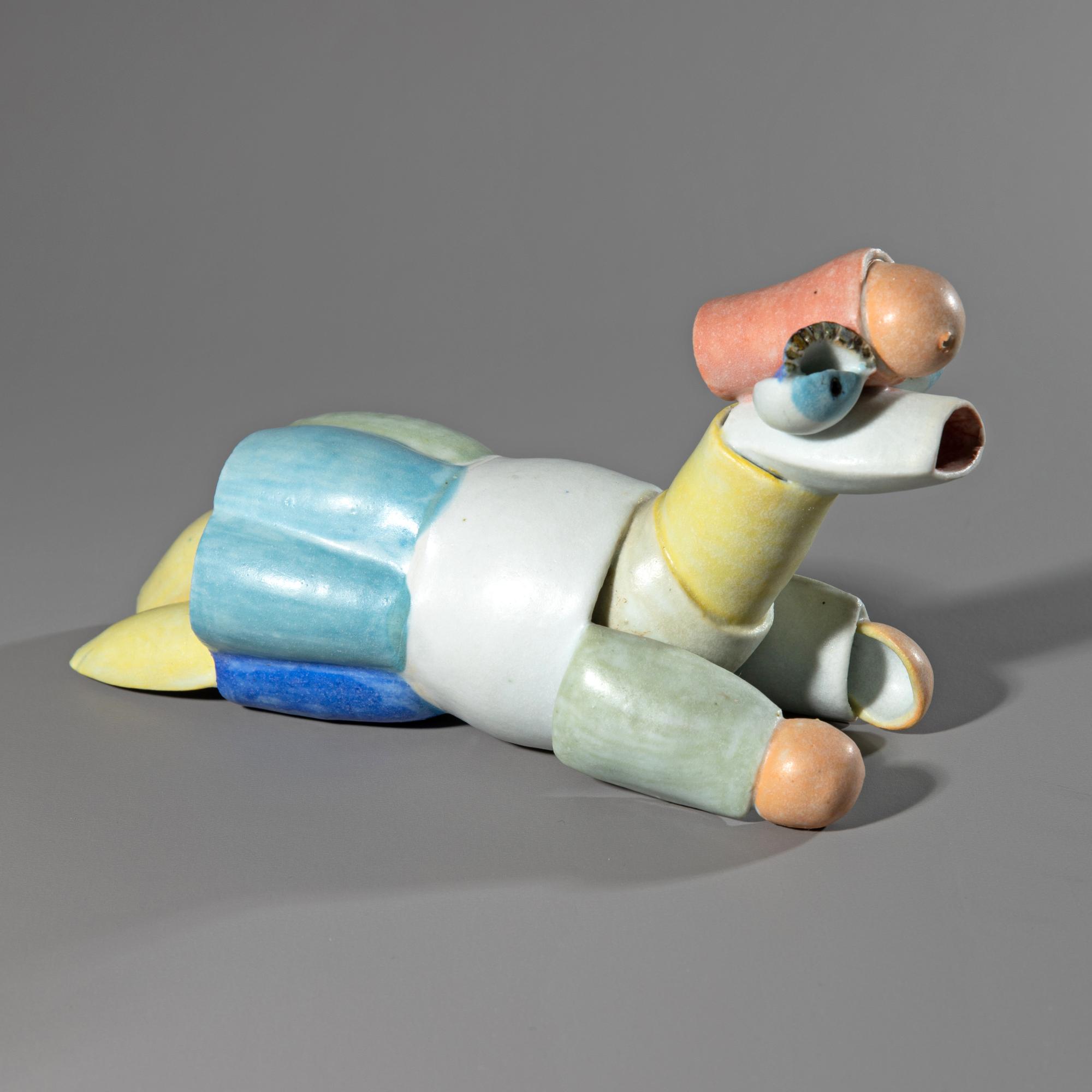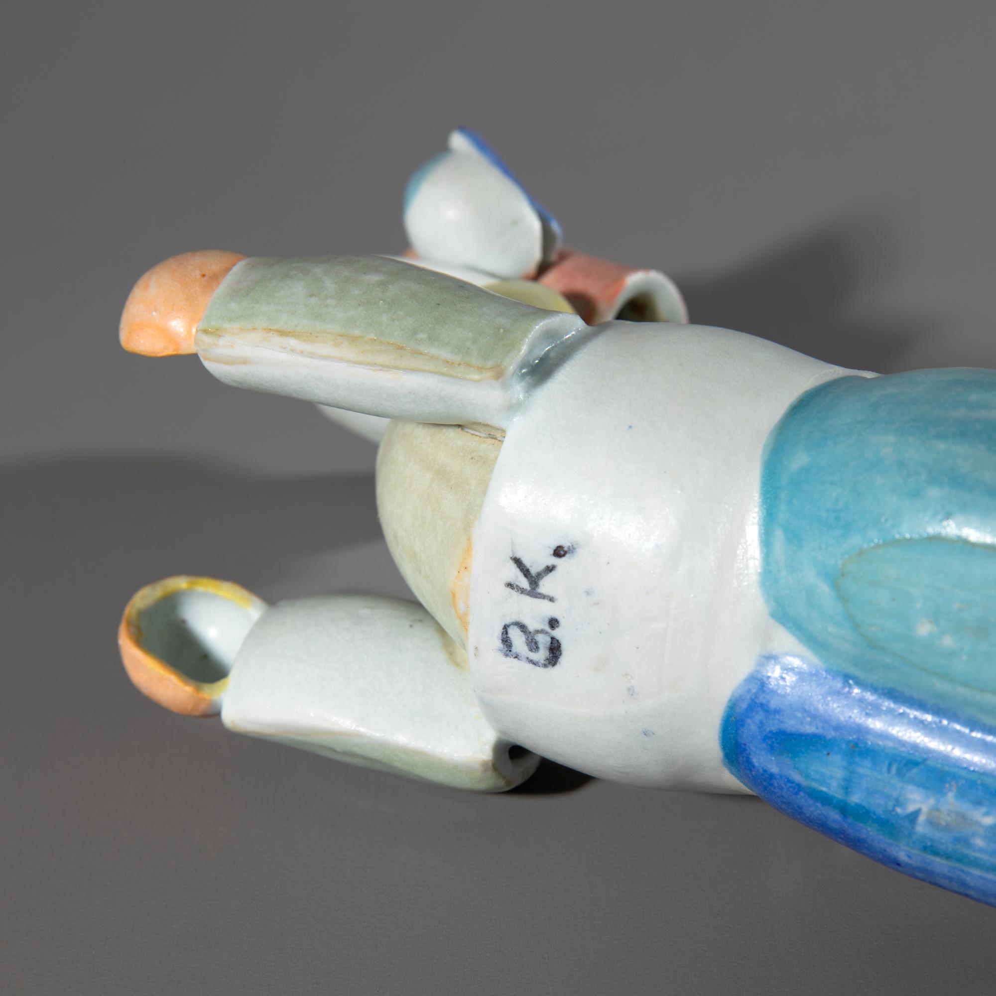Keramik, polychrom glasiert. Aus gebogenen Hohlformen montiert. 11,5 x 21 x 7,5 cm. Unterseitig monogrammiert: B.K.