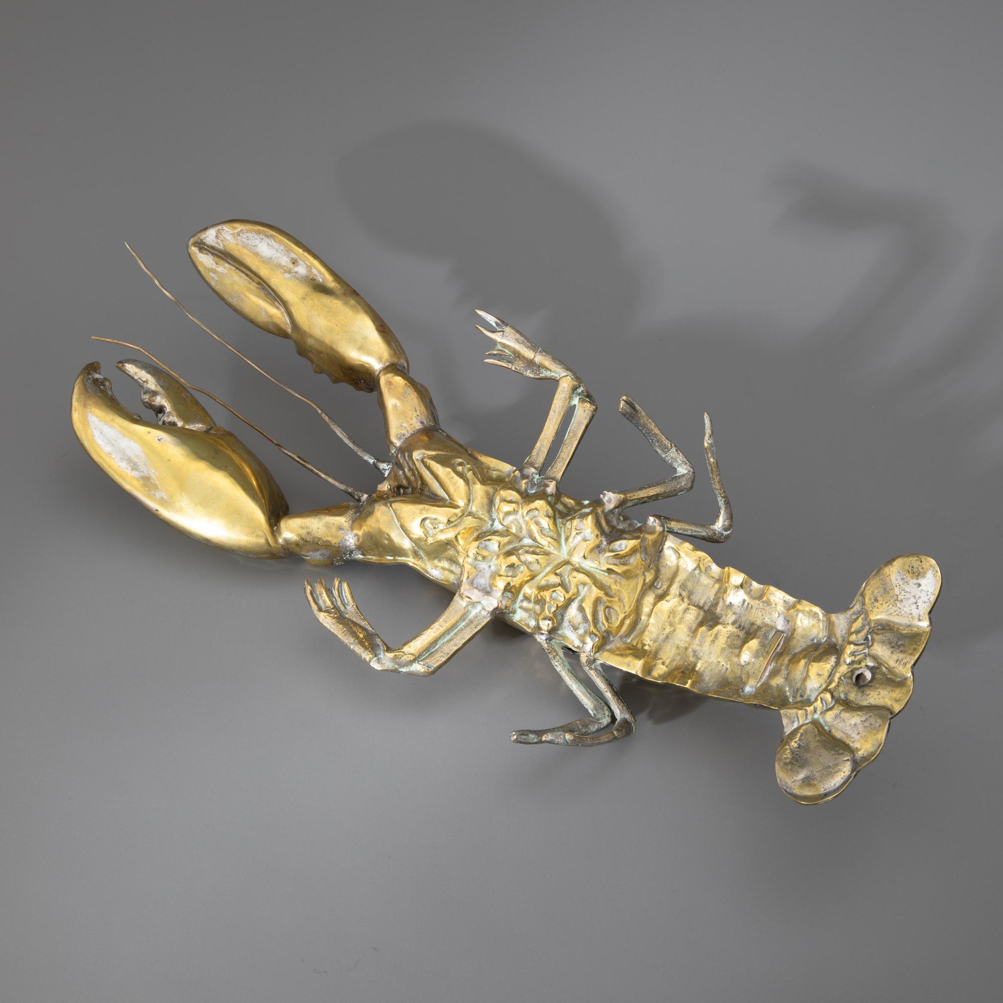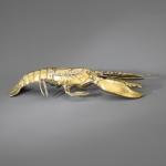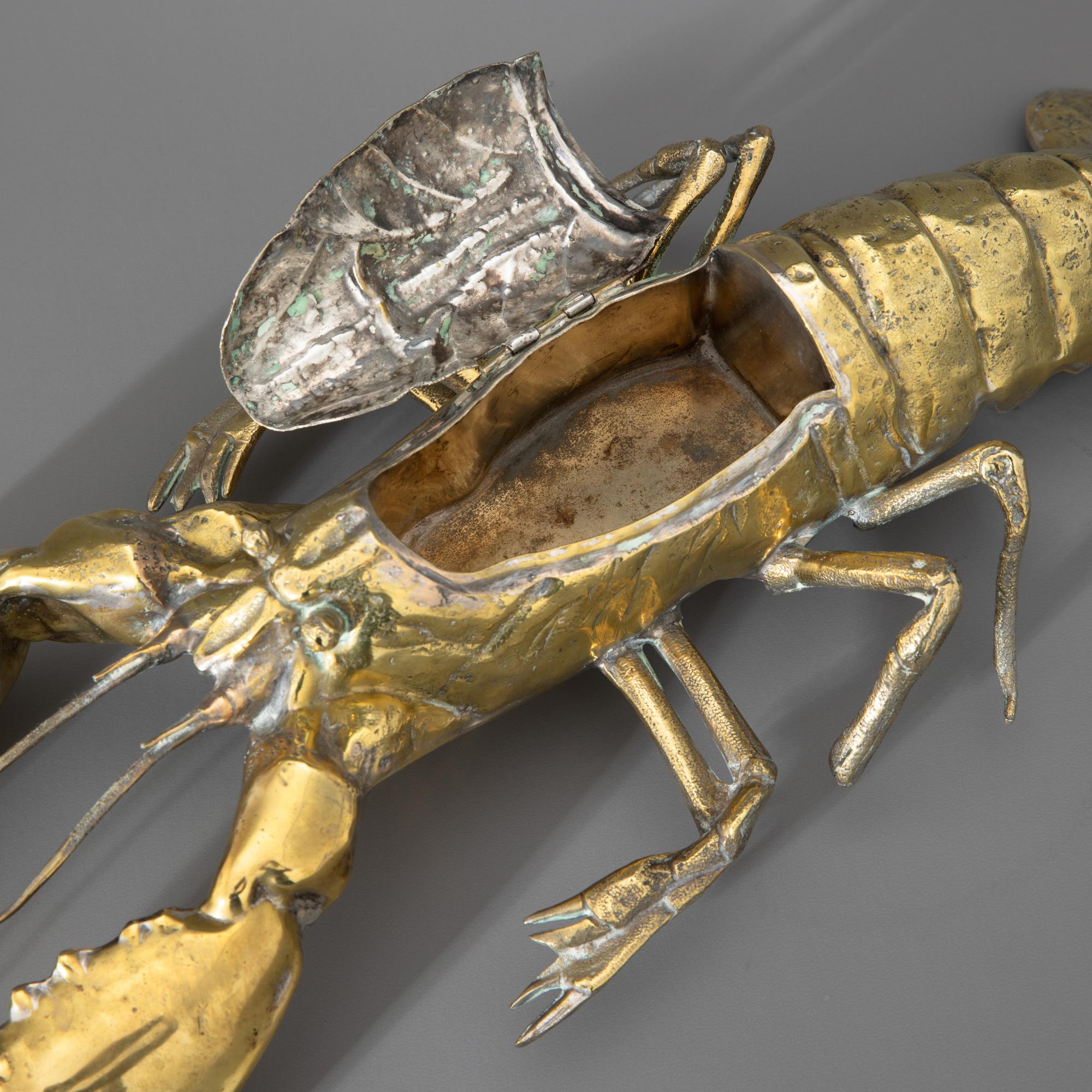 Vergoldetes Metall. Vollplastisch ausgearbeiteter Hummer mit scharniertem Deckel. L. 55 cm. Unterseitig bezeichnet: Franco Lapini / ITALY (Prägestempel).