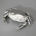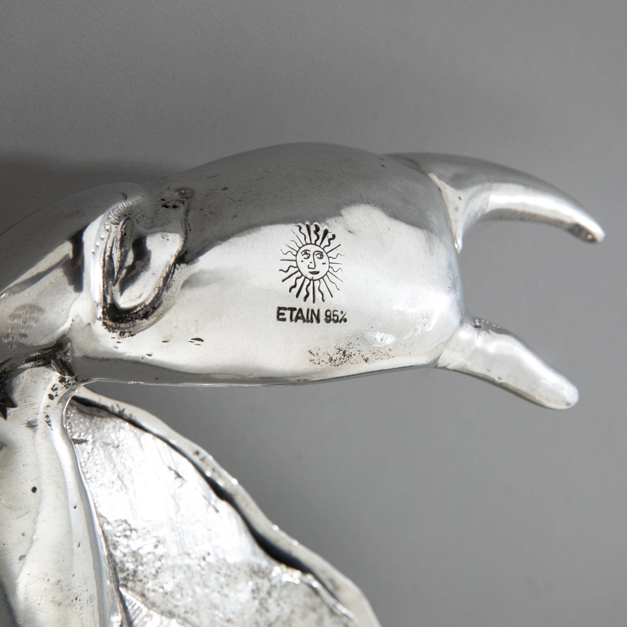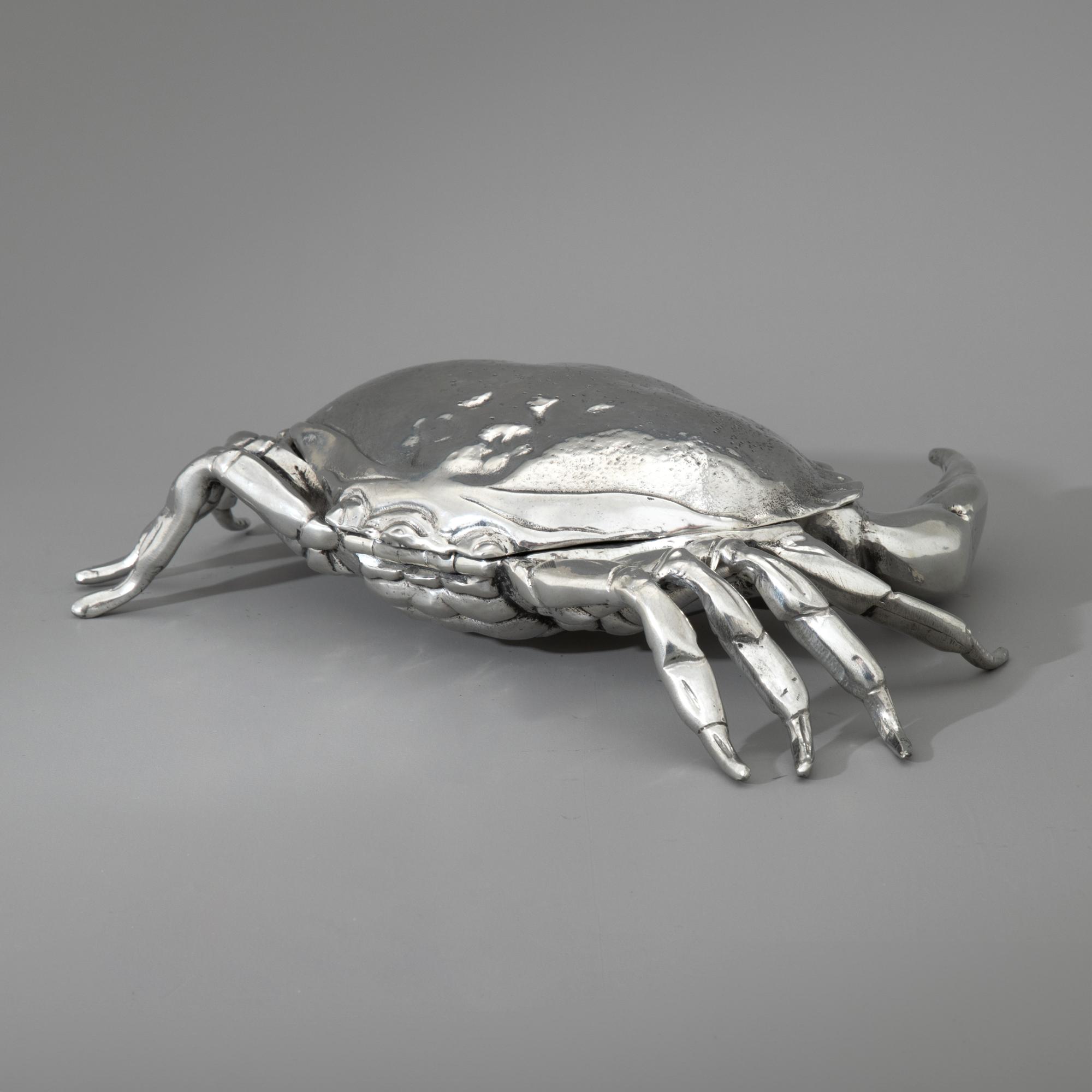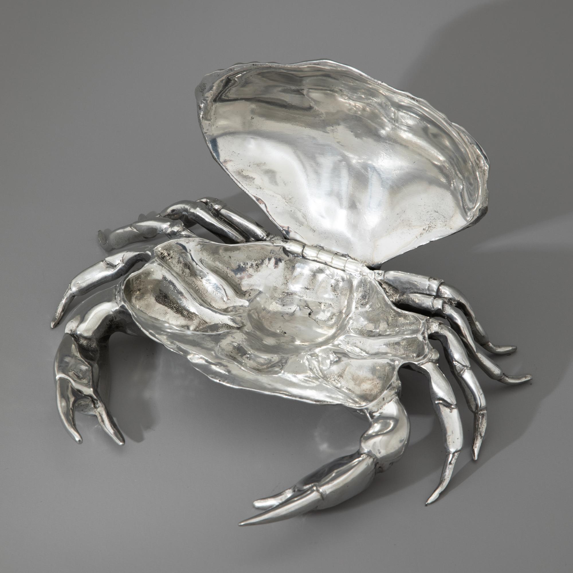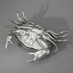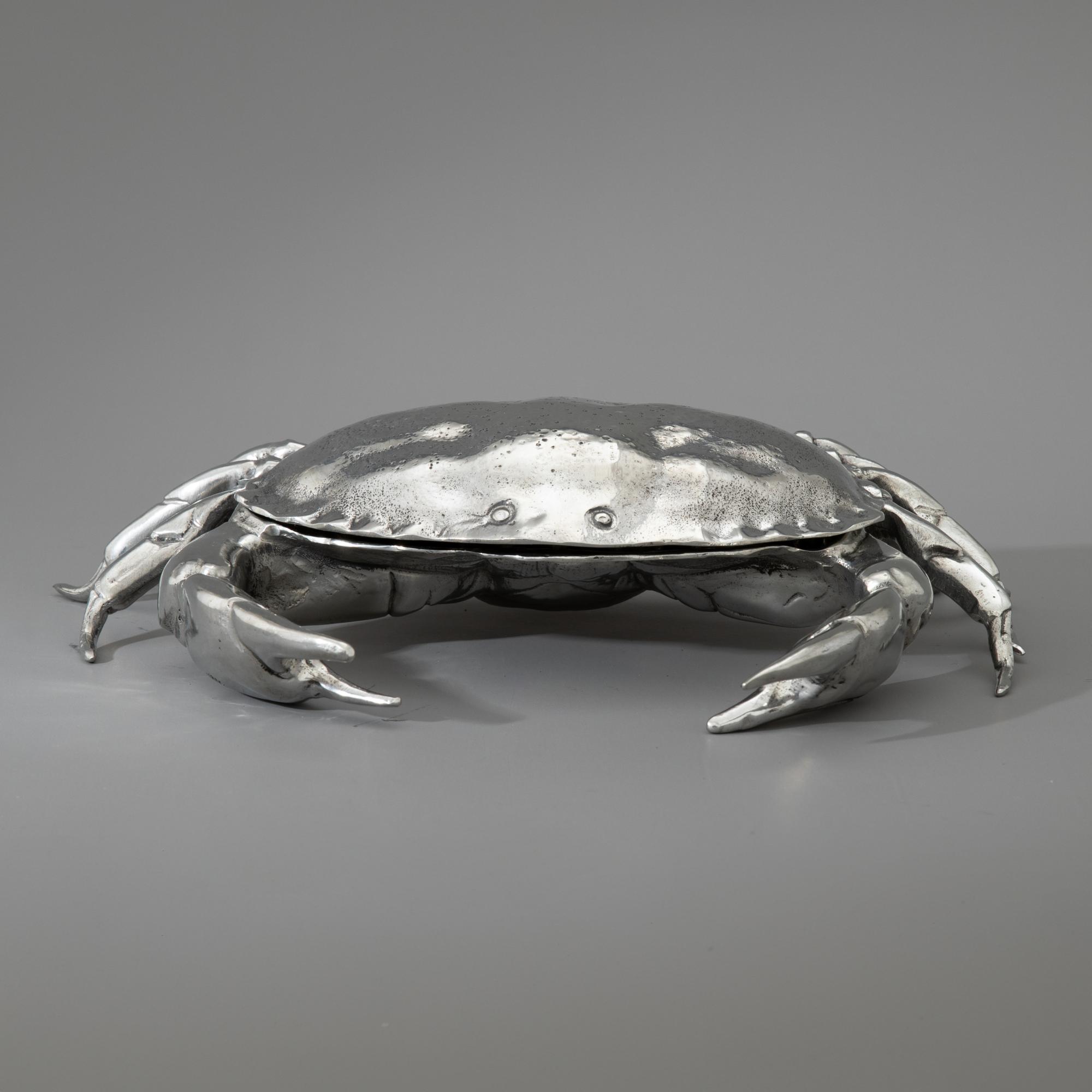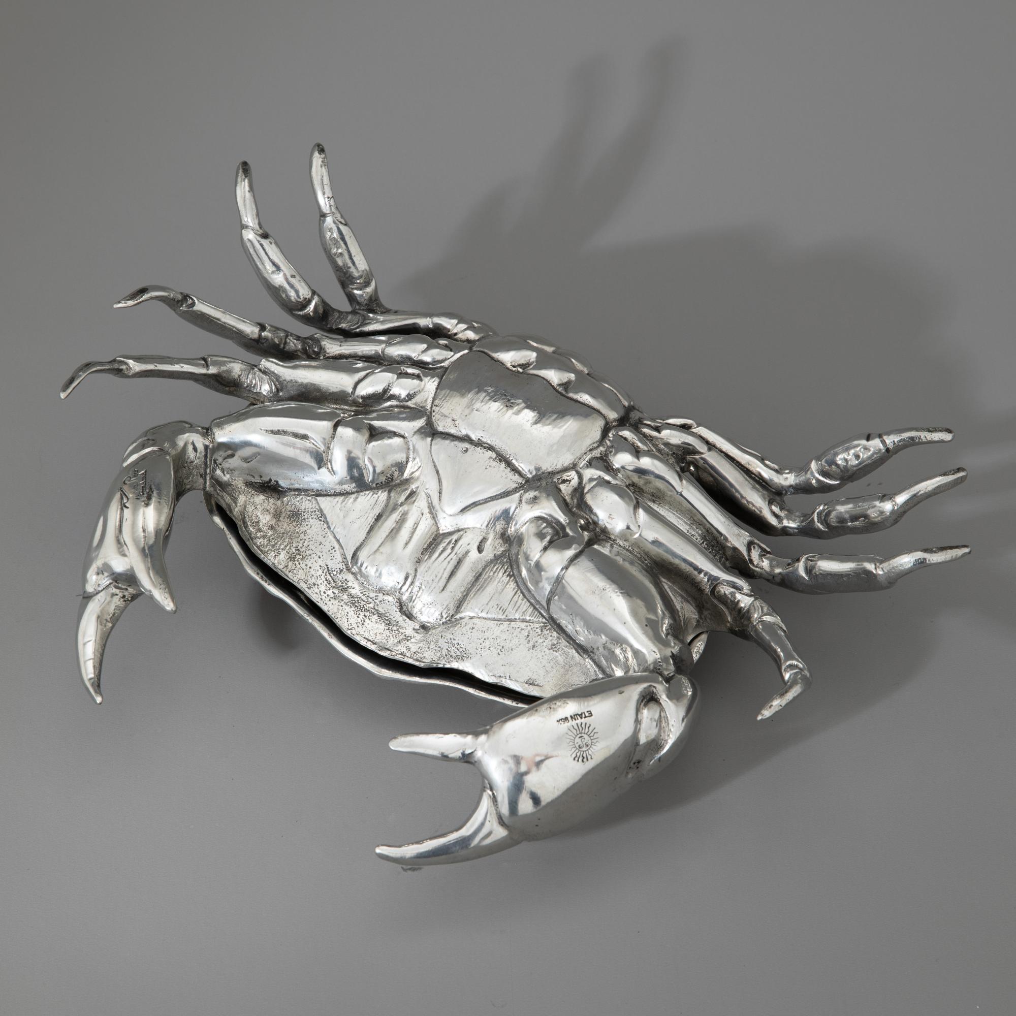 Entwurf Piero Figura für Atena, Italien. Vollplastisch ausgearbeitete, aufklappbare Krabbe. Zinn. 7,5 x 31 x 24 cm. Unterseitig bezeichnet: Figura Piero PER ATENA / ETAIN 95%.