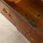 gerahmte Furnierfelder aus Rautenmarketerie sowie schauseitig zusätzlich