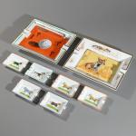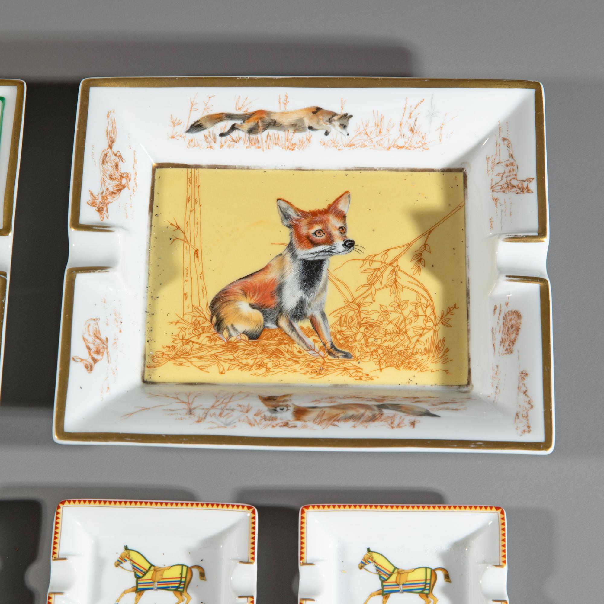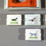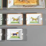 Je 16 x 19,5 x 4, sowie sechs kleinen Aschenbechern "Chevaux". Je 6 x 8 x 2 cm.