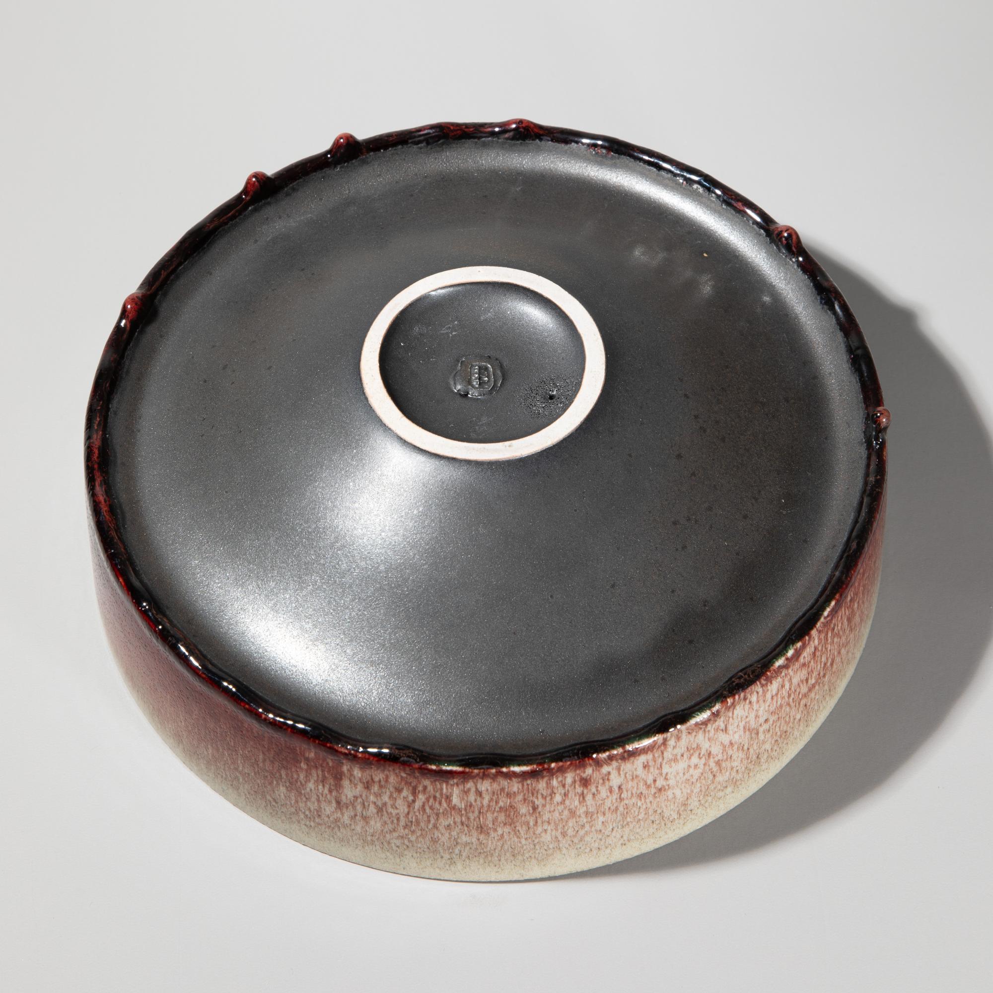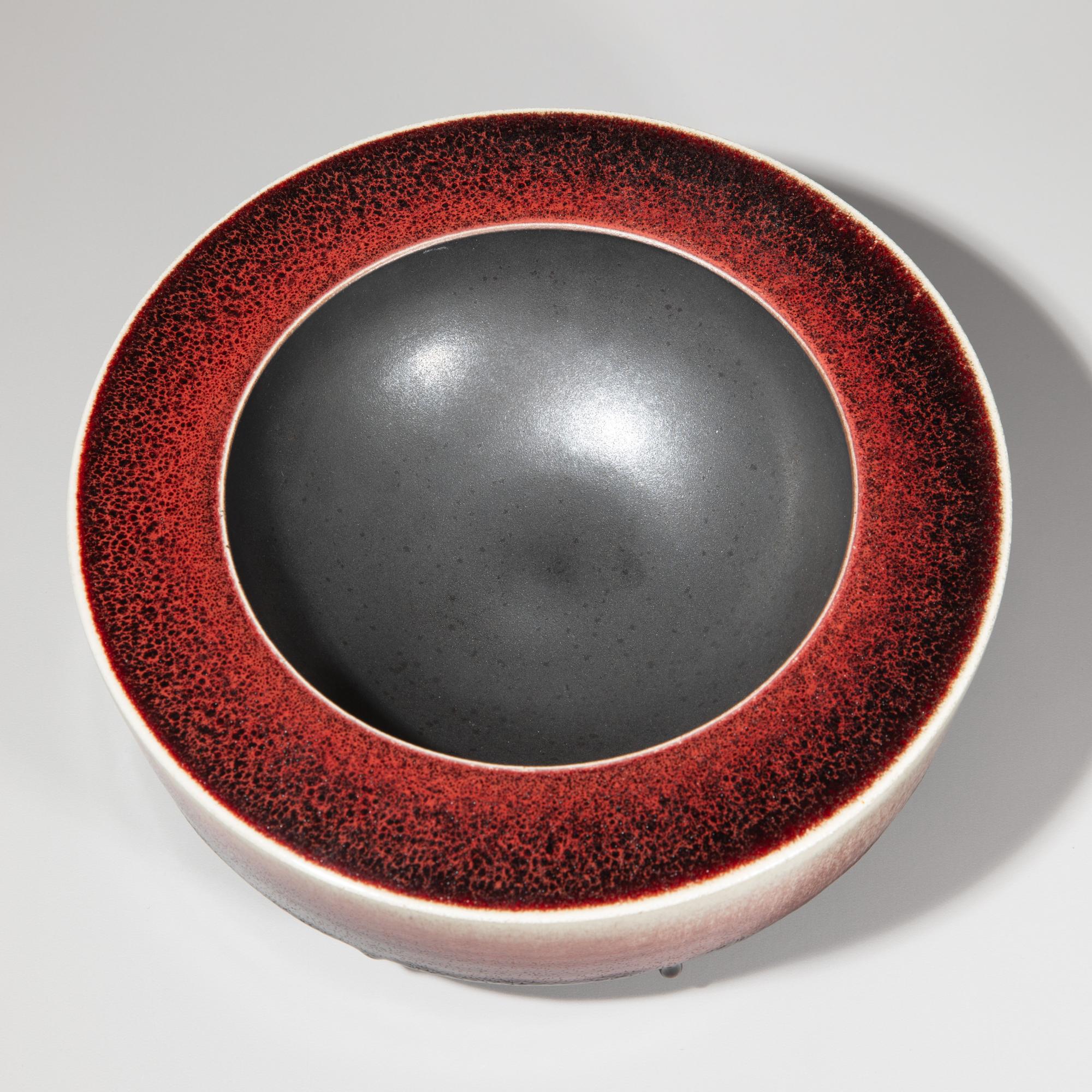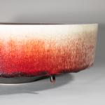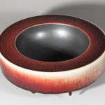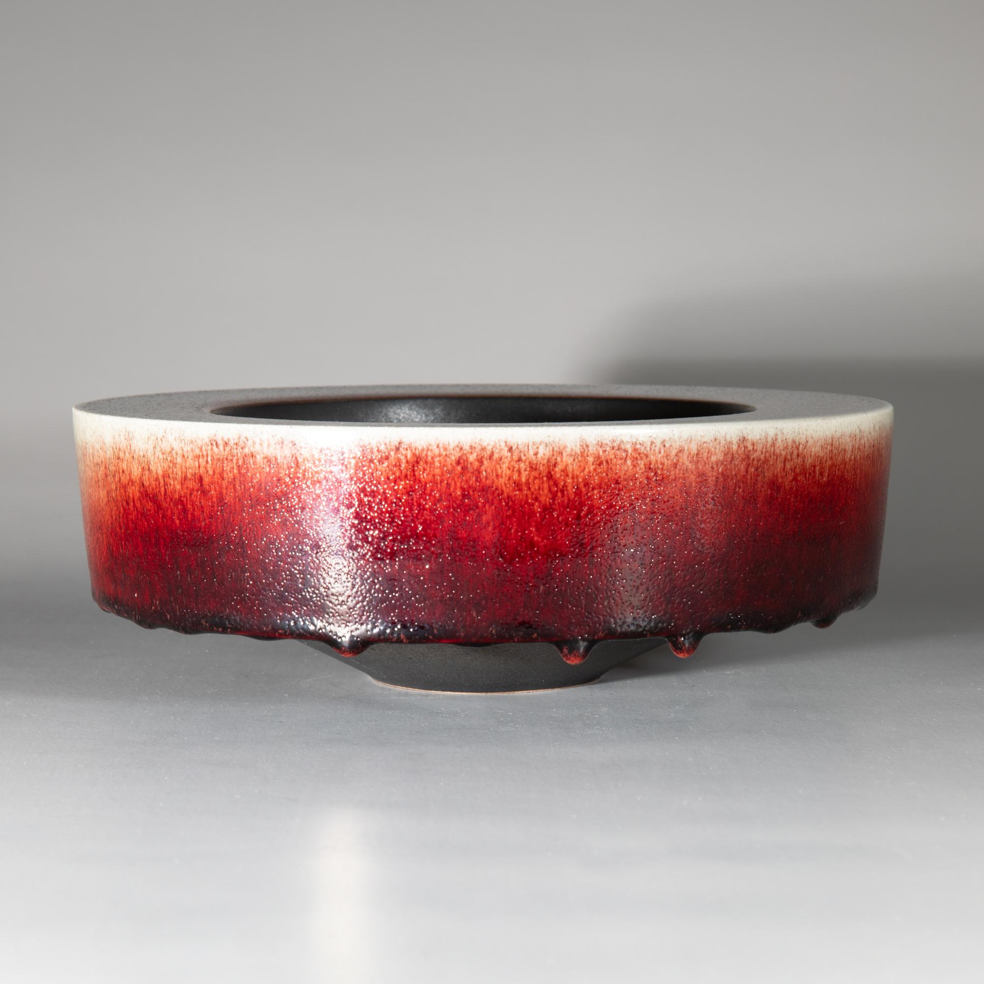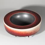 Keramik. Ochsenblutrot glasierte, doppelwandige Schale. H. 9,5 cm, D. 28 cm. Unterseitig bezeichnet mit Werkstattmarke.