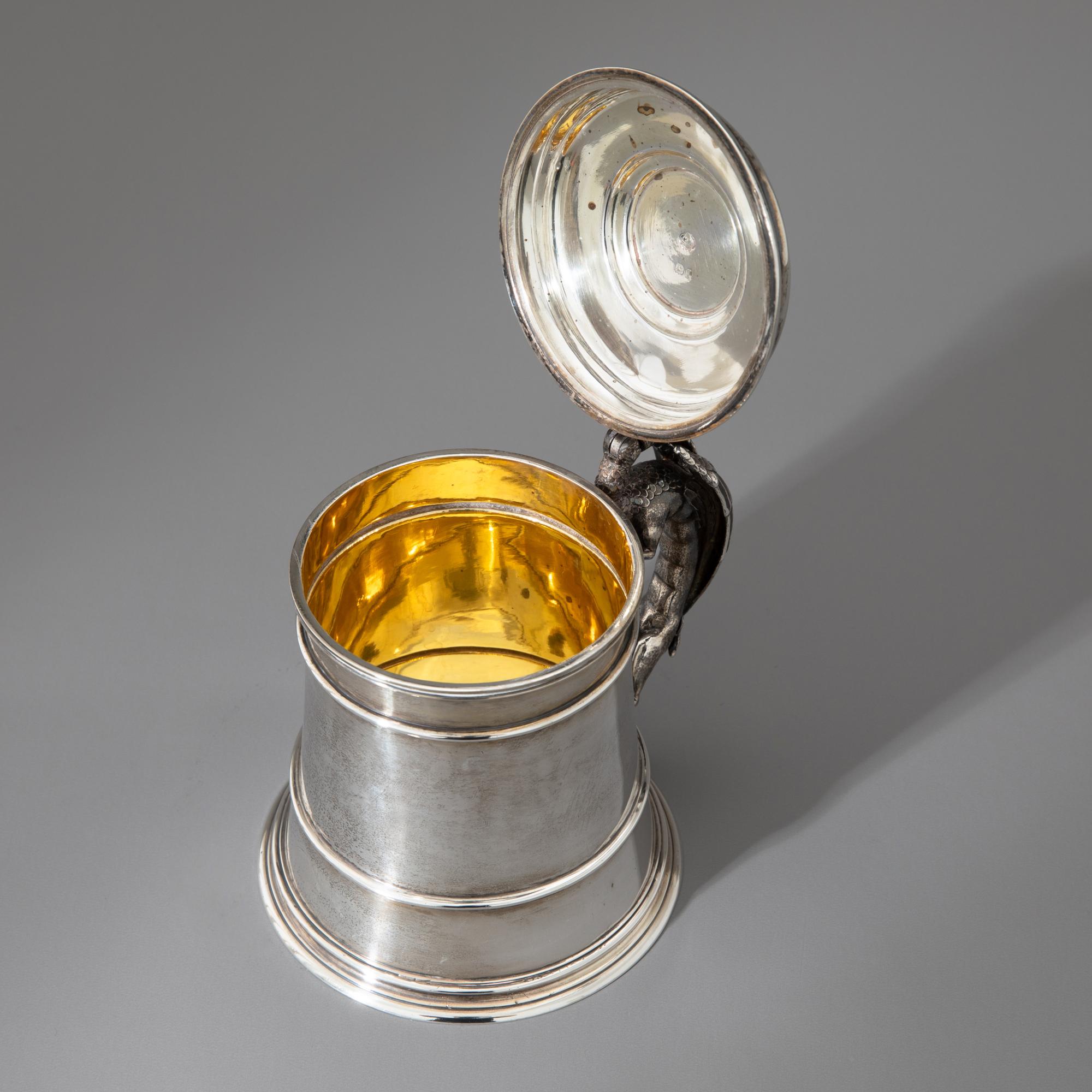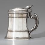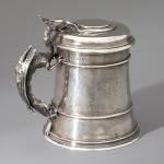H. 15,5 cm, D. 12,5 cm. Gewicht 670 g. Bezeichnet mit Herstellermarke Georg Angell (reg. 1850), schreitender Löwe, Londoner Stadtmarke, Jahresbuchstabe für 1862 und Konterfei von Königin Victoria.