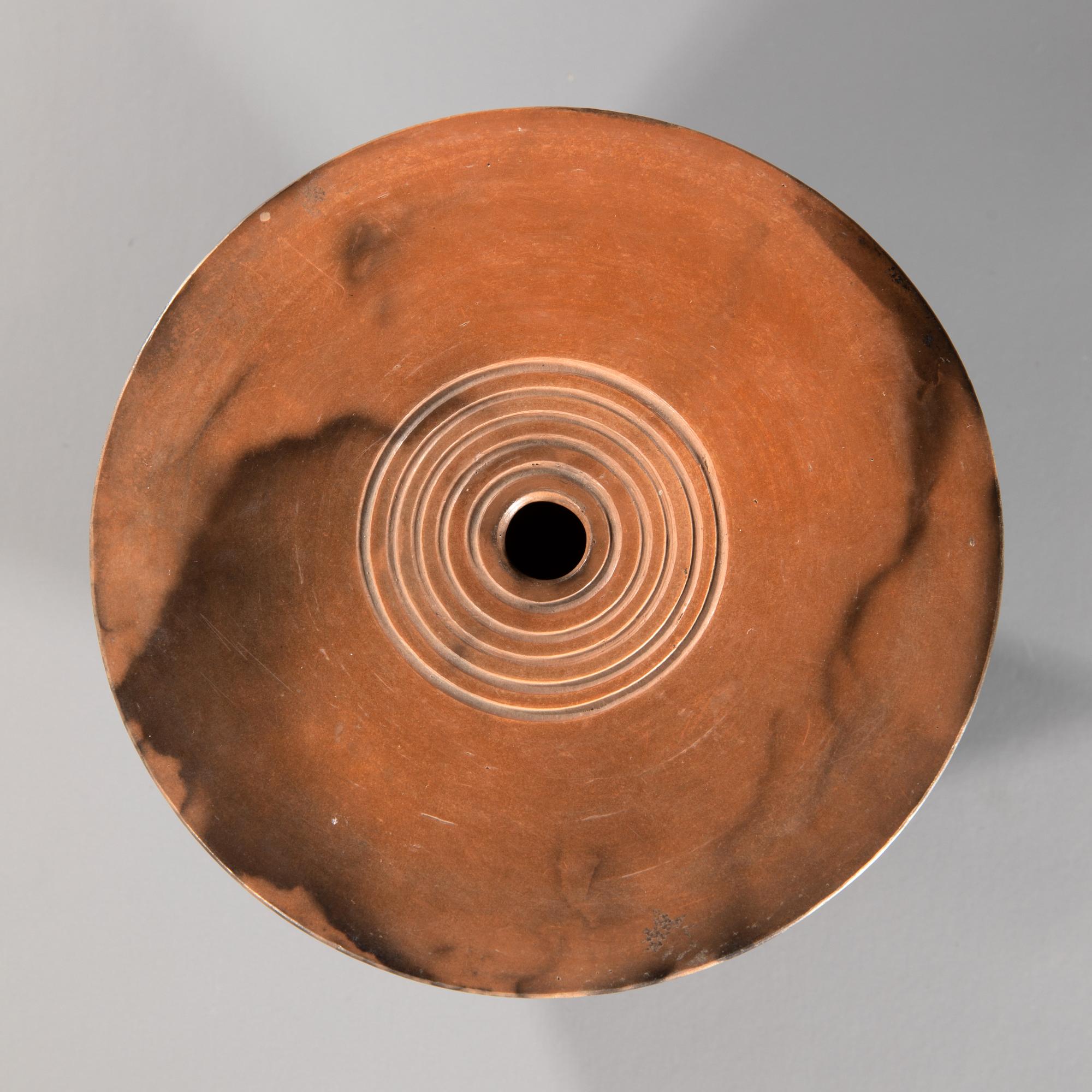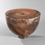 Abgeflachte Vase auf rundem Stand. H. 12 cm, D. 16,2 cm. Unterseitig bezeichnet mit Künstlersignet.