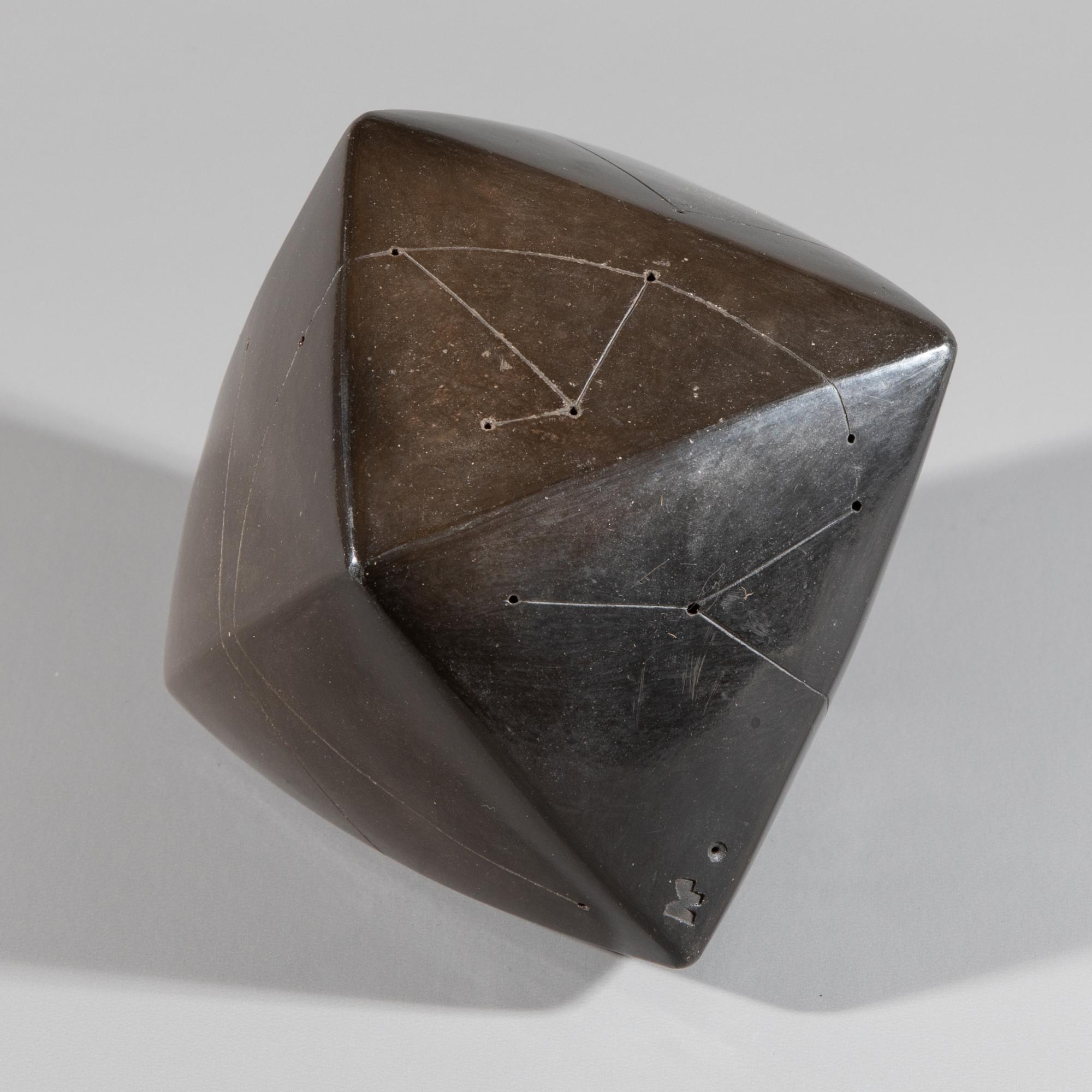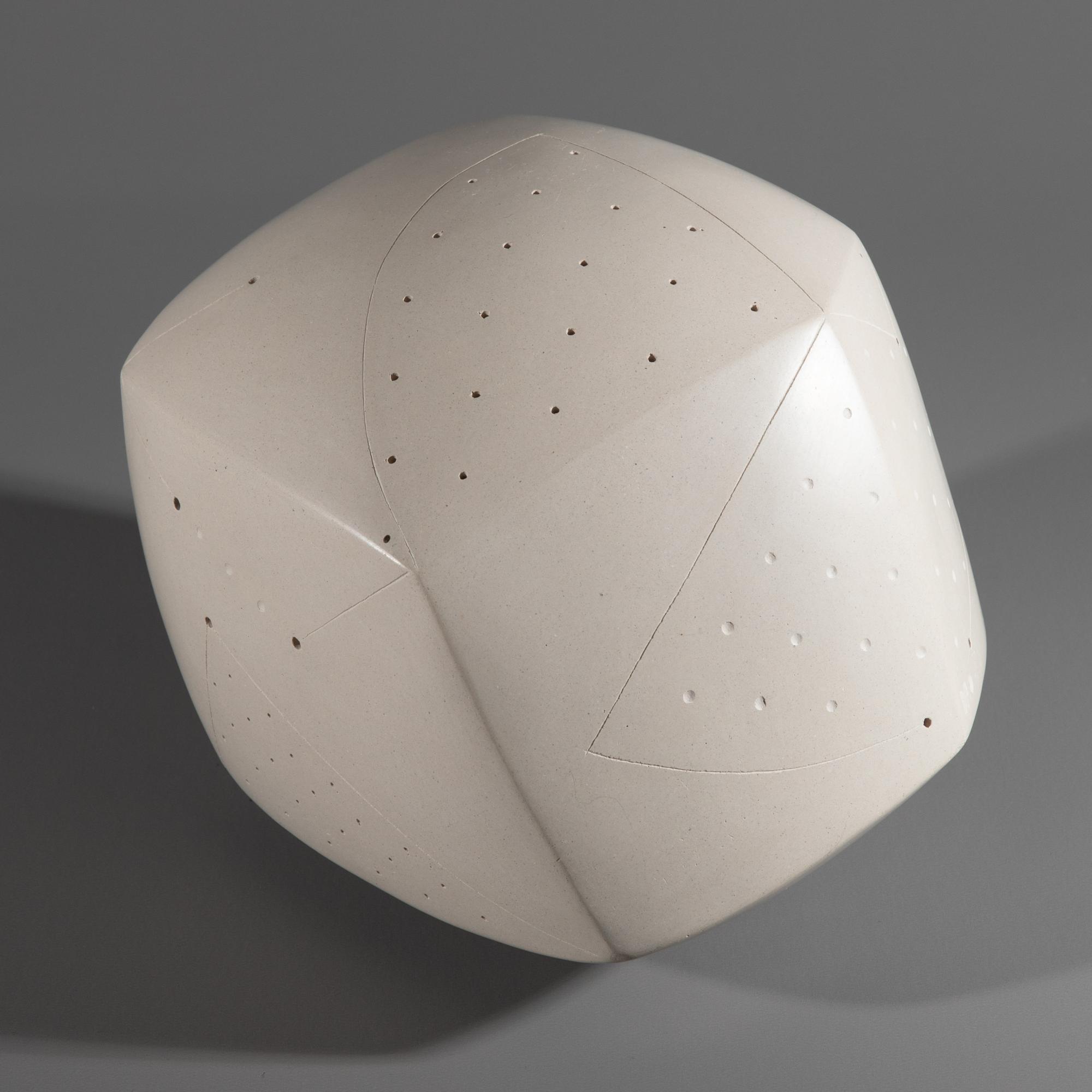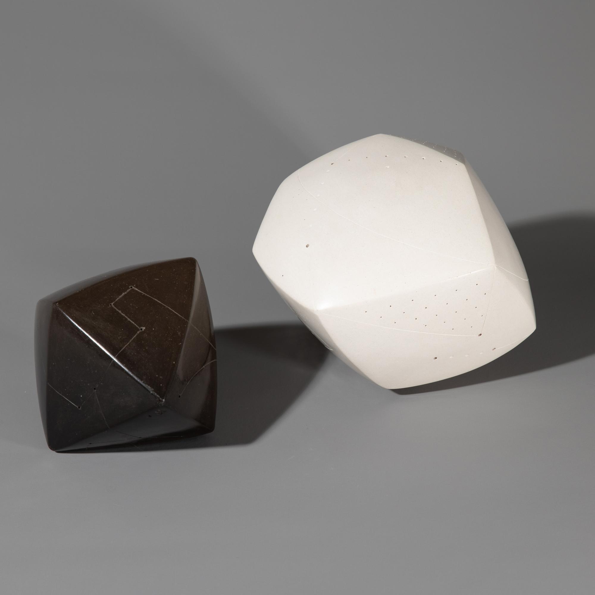 Keramik. Skulpturale Elemente, schwarz und weiß. Teilweise poliert, graviert und perforiert. 18 x 23 x 18 cm / 12 x 13 x 12 cm. Jeweils bezeichnet mit Werkstattmarke.