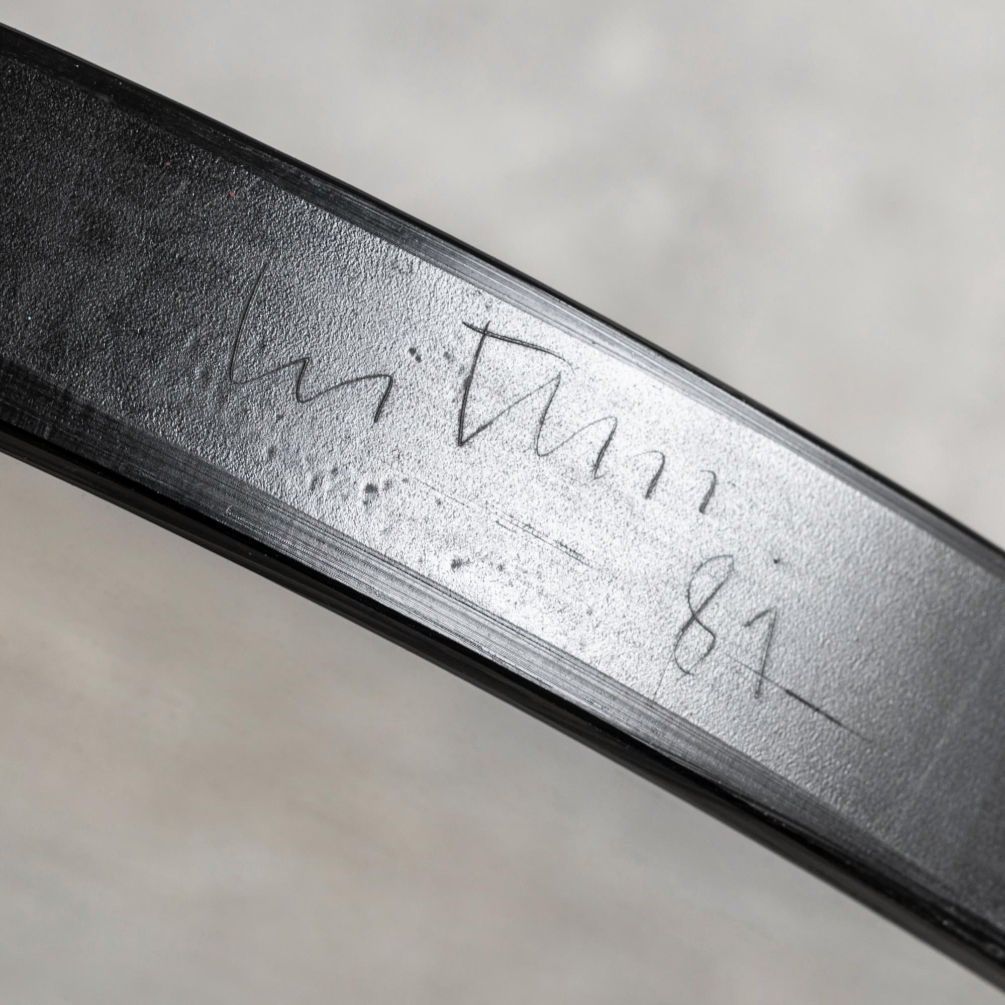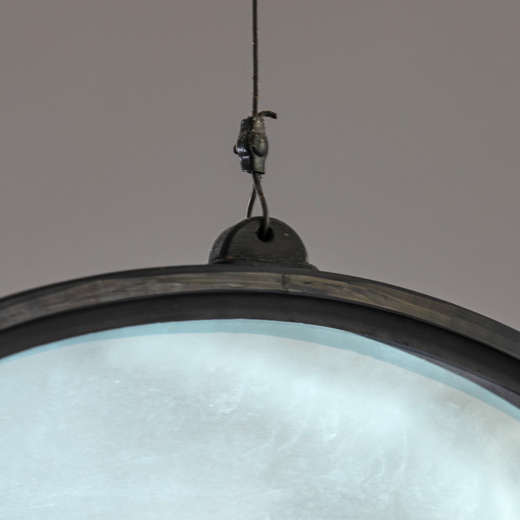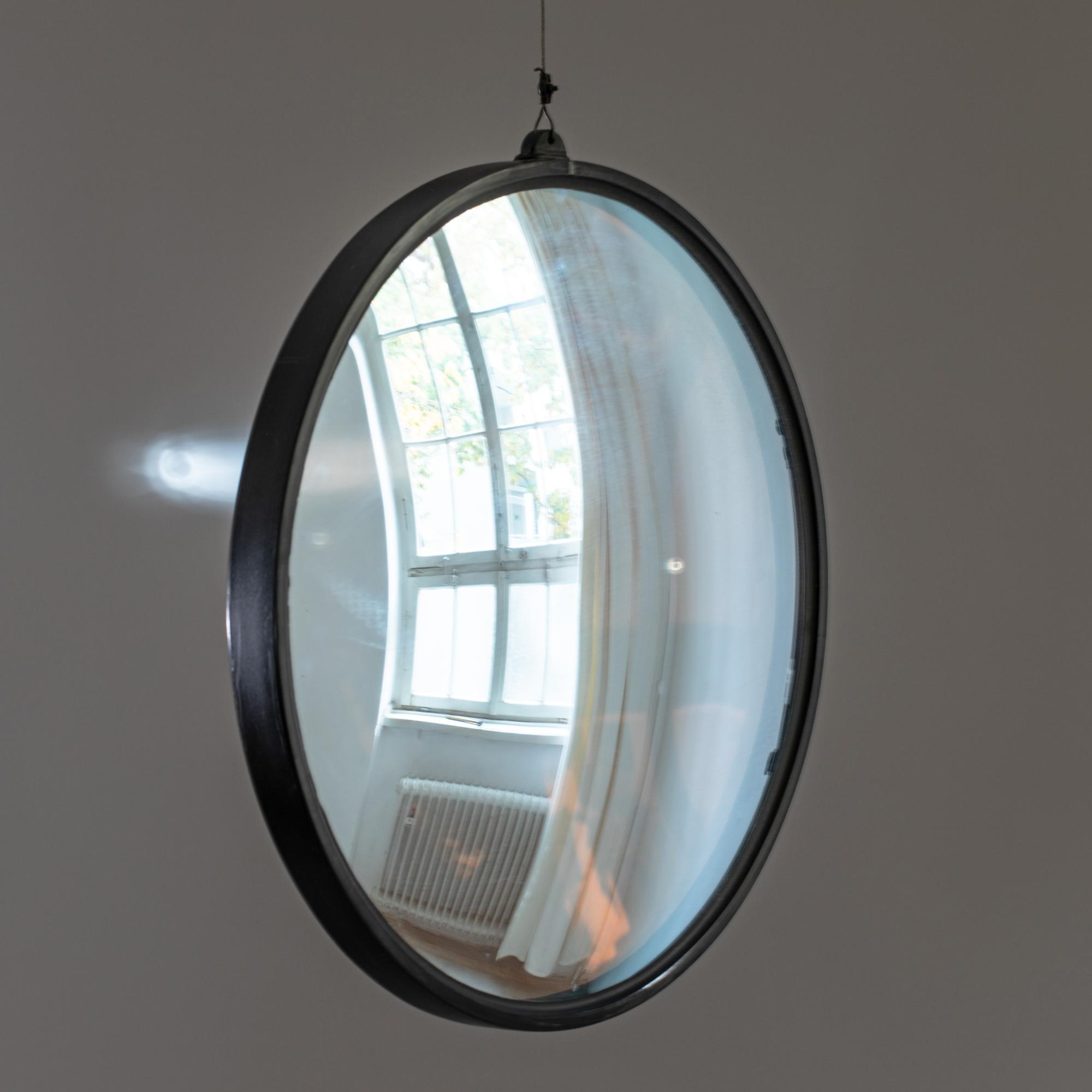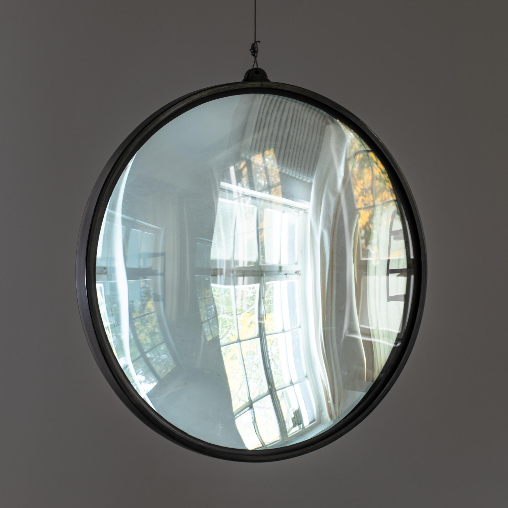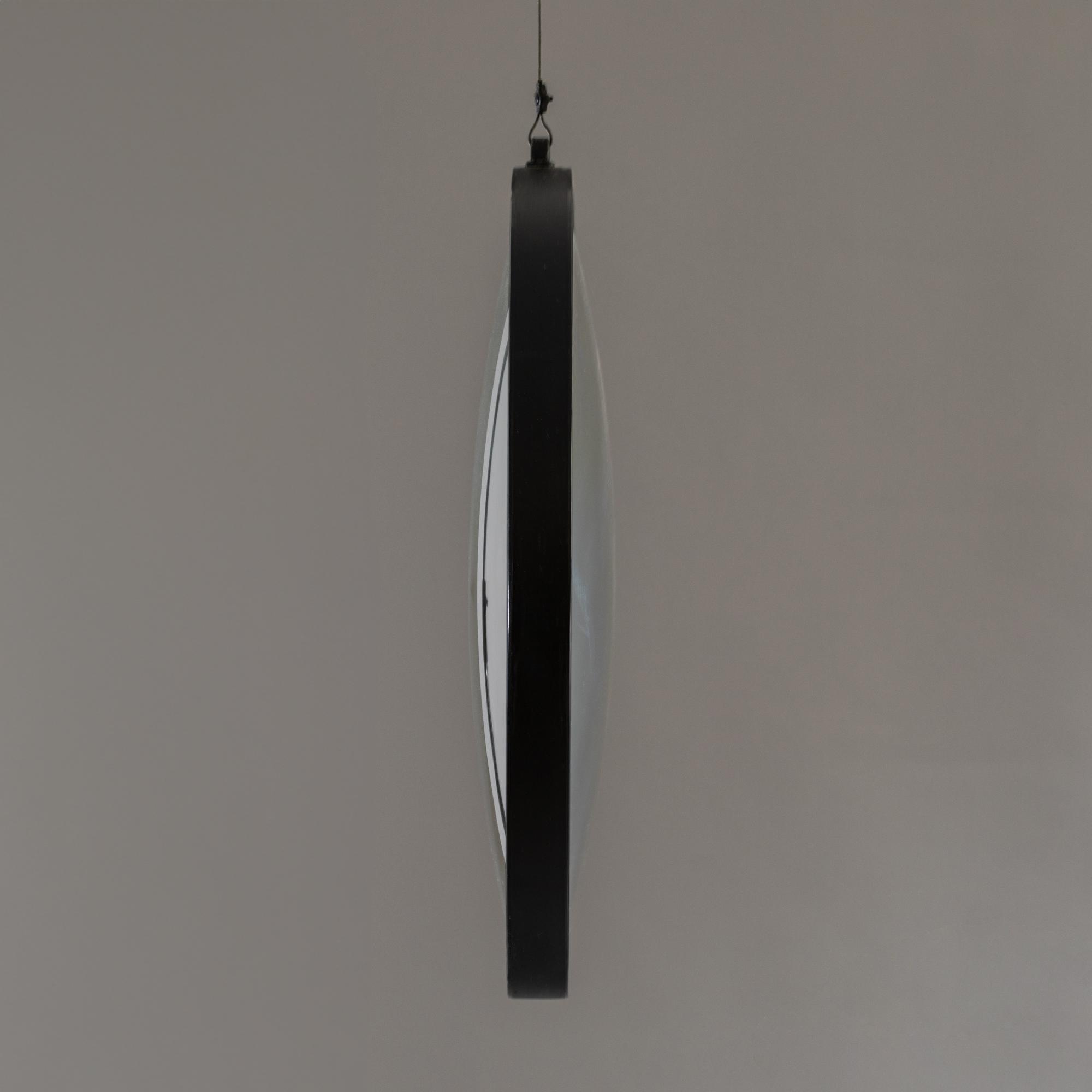Halbtransparente Spiegelglaslinse, konvex gewölbt, Acrylglas, Hartplastikrahmen. D. 50 cm. Am Rahmen signiert und datiert: Luther 81 (geritzt).