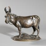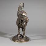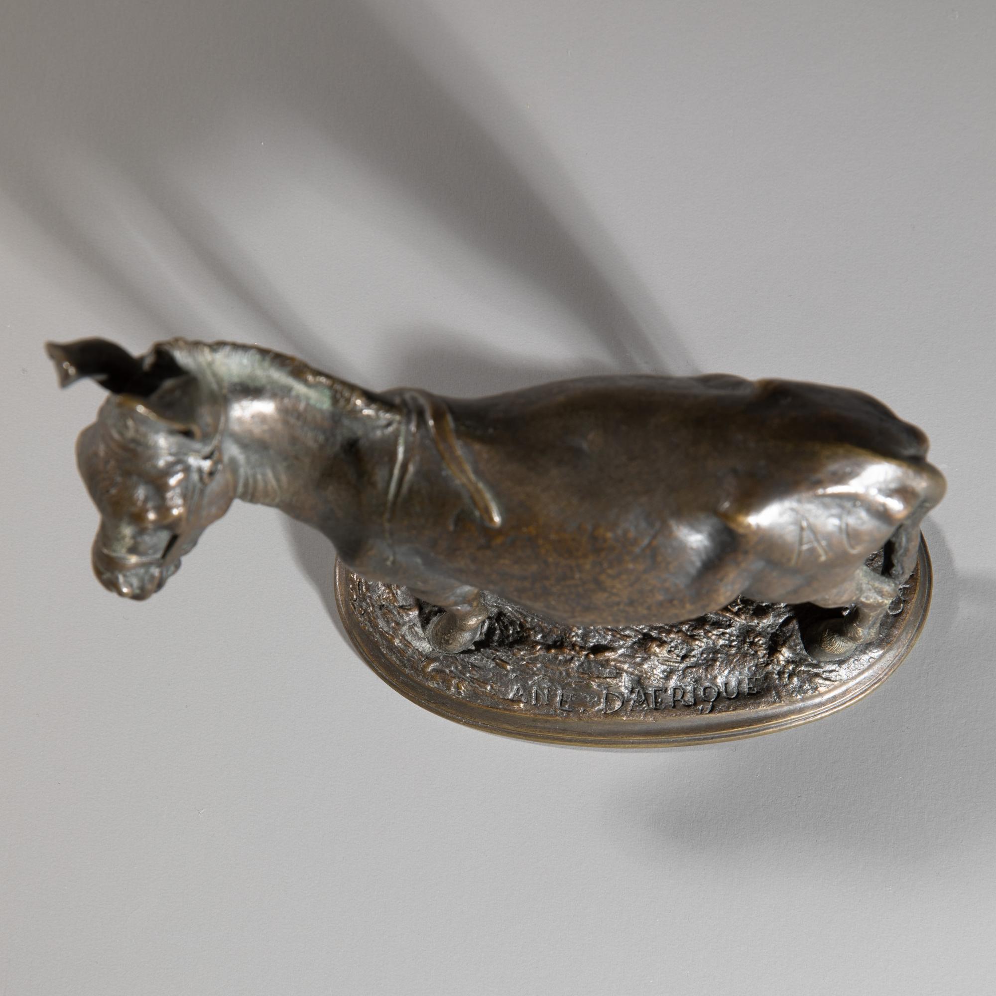 Bronze, dunkel patiniert. H. 14,2 cm. Hinterseite des Esels mit Initialen AC. Sockel bez.: ANE D'AFRIQUE, CAIN (bossiert).
