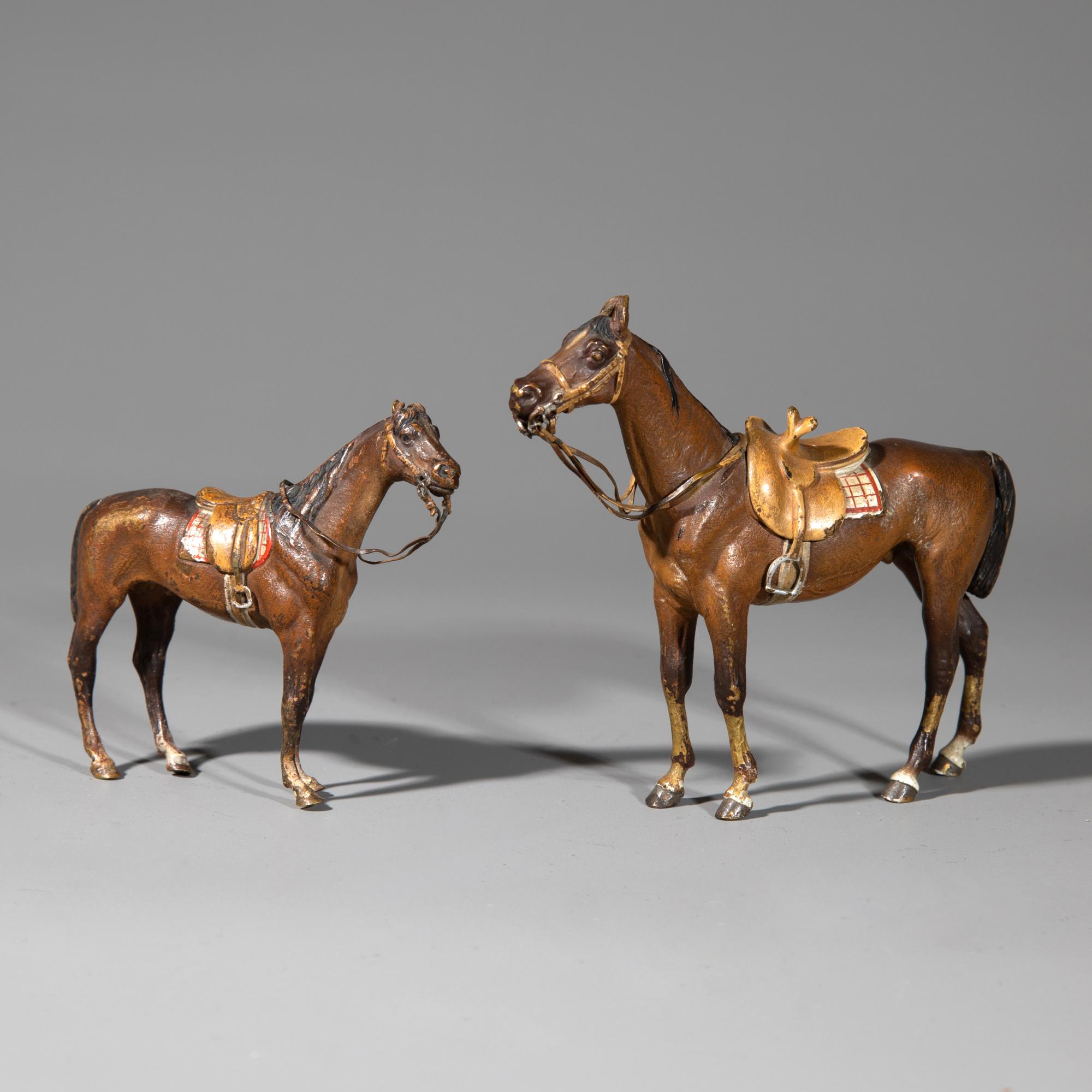 Konvolut: 2 große und 2 kleine gesattelte Pferde, 1900-1911