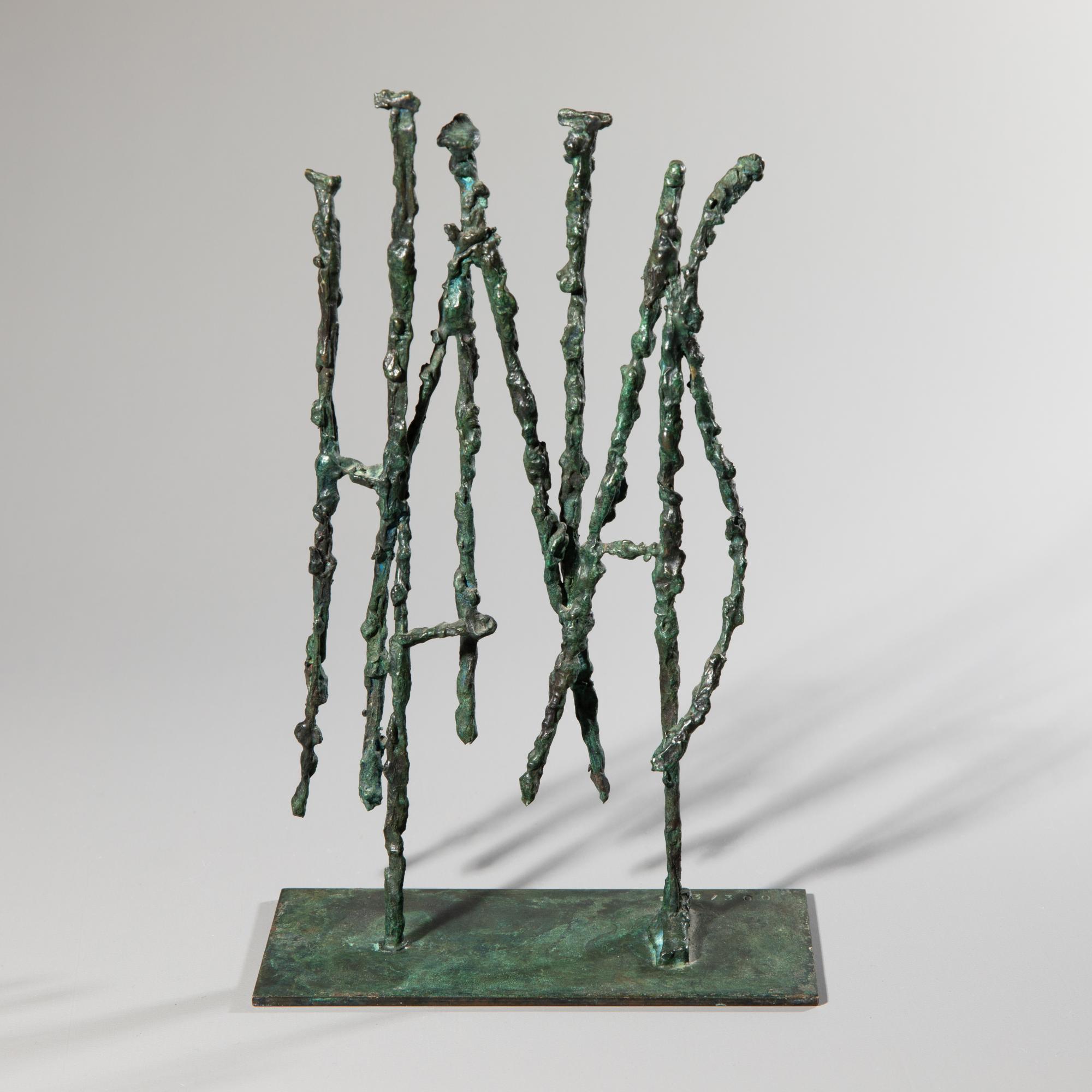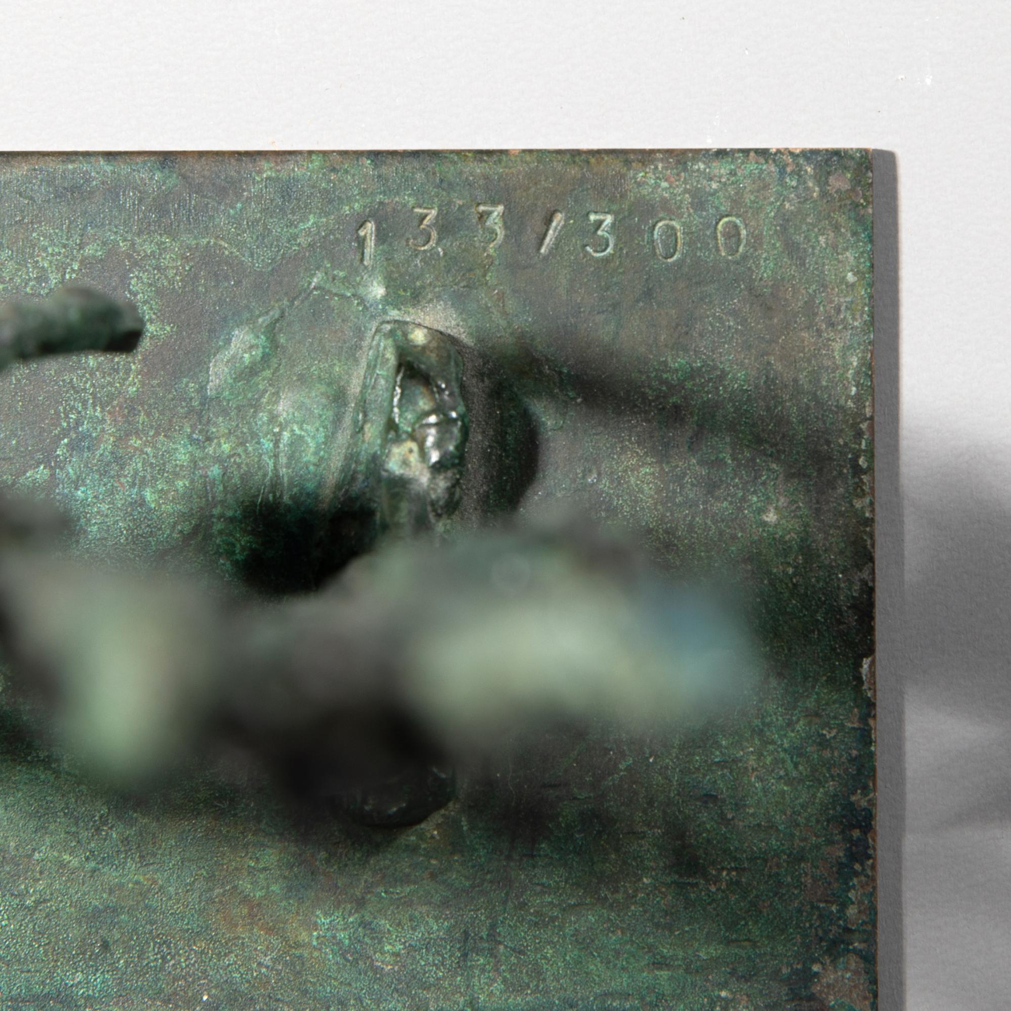 Grünlich patinierte Bronze. Aus einer Auflage von 300 Exemplaren. 23,5 x 14,5 x 7 cm. Auf der Plinthe bez.: 133/300.