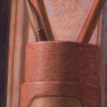 Pastell auf Hartfaserplatte. 90,5 x 67 cm. Verso signiertbetitelt und datiert: W. Kissmer STILLEBEN MIT JAPANISCHEN PINSELN 1986 (schwarzer Faserstift).