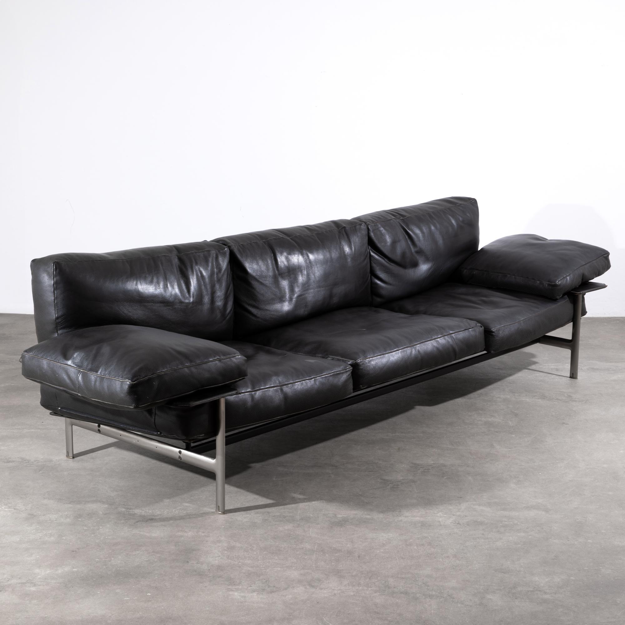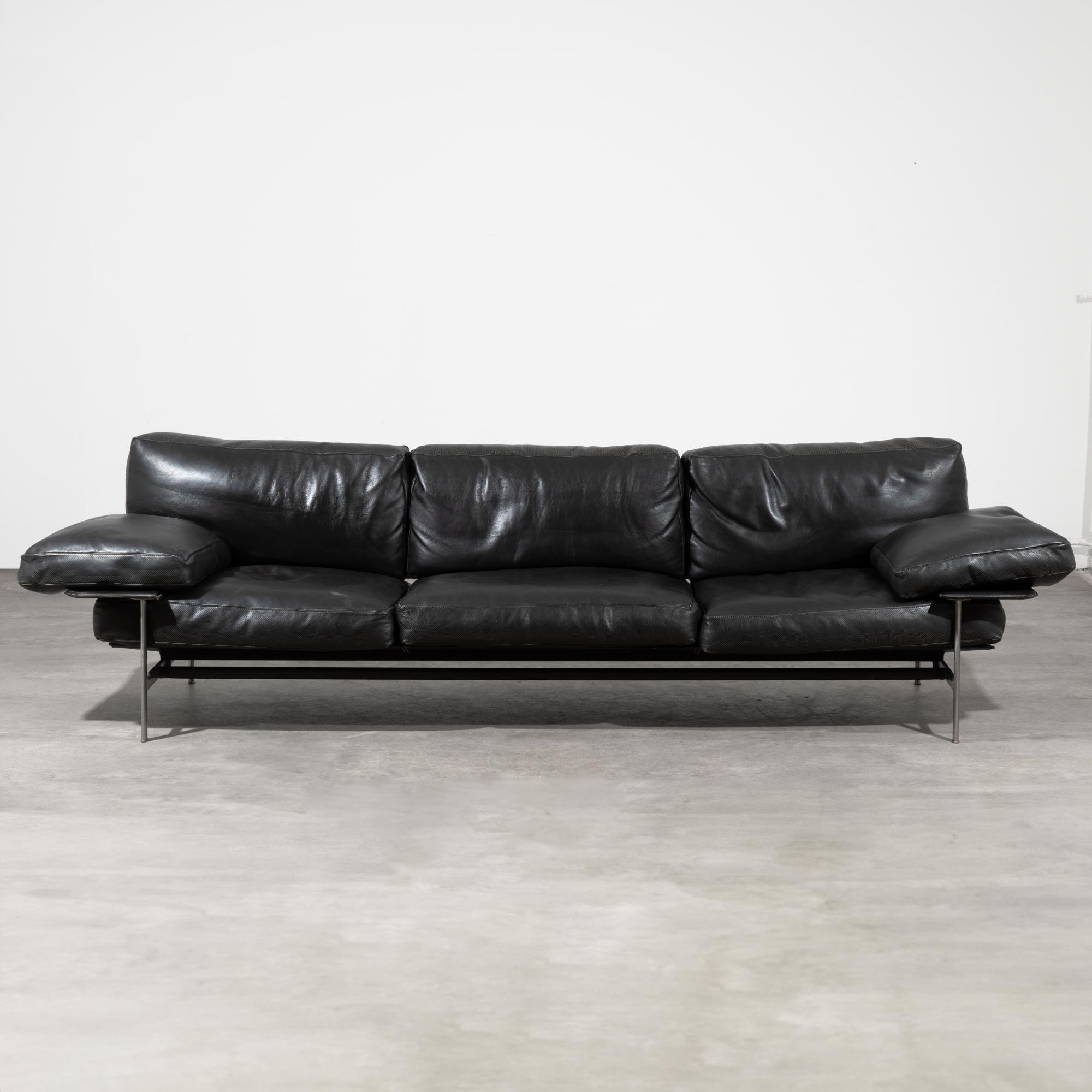 Entwurf 1979. Ausführung B&B Italia. Gestell aus Metall, schwarzes Kernleder, Bezüge in schwarzem Leder. 82 x 290 x 90 cm. Mit Label bezeichnet.