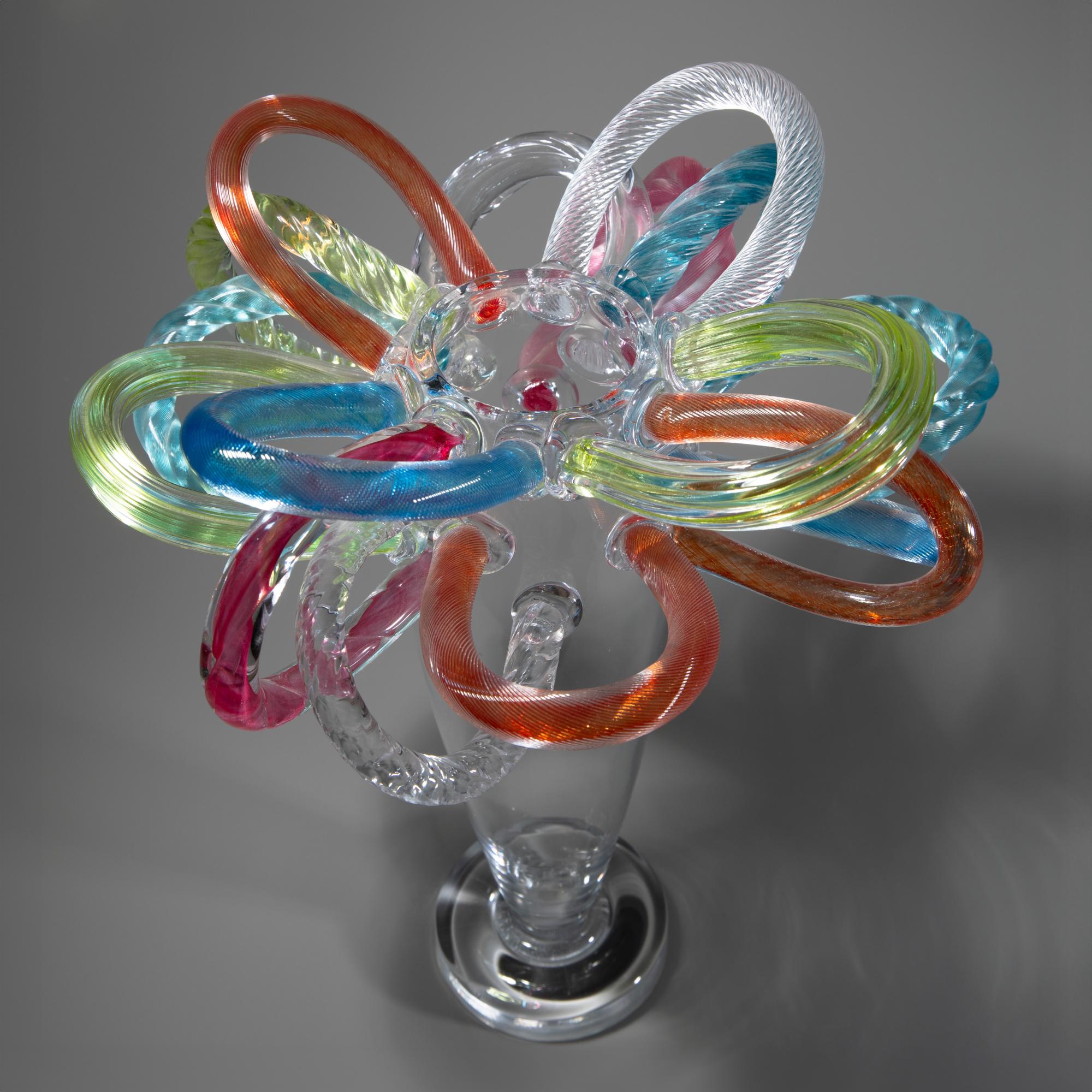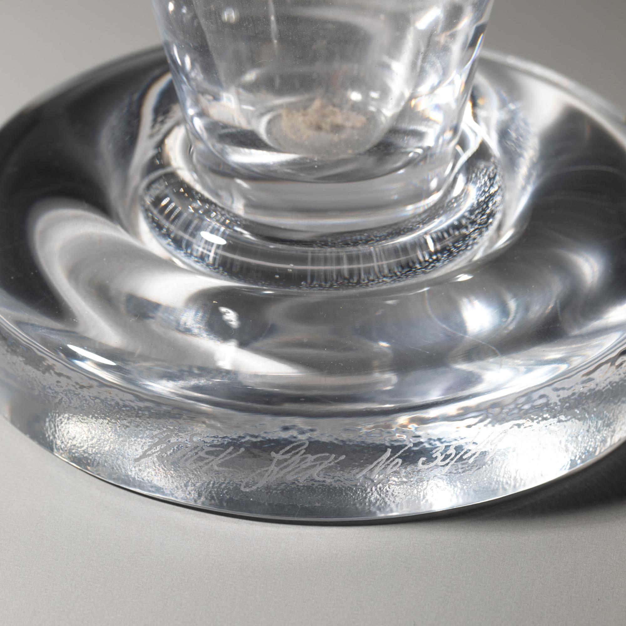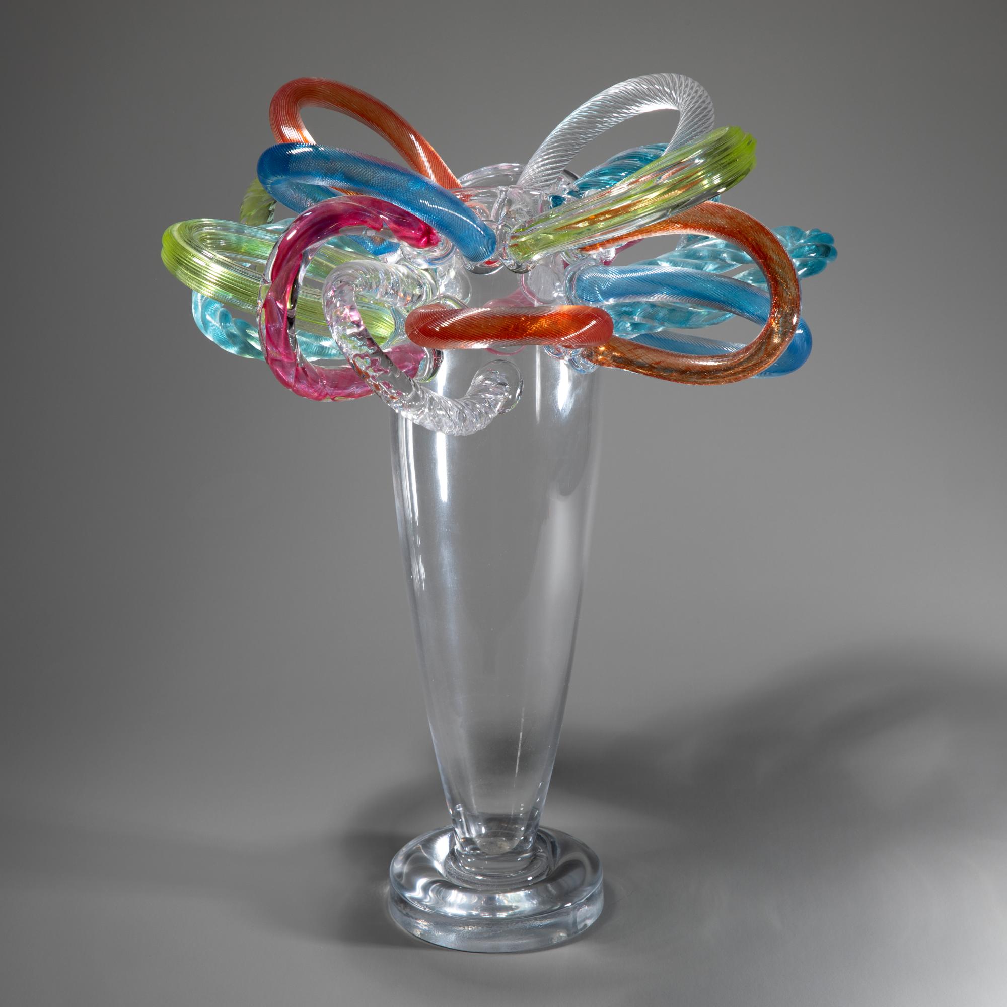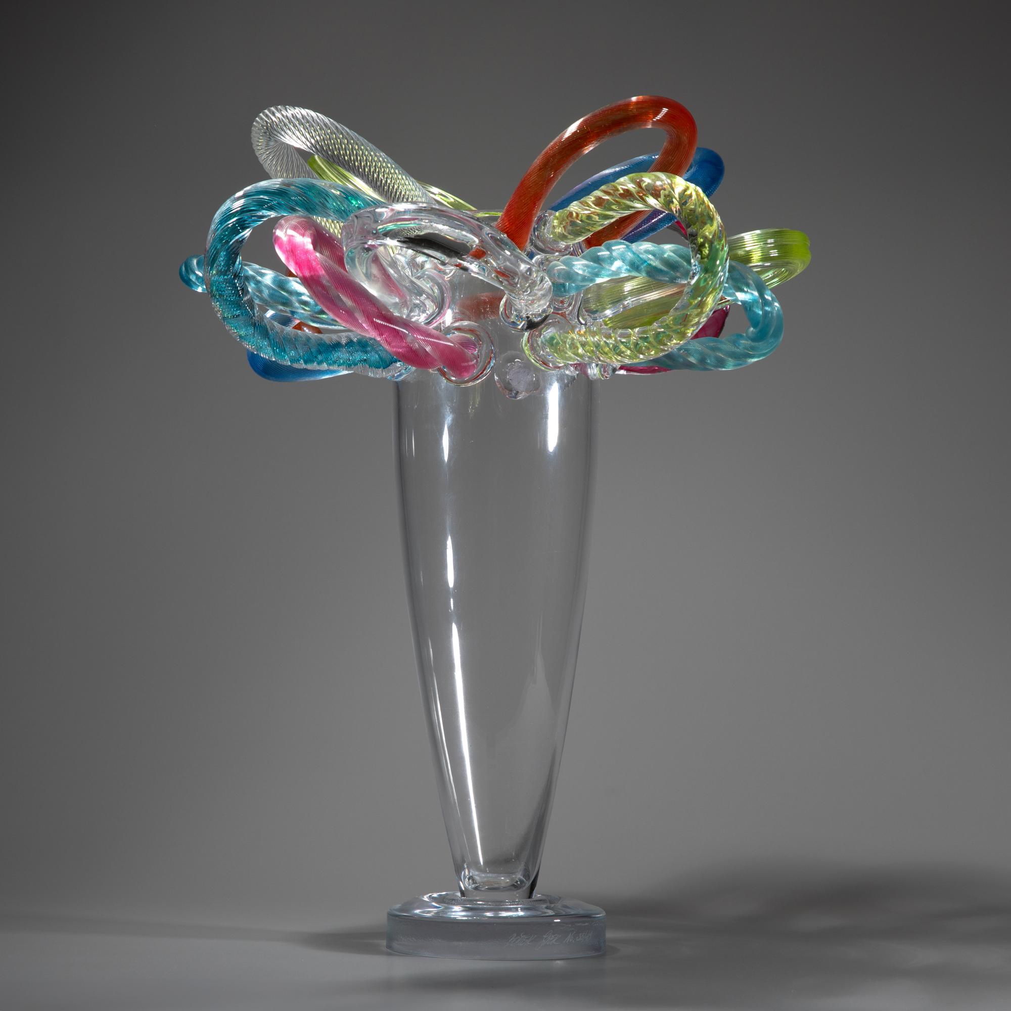 Entwurf 2000. Ausführung für Rosenthal. Farbloses Glas mit angesetzten seilartig gedrehten Bändern mit verschiedenfarbigen Unterfängen. Exemplar 35 aus einer Auflage von 49. H. 49 cm. Gravierte Künstlersignatur und Nummerierung an der Standkante. Mit Zertifikat des Herstellers.