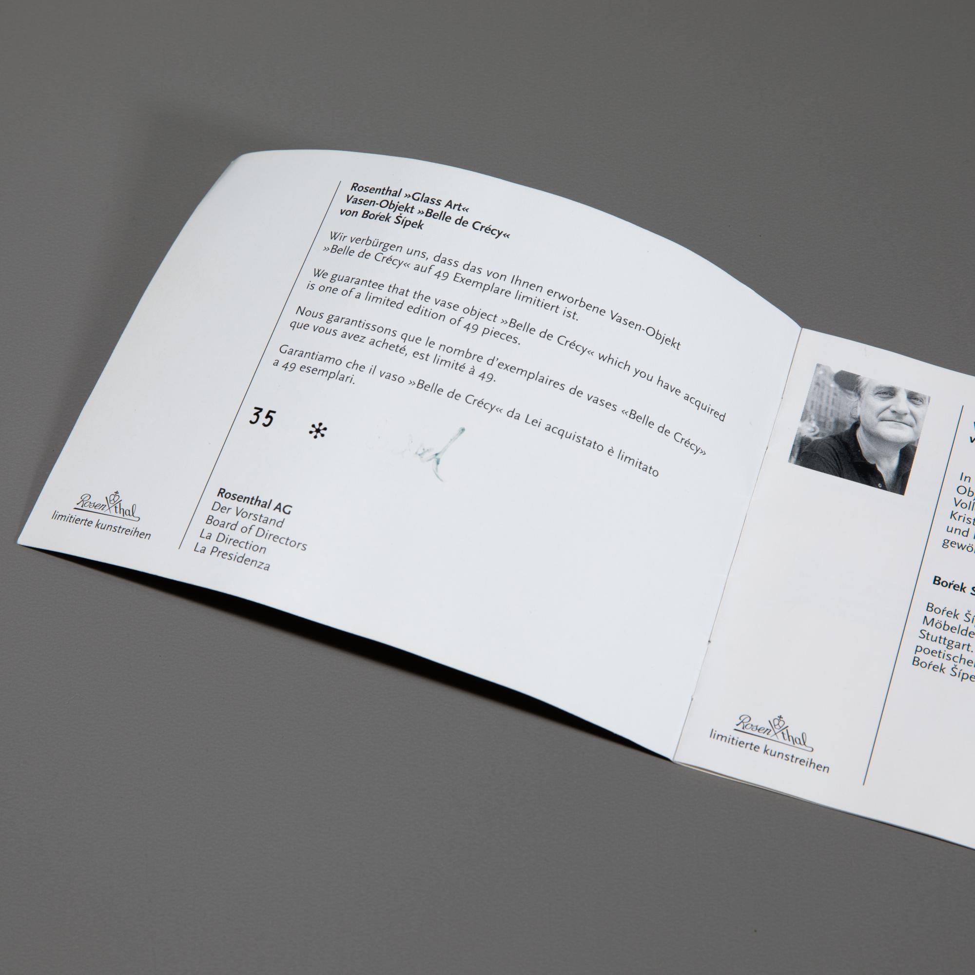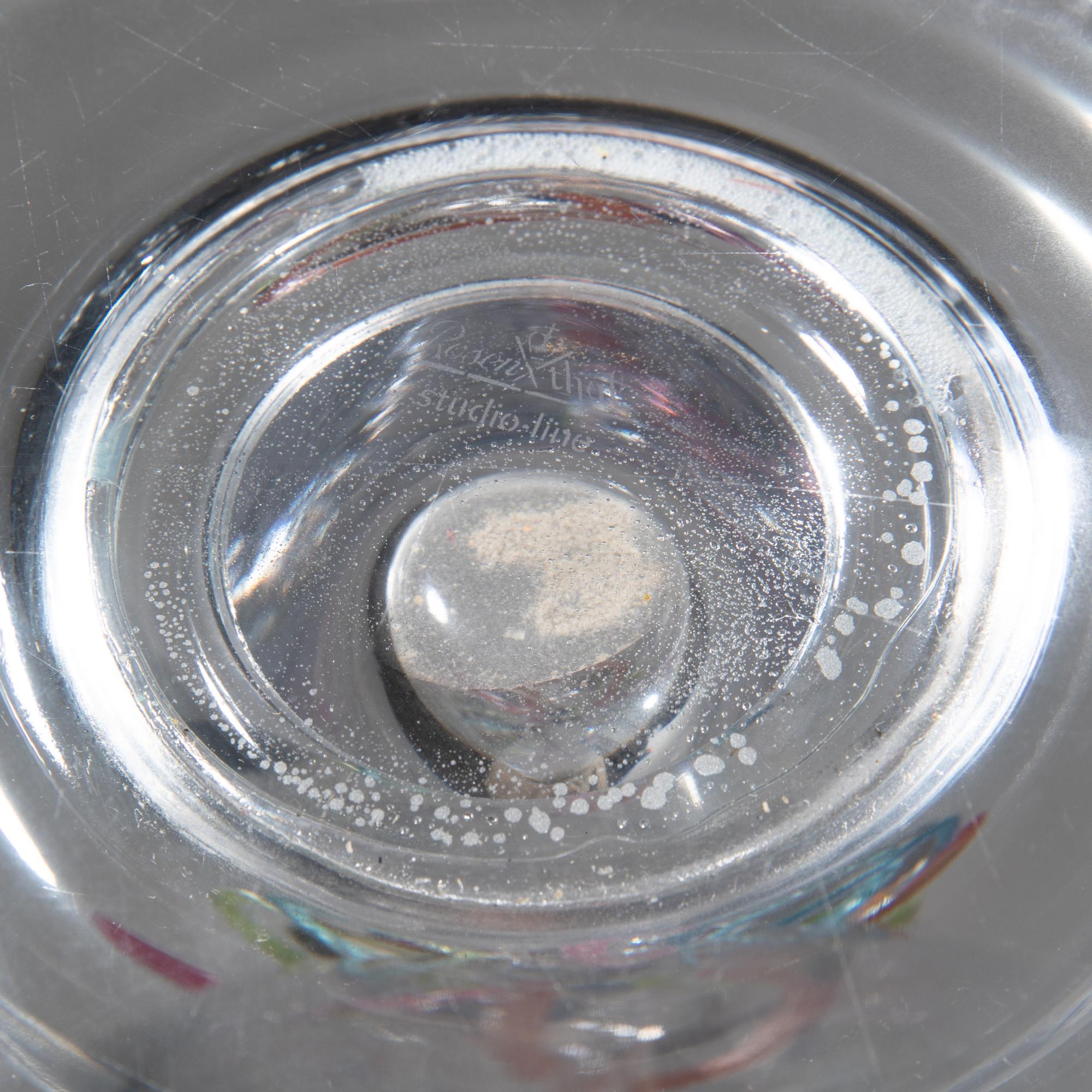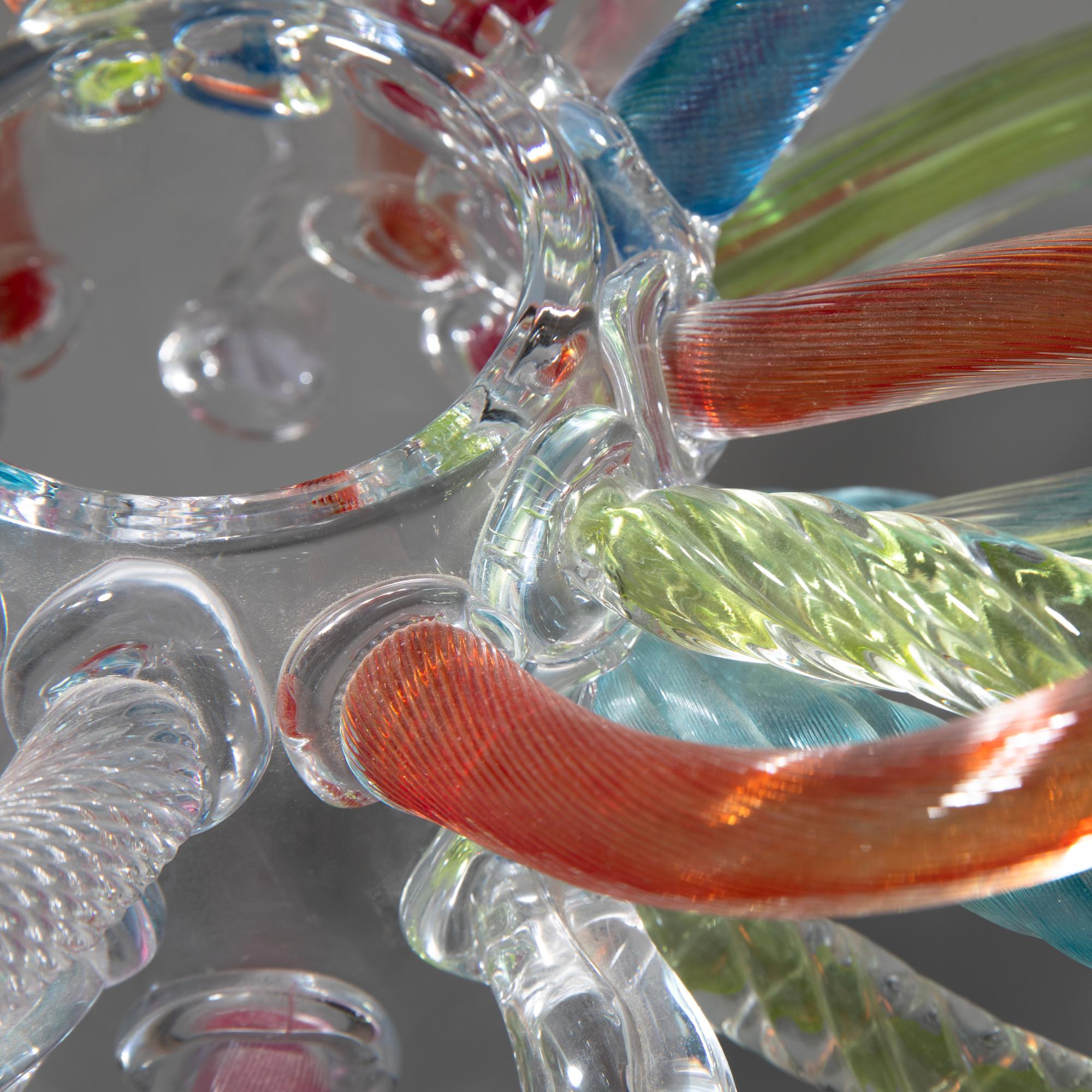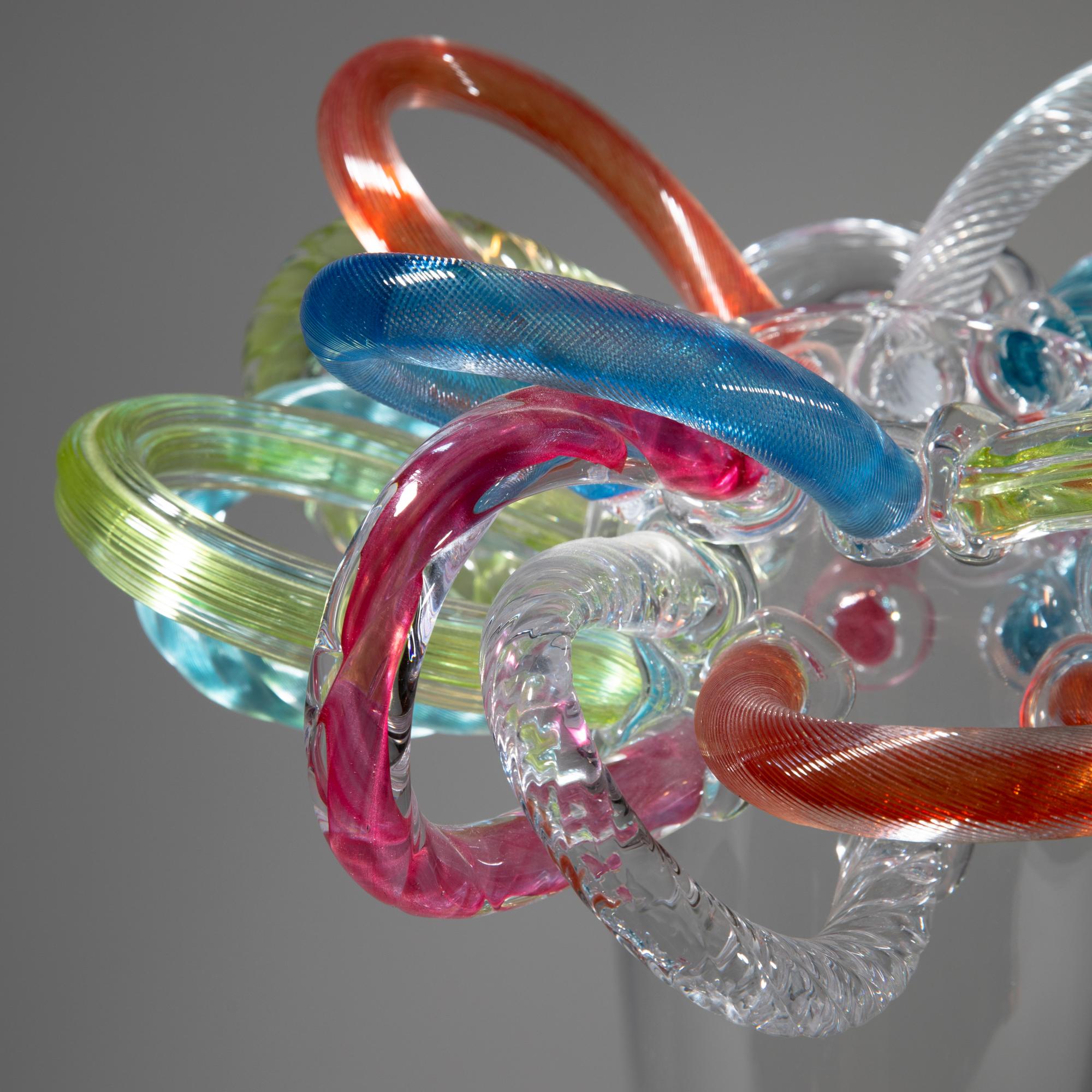 Entwurf 2000. Ausführung für Rosenthal. Farbloses Glas mit angesetzten seilartig gedrehten Bändern mit verschiedenfarbigen Unterfängen. Exemplar 35 aus einer Auflage von 49. H. 49 cm. Gravierte Künstlersignatur und Nummerierung an der Standkante. Mit Zertifikat des Herstellers.