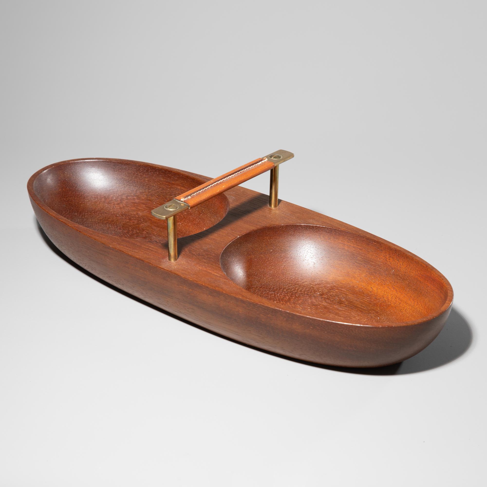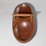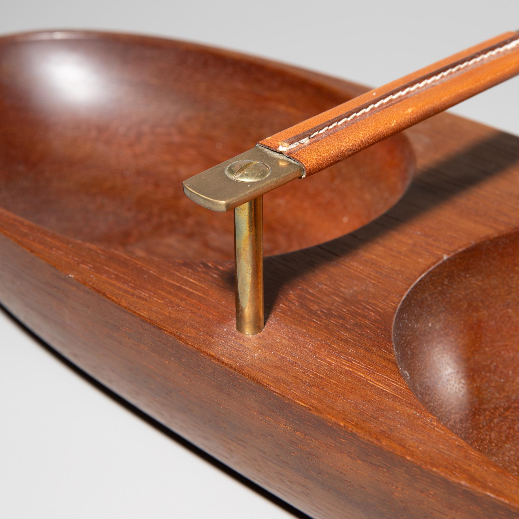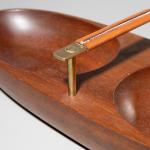 Entwurf 1940/50er Jahre. Ausführung Artes, H. & H. Seefried, Steppach. Massives Holz, Messing, Leder. H. 10 x 39,5 x 15 cm.