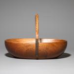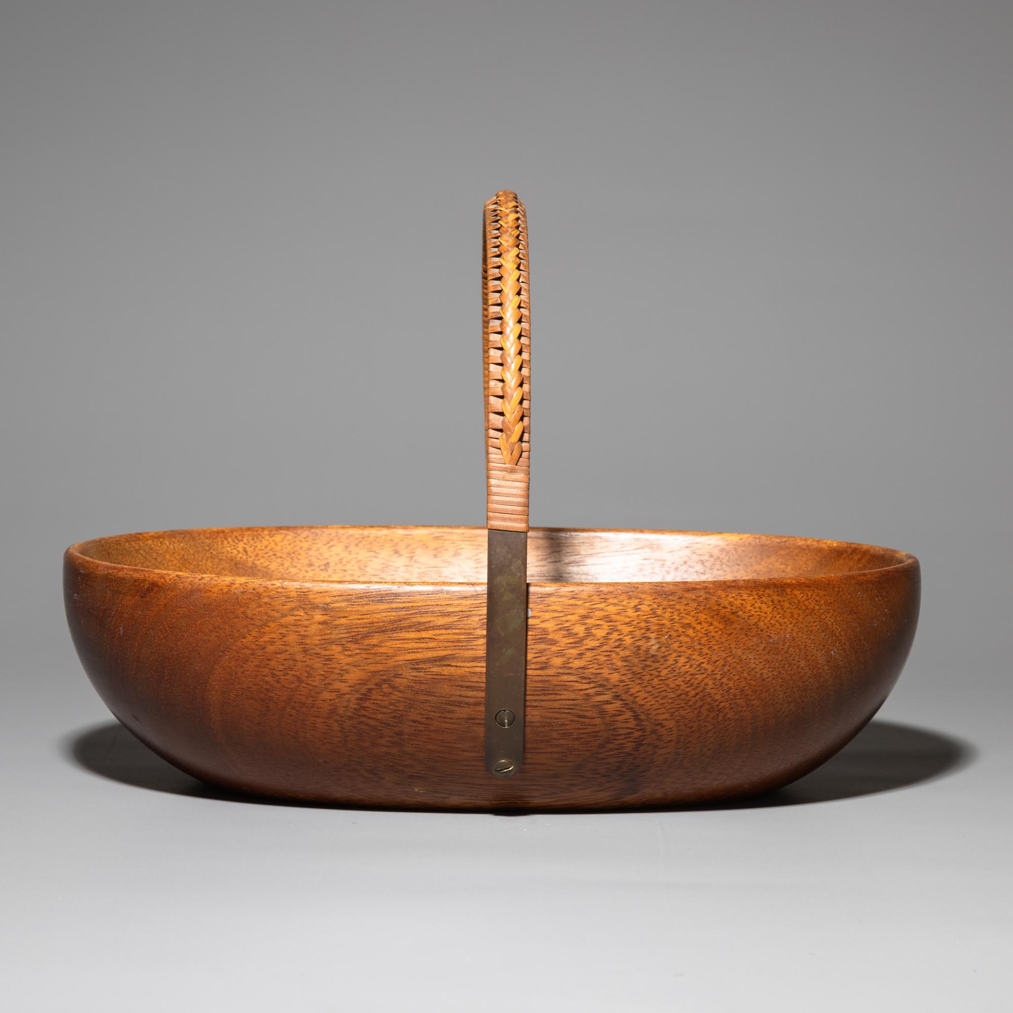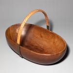 Entwurf 1955. Ausführung Artes, H. & H. Seefried, Steppach. Massives Holz, Messing, Bast. 19 x 28 x 17,5 cm.
