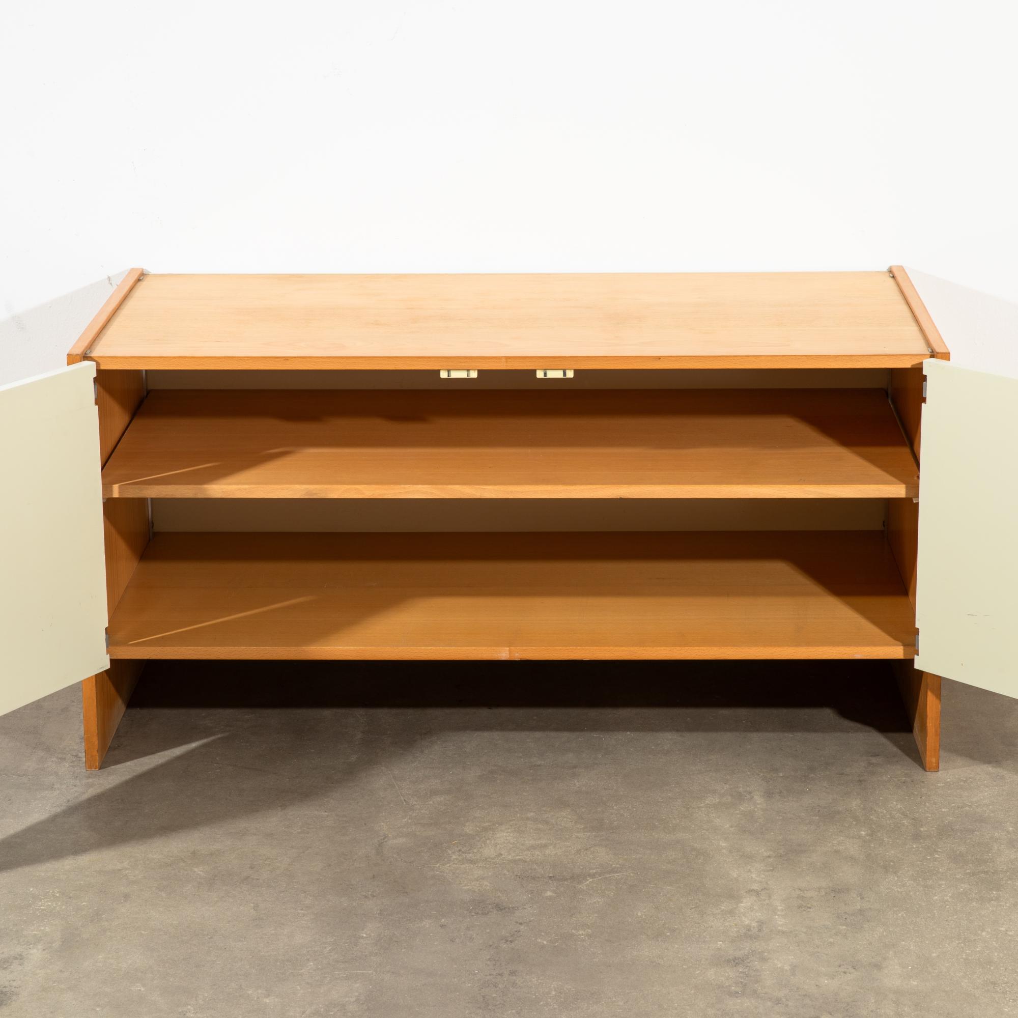 Entwurf 1957. Ausführung Vitsoe & Zapf. Holz, lackierte Fronten, Kunststoffgriffe. 59 x 117 x 60 cm.