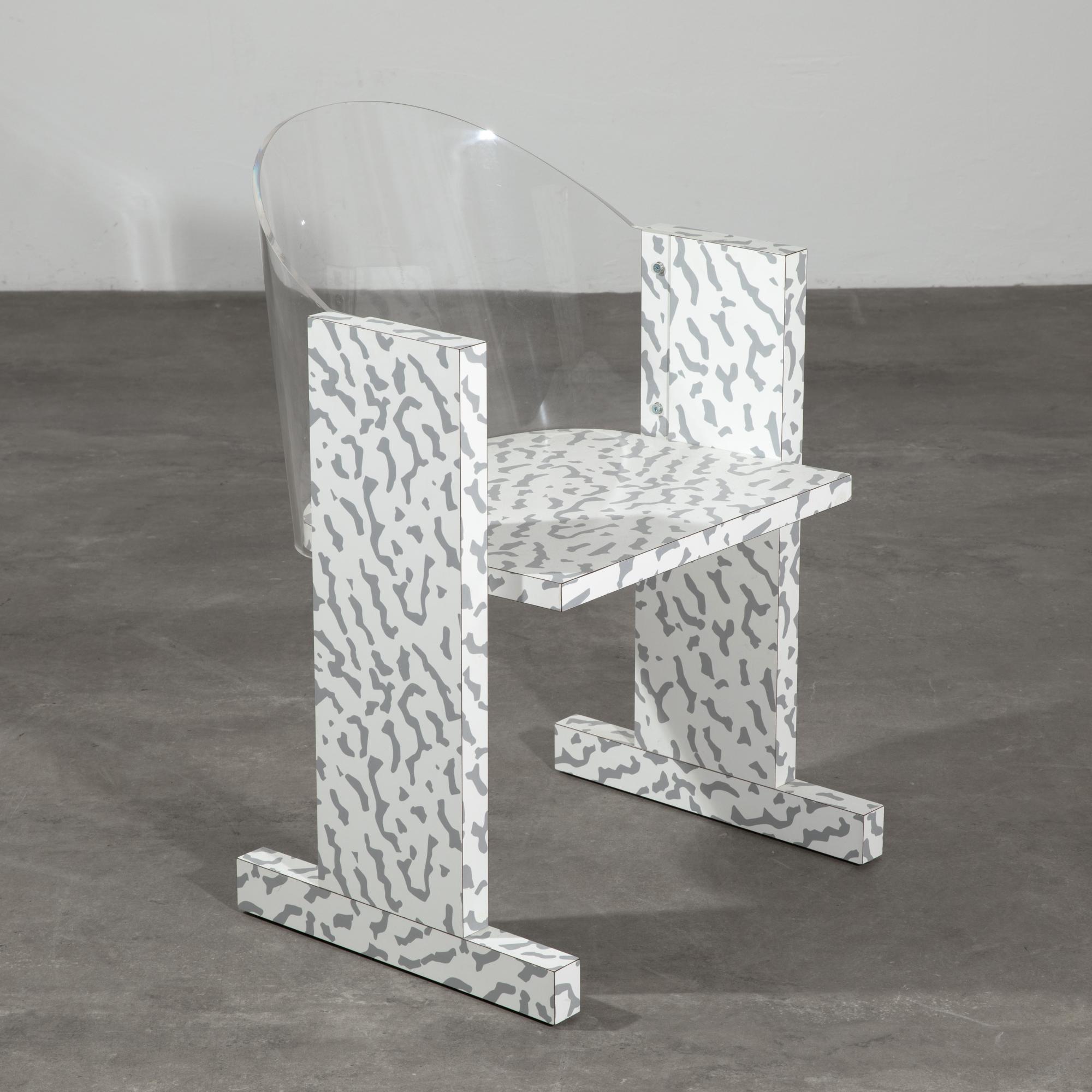Entwurf 1986/87. Ausführung Vitra. Holz mit laminierten Oberflächen, Acryl. 81,5 x 56 x 54 cm.