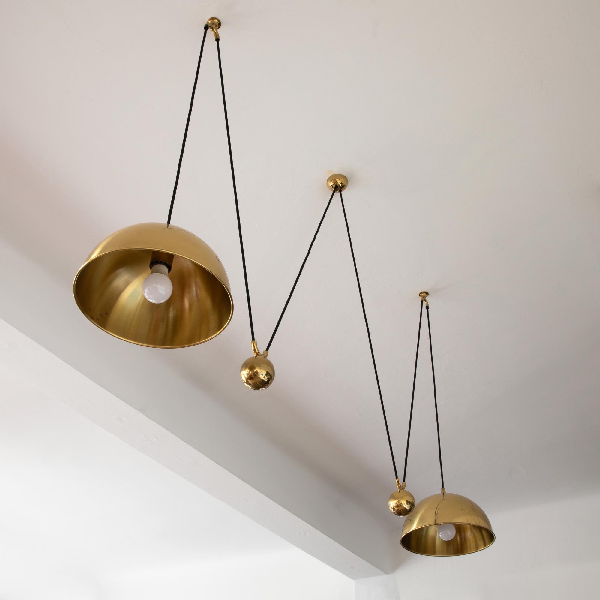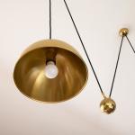 Entwurf 1960/70er Jahre. Ausführung Florian Schulz GmbH. Poliertes Messing, schwarzes Stoffkabel. Maße Reflektoren: H. 19 cm, D. 31 cm.
