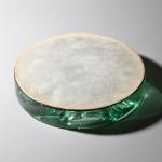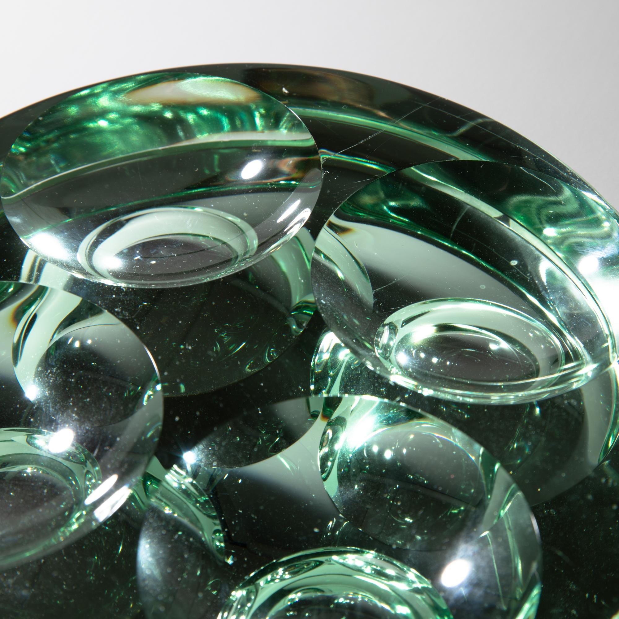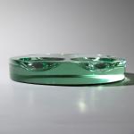 Entwurf aus den 1960/70er Jahren. Ausführung Fontana Arte. Klares Glas, Spiegelfolie, Filz. H. 3,5 cm, D. 21 cm.