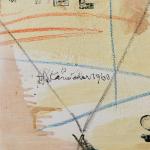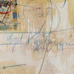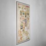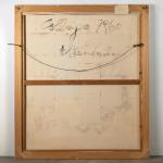 Mischtechnik, Collage auf Leinwand. 145 x 124 cm. Unten rechts signiert und datiert: H. Staudacher 1960 (Tinte), verso bezeichnet, datiert und signiert: Collage 1960 H. Staudacher (Öl) sowie auf einem Klebeetikett der Galerie Wolf, Düsseldorf u.a. typographisch betitelt: Freiheit ist Spiel. Gerahmt und so beschrieben.