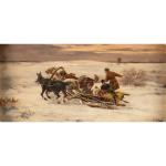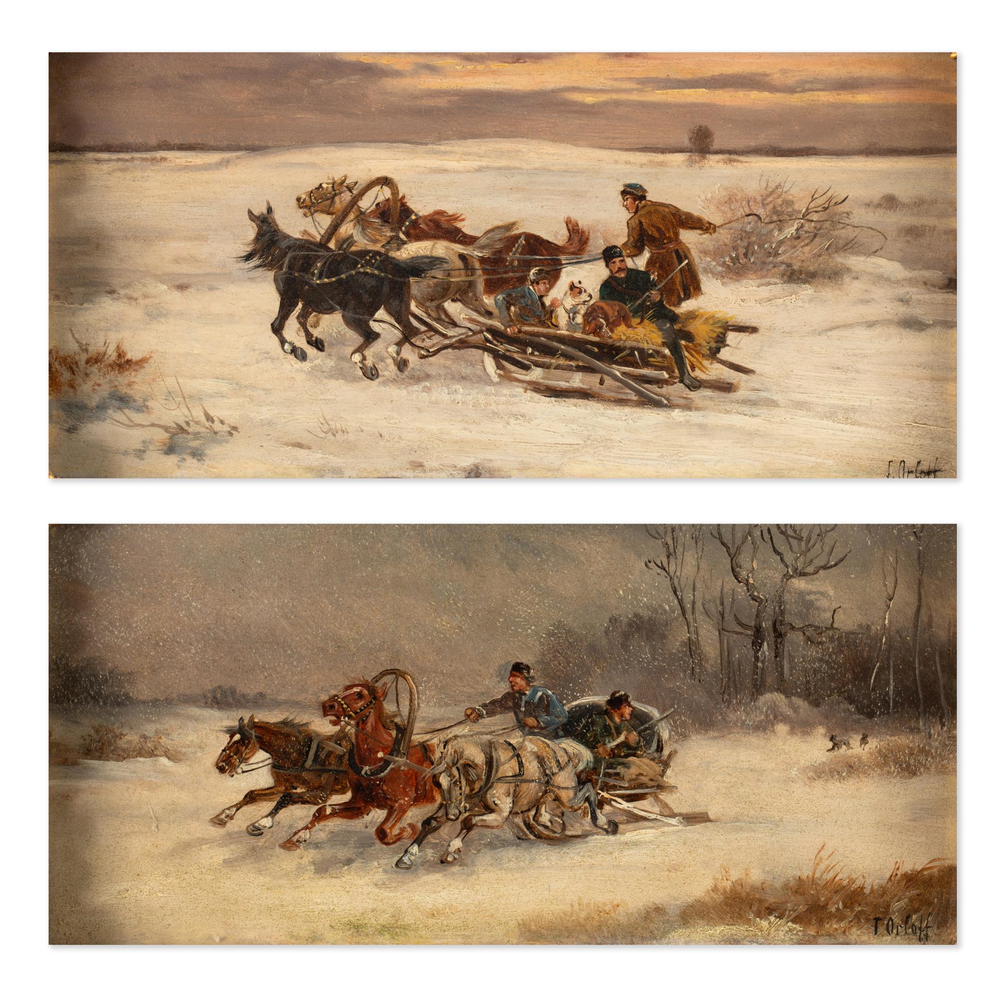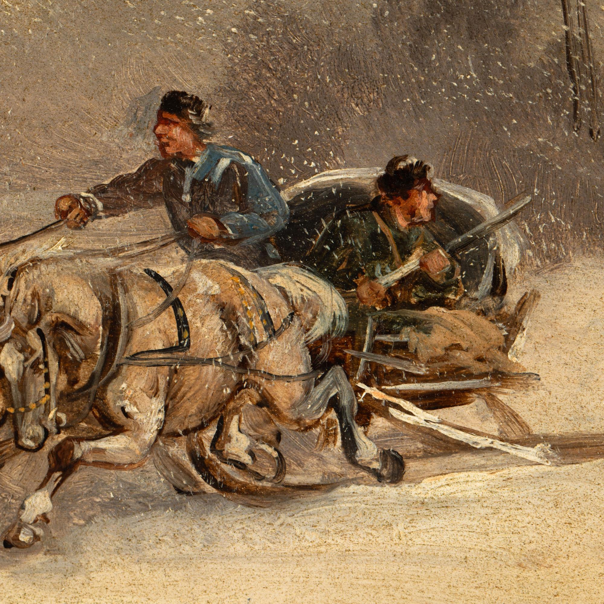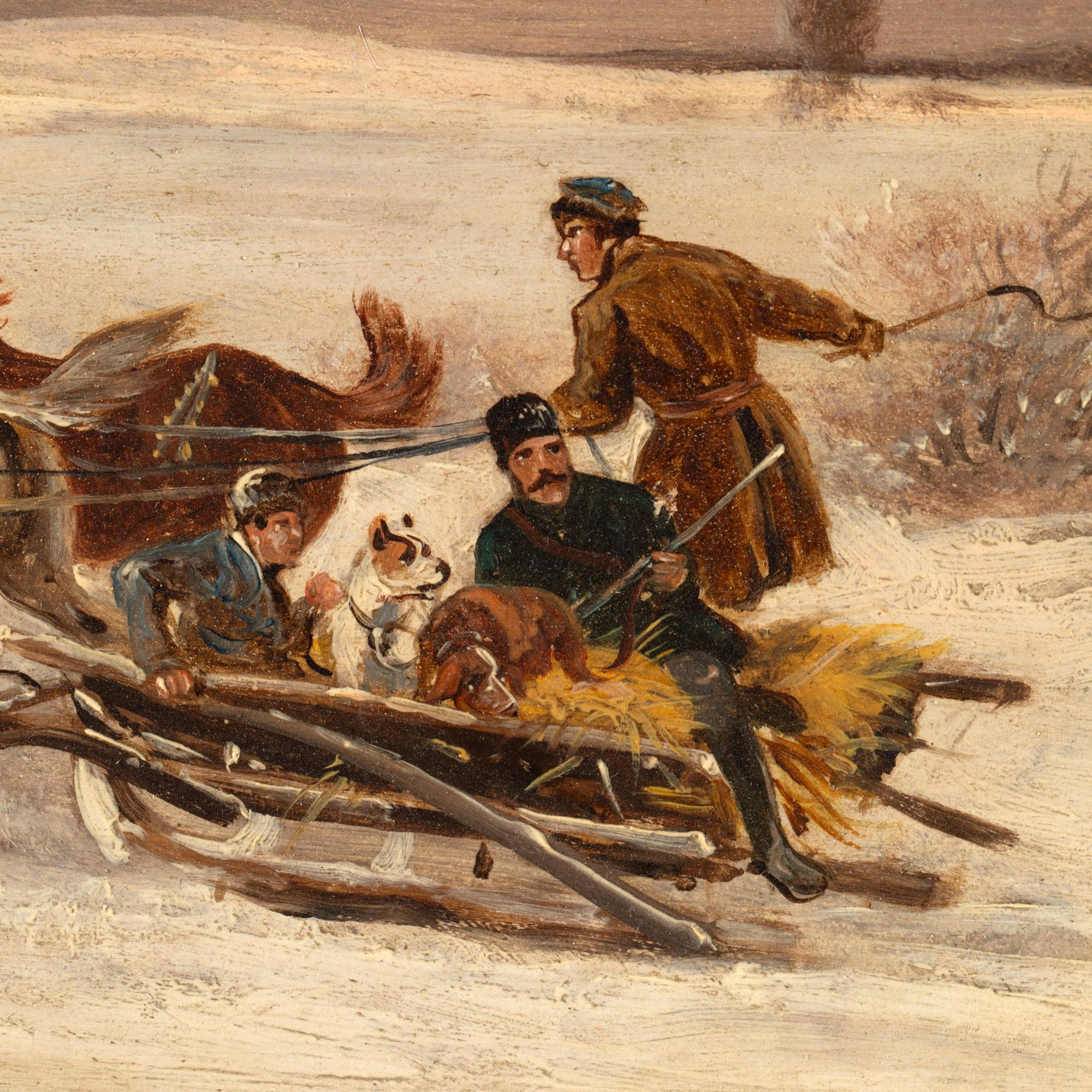 Gemäldepaar 'Pferdeschlitten im Winter', 19. Jh.