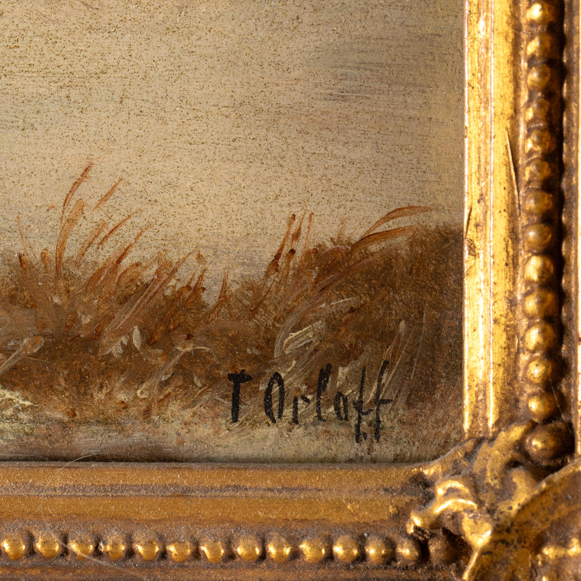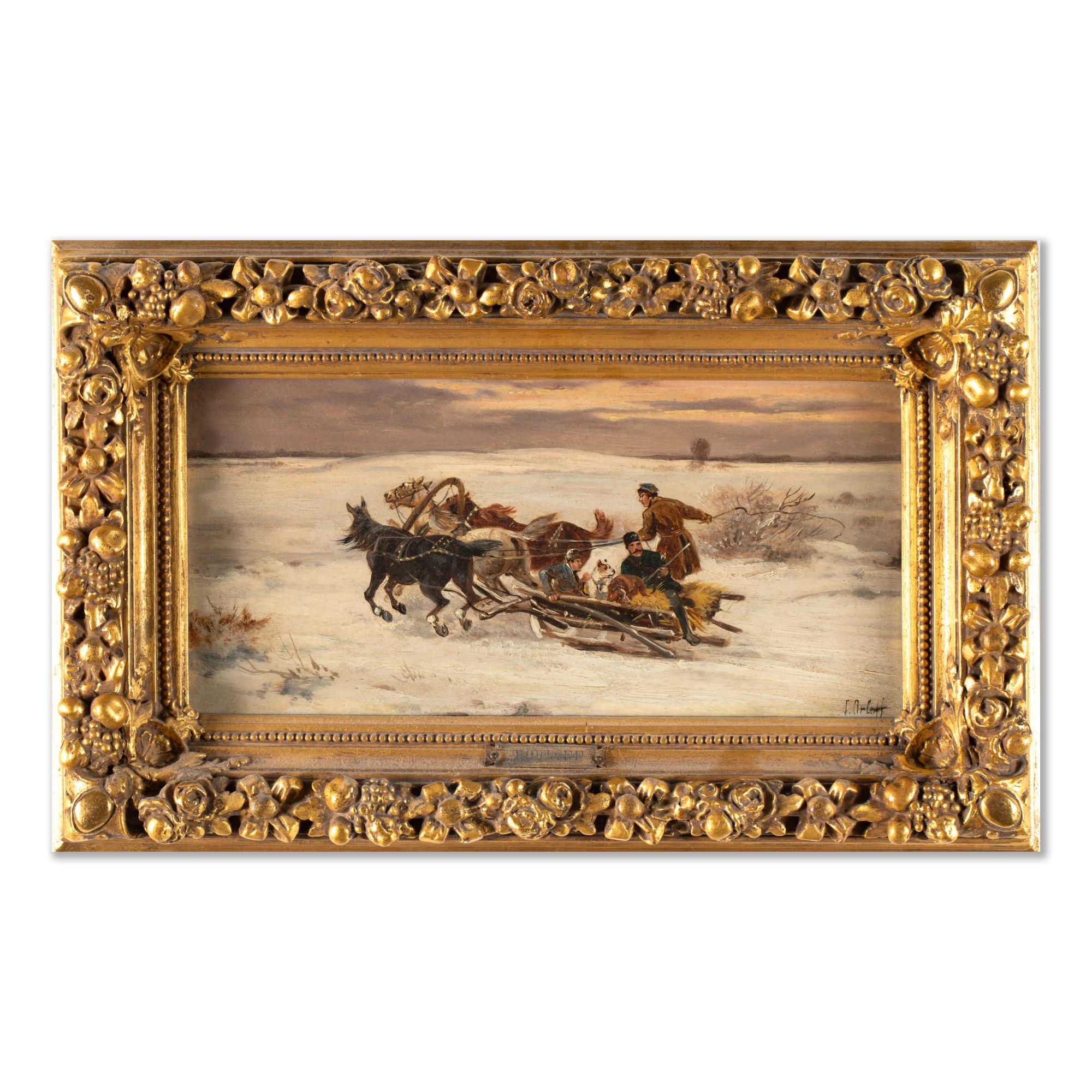 Öl auf Leinwand. 16,5 x 32,7 cm. Rechts unten mit Pinsel signiert: J. Orloff. Gerahmt und so beschrieben.