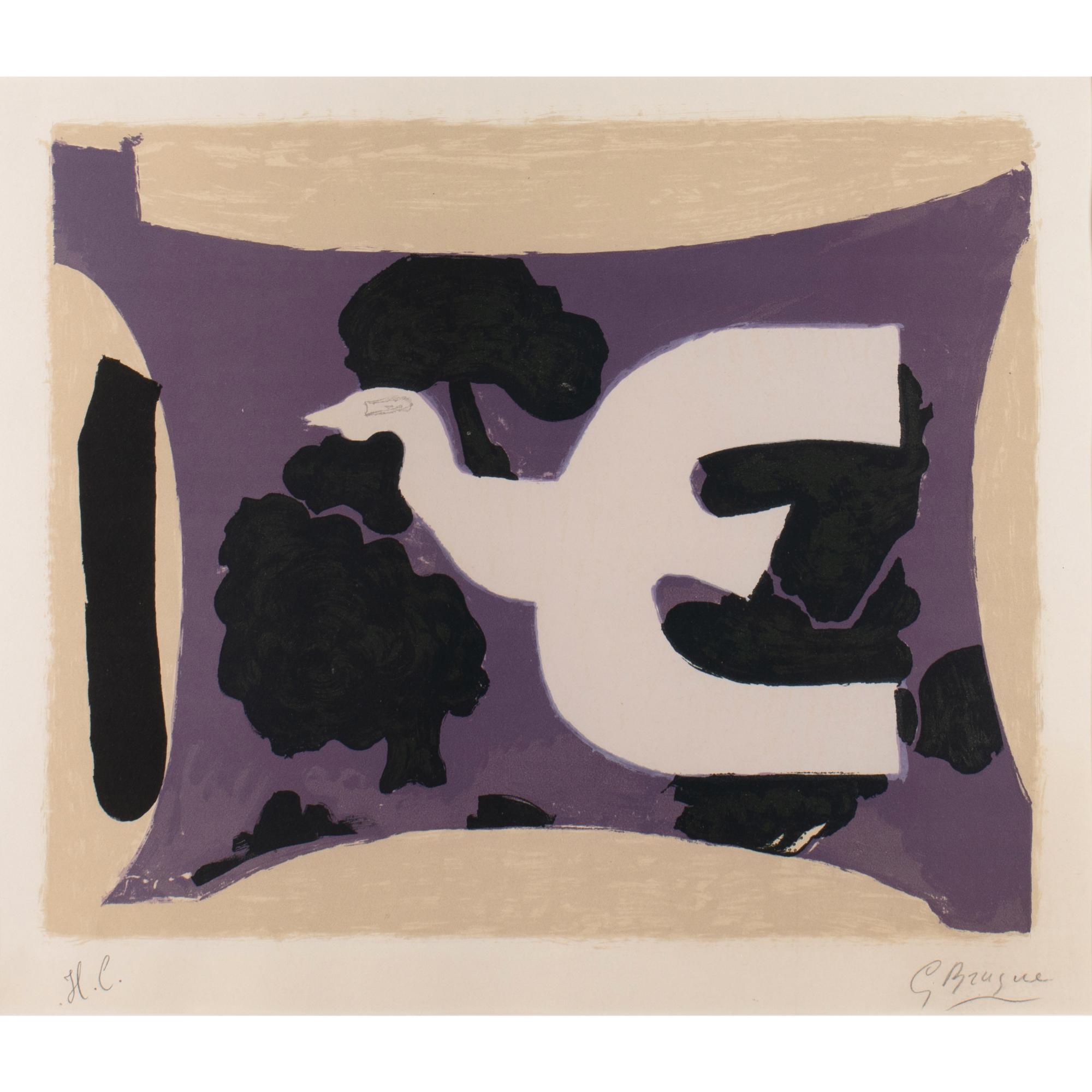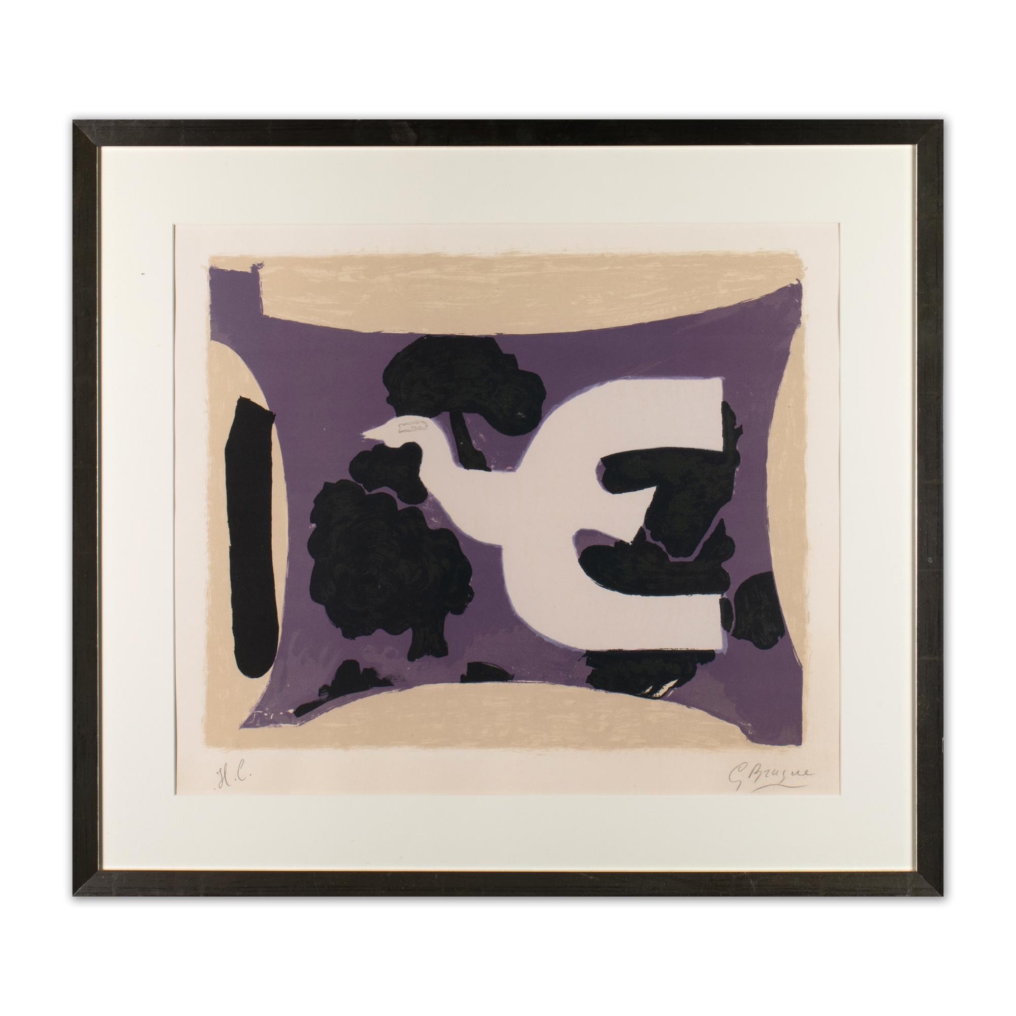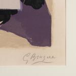 Farbradierung. Bildausschnitt 42,5 x 51 cm. Unten Links mit Bleistift bezeichnet: .H.C. und unten rechts signiert: G Braque. Hinter Glas im Passepartout gerahmt und so beschrieben.
