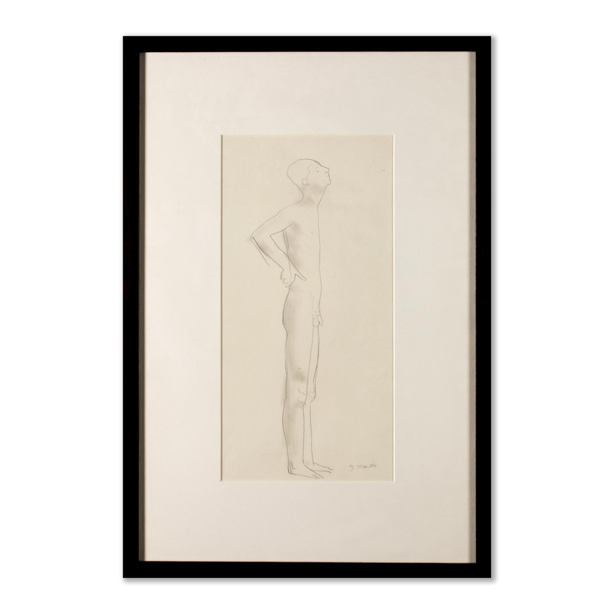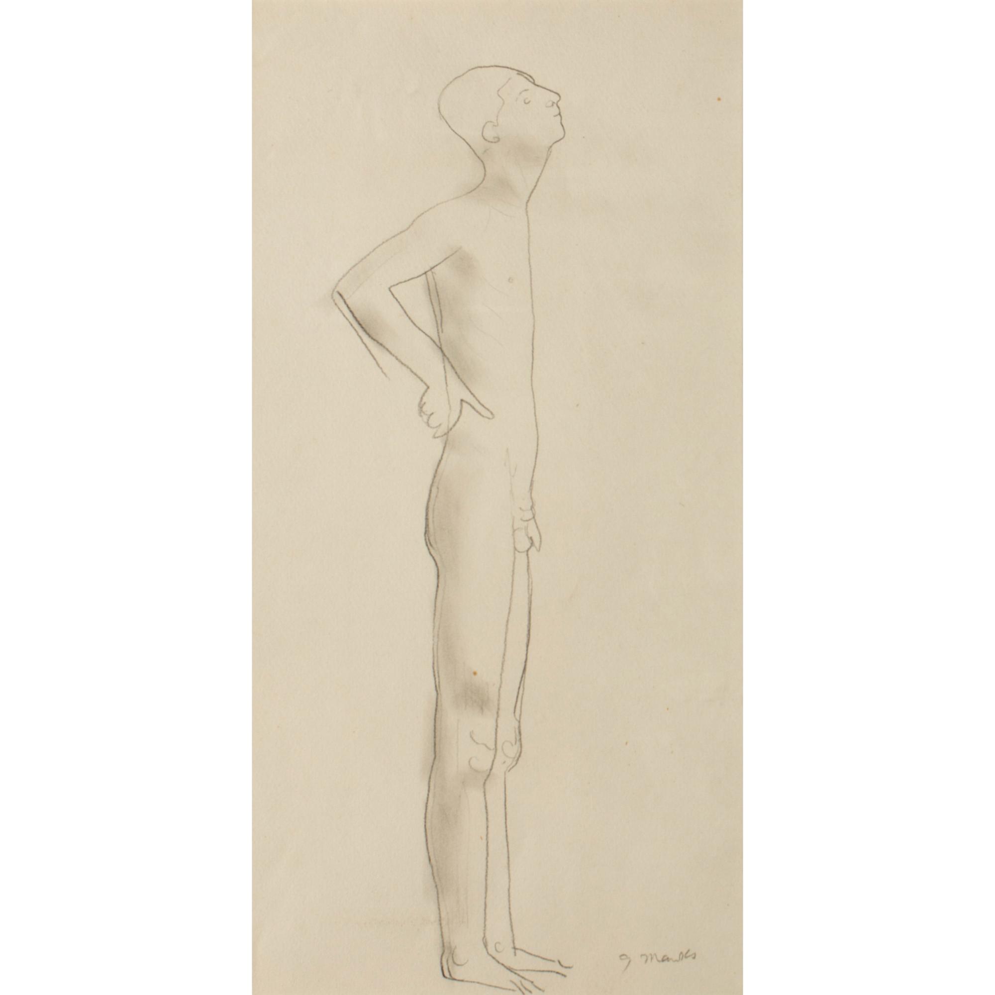 2 Bll. Bleistift auf Velin, mit Darstellungen recto und verso. Je ca. 36,5 x 10 cm (Darstellung Knabenakt) und ca. 40 x 15 cm (Darstellung Männerakt). Knabenakt recto unten rechts signiert: G Marcks (Bleistift), Männerakt verso unten mittig bezeichnet: Schorling K89-15/2 7x5 (Bleistift).