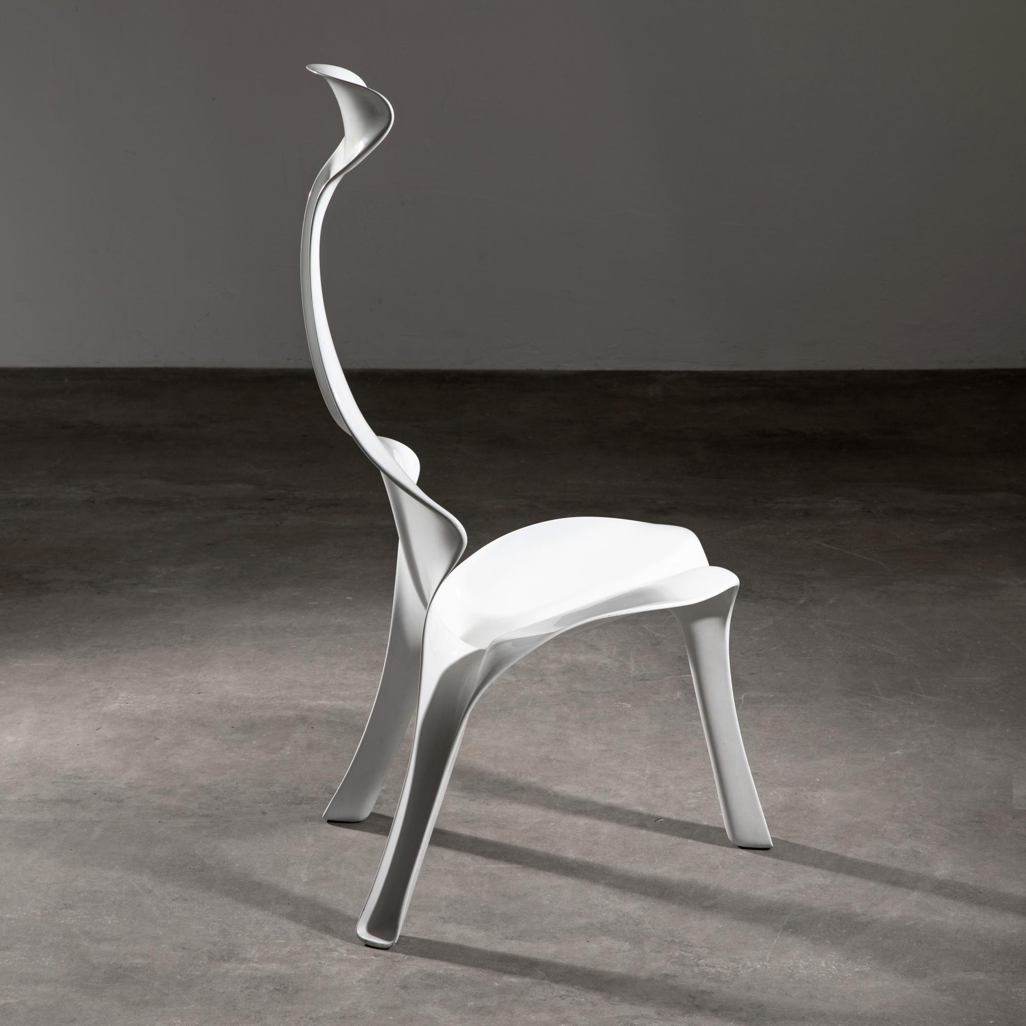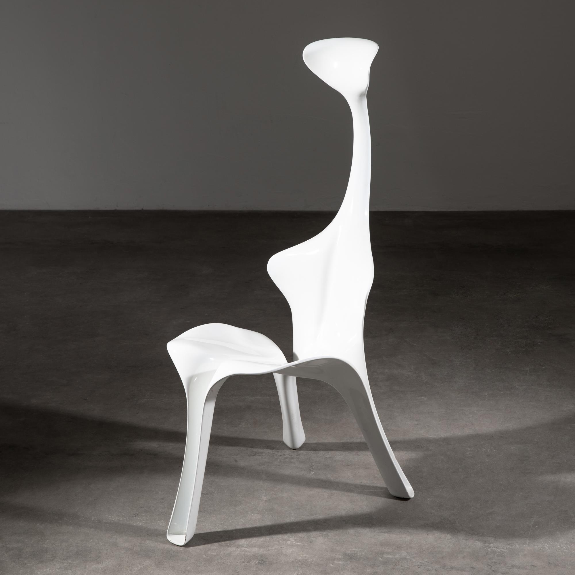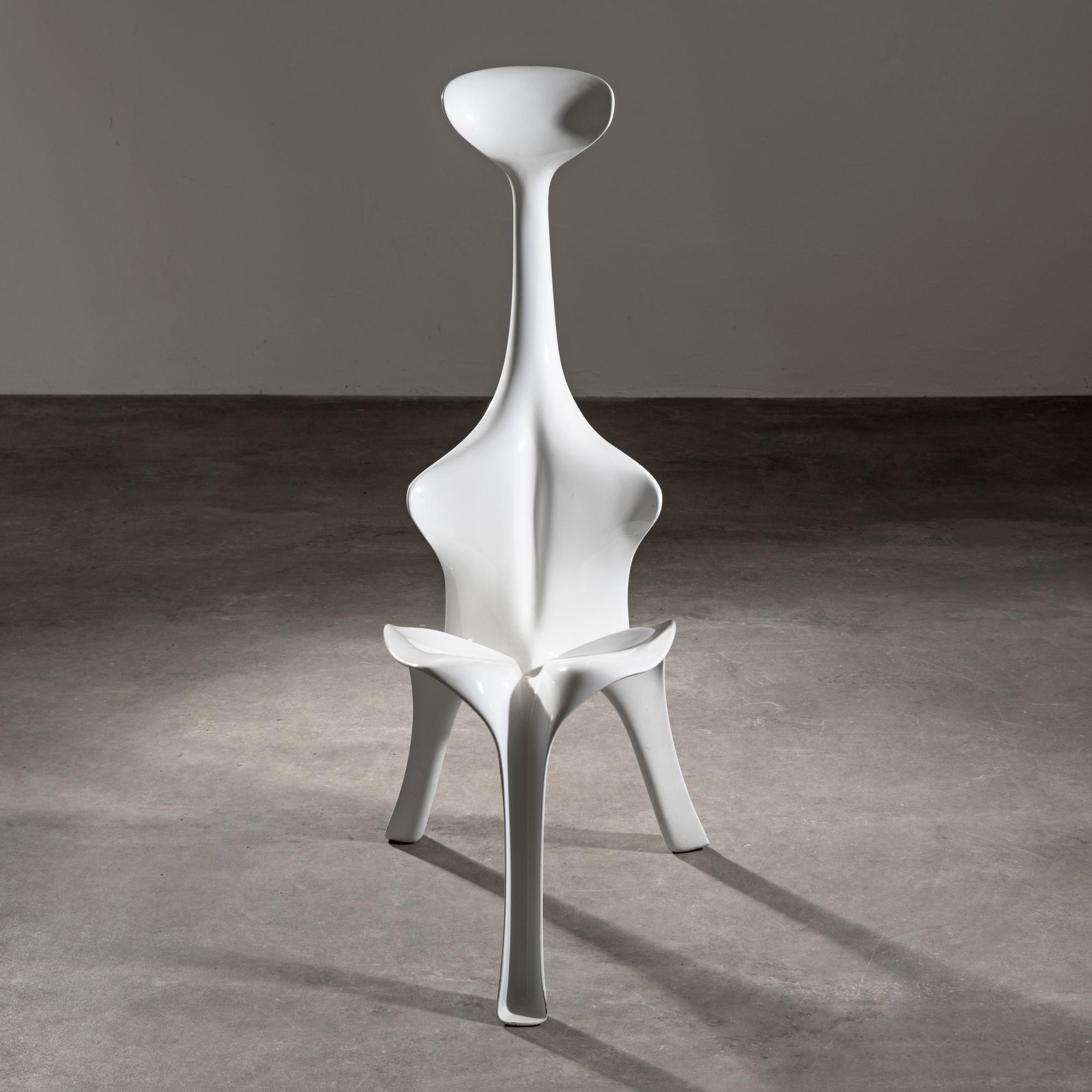 Entwurf 1967. Aus der 1. Edition von Brüder Beltzig Design. Glasfaserverstärktes Polyester, weiß lackiert. 105 x 45 x 59 cm.