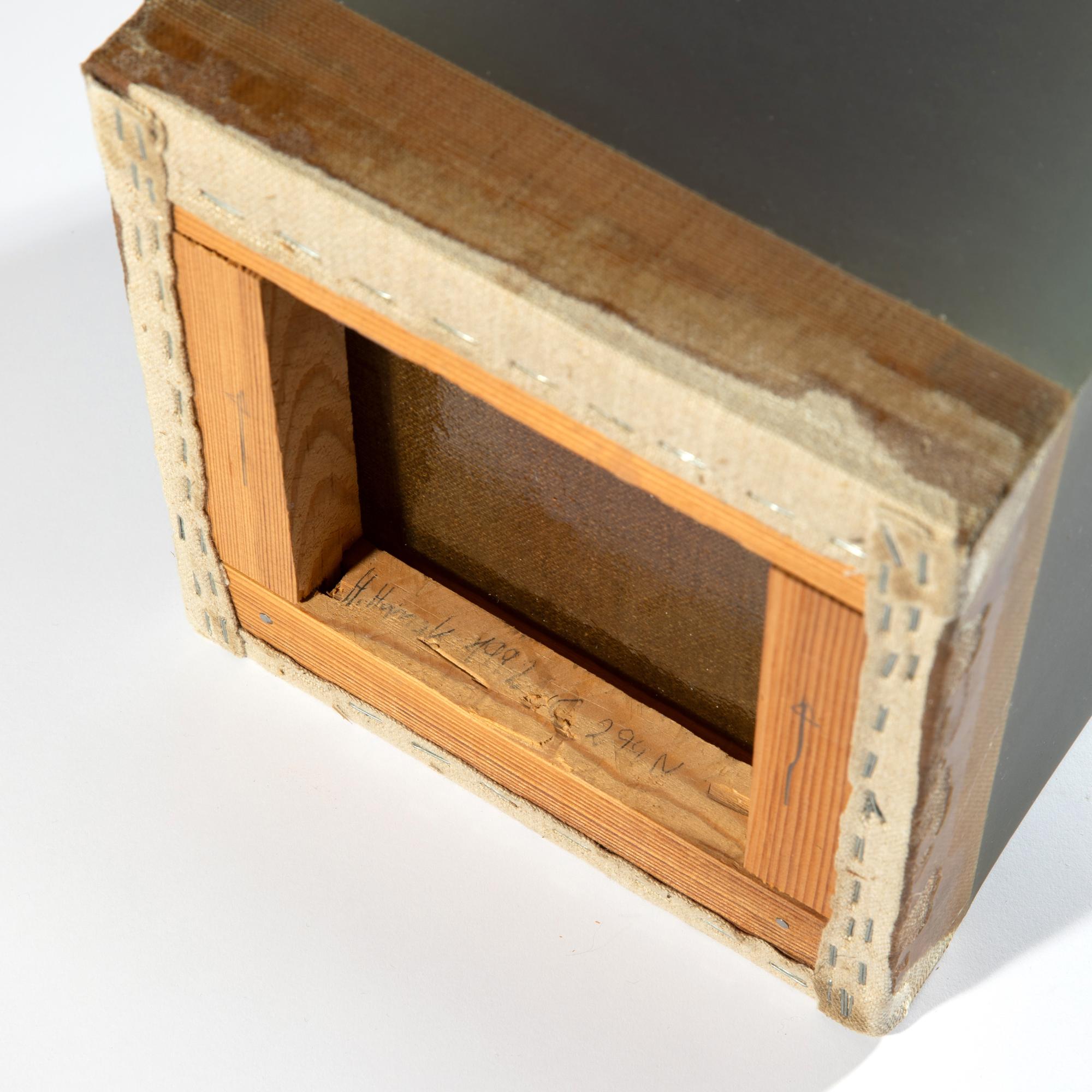 Wandskulptur. Mischtechnik (Harz & Pigmente) auf Leinwand. 27 x 20 x 20 cm. Unterseitig im Holzsockel signiert, datiert und bezeichnet: H.Hamak / 1992 / C294N.