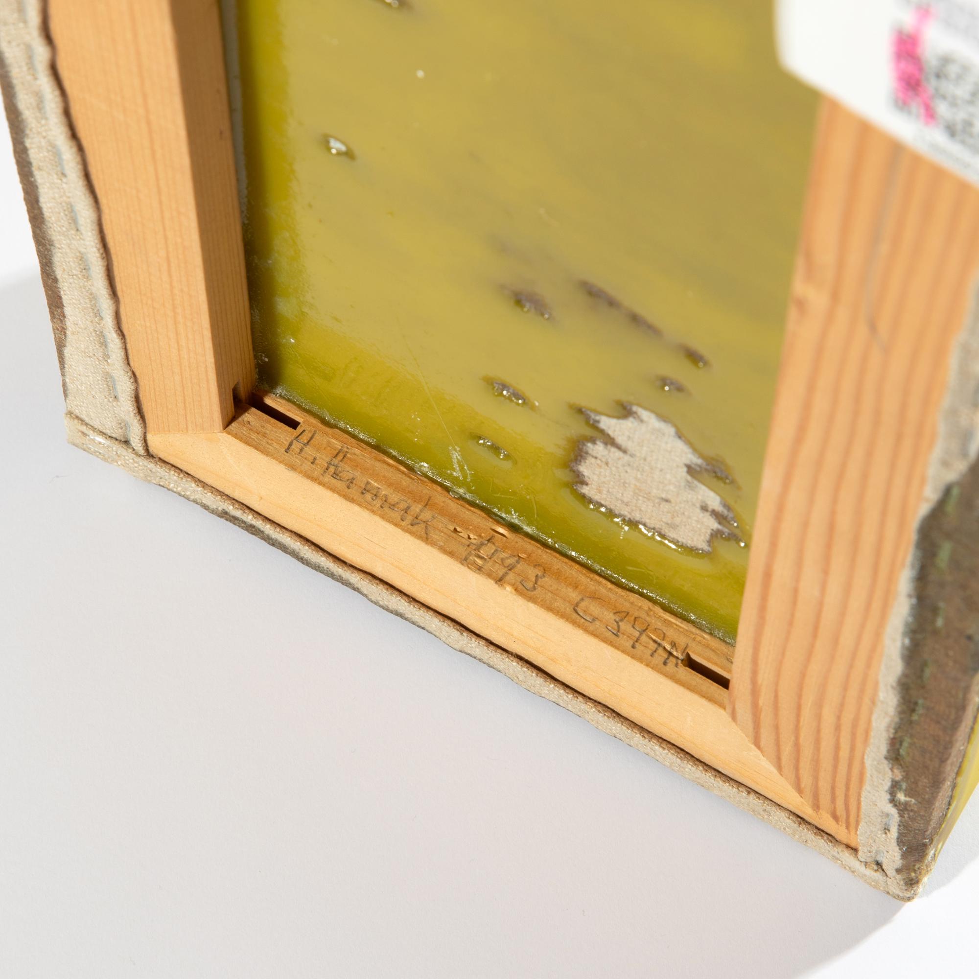 Wandskulptur. Mischtechnik (Harz & Pigmente) auf Leinwand. 7,8 x 19,9 x 38,8 cm. Unterseitig im Holzsockel signiert, datiert und bezeichnet: H.Hamak / 1993 / C397N.
