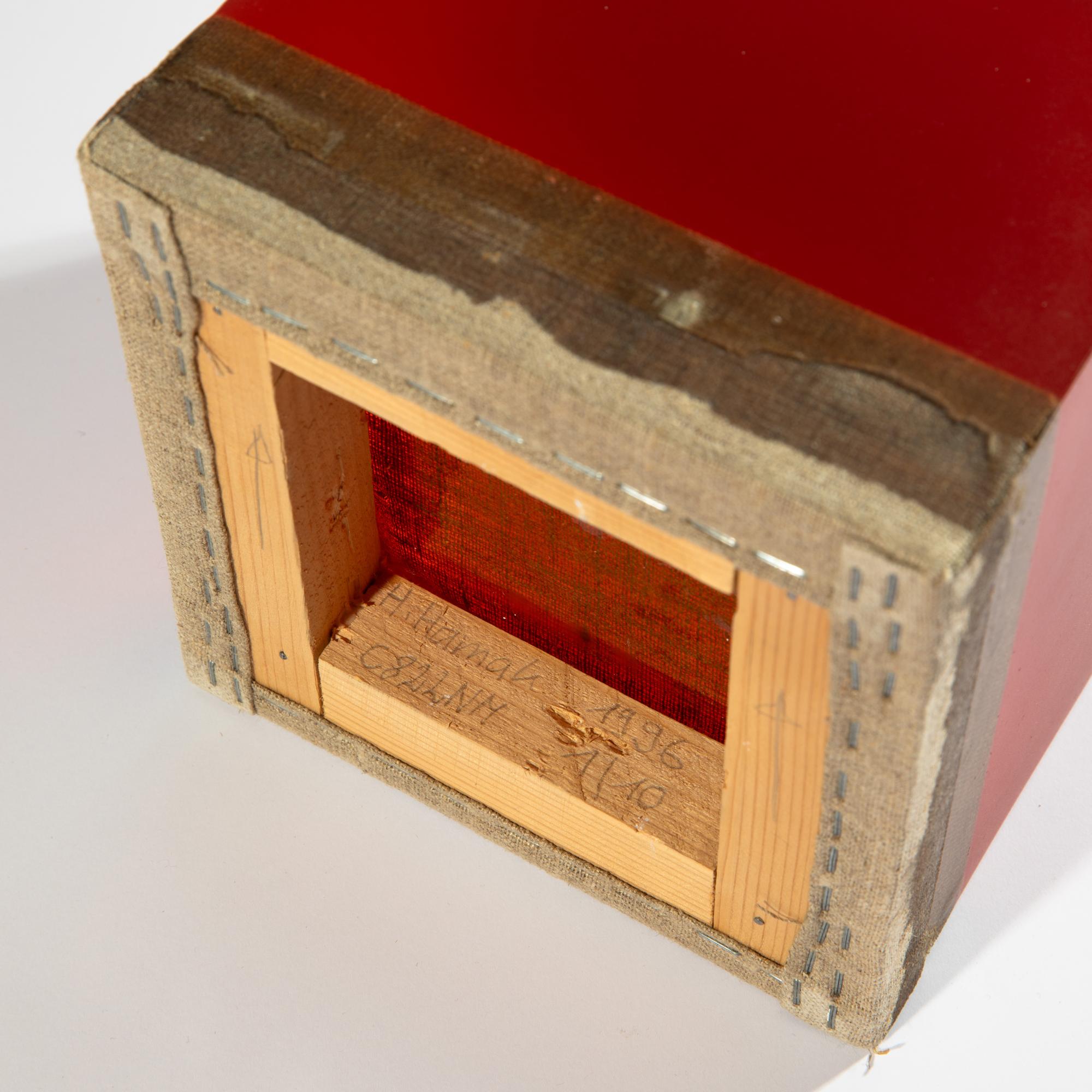 Wandskulptur. Mischtechnik (Harz & Pigmente) auf Leinwand. 21,7 x 18 x 18 cm. Unterseitig im Holzsockel signiert, datiert und bezeichnet: H.Hamak / 1996 / C822NM / 1 /10.