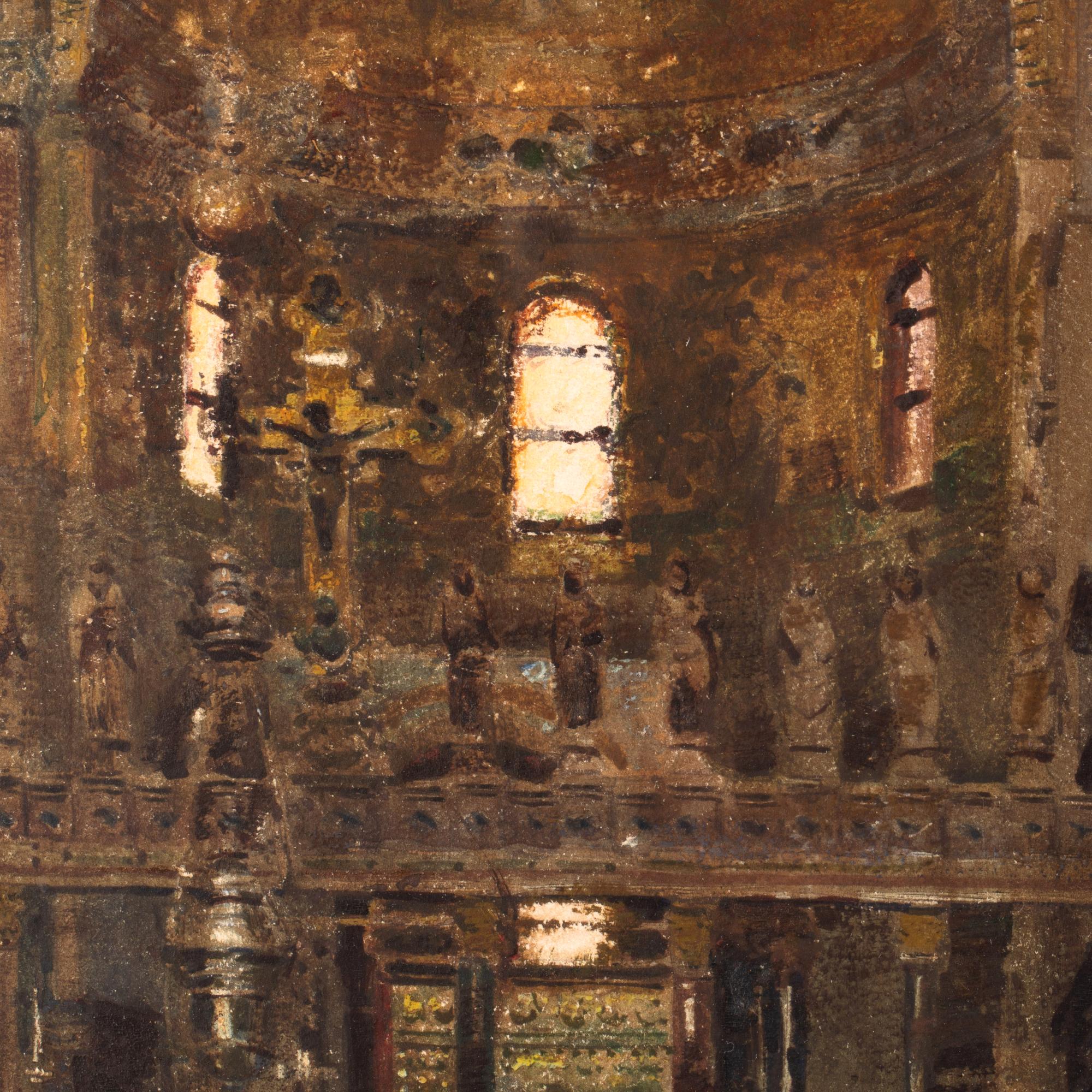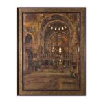 Mischtechnik auf Papier. 60 x 45 cm. Recto unten rechts signiert: HEINRICH HERMANNS. Verso auf Klebeetikett mit Inventarnummer und bezeichnet: N.91 / Innenansicht von San Marco in Venedig. Hinter Glas gerahmt und so beschrieben.