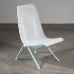 Entwurf 1954 / 2019. Ausführung in streng limitierter Auflage von Vitra USA. Matttransparenter Kunststoff, Metall 'baby blue' lackiert. 88 x 50 x 70 cm. Mit Metallplakette bezeichnet. Original verpacktes Exemplar.