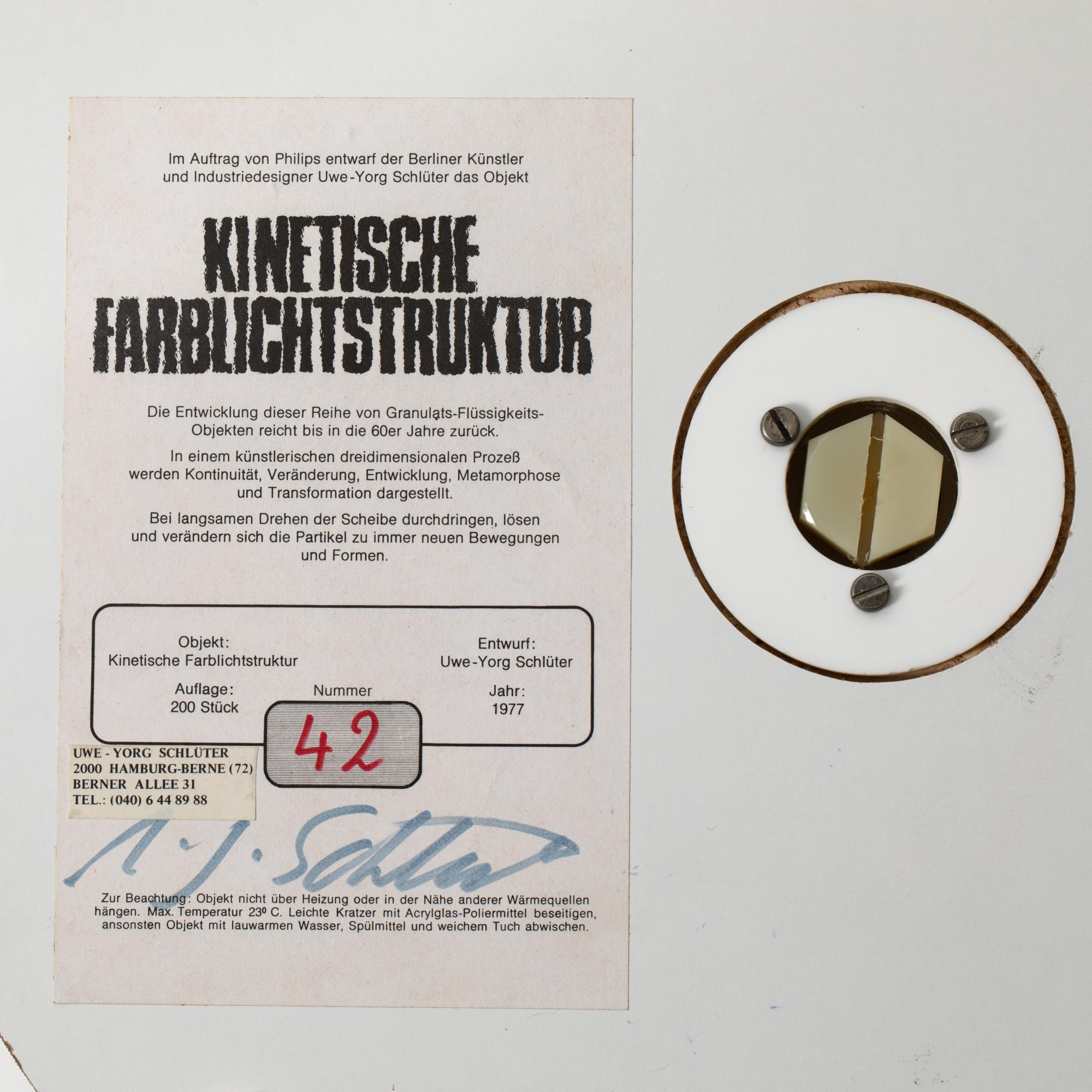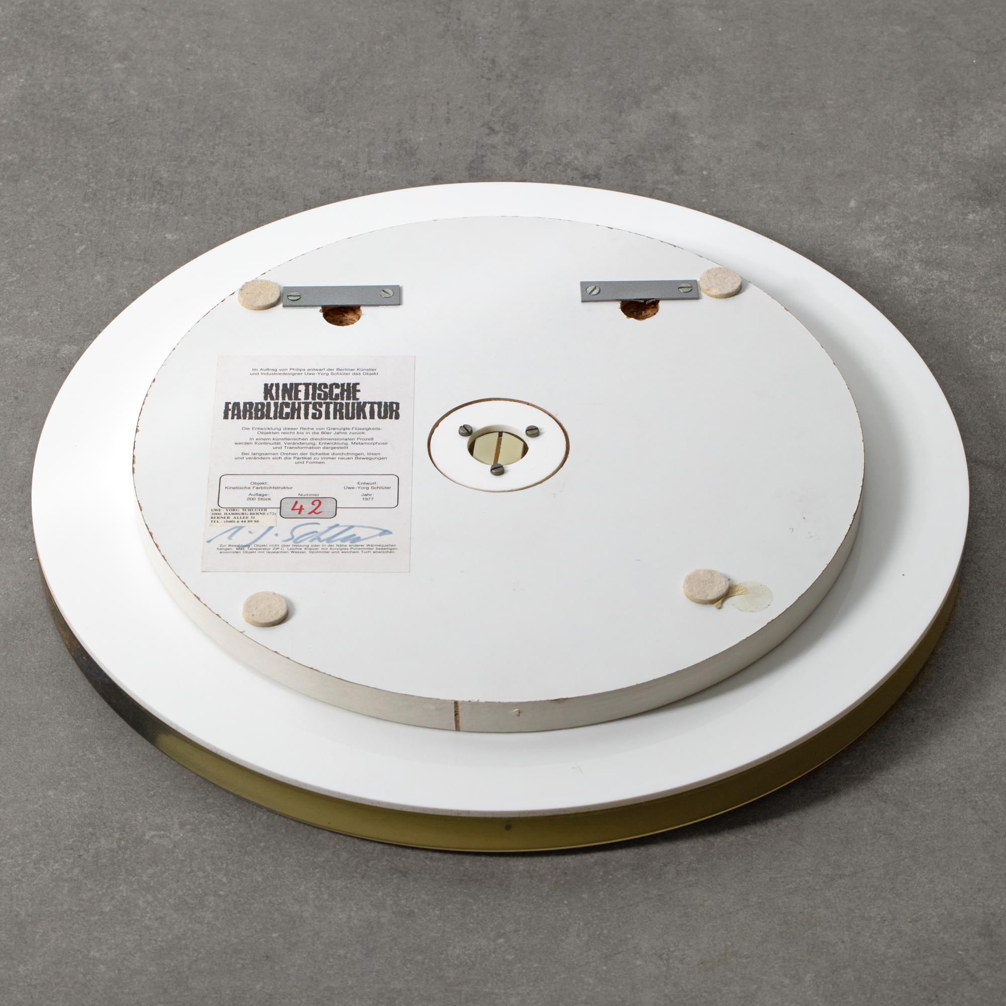 Wandobjekt. D. 46 cm. H. 5 cm. Verso auf Klebeetikett beschrieben. Hier Nummer 42 aus einer Auflage von 200 Exemplaren. Mit Faserstift signier: U.Y. Schlüter. Von Philips im original Karton.