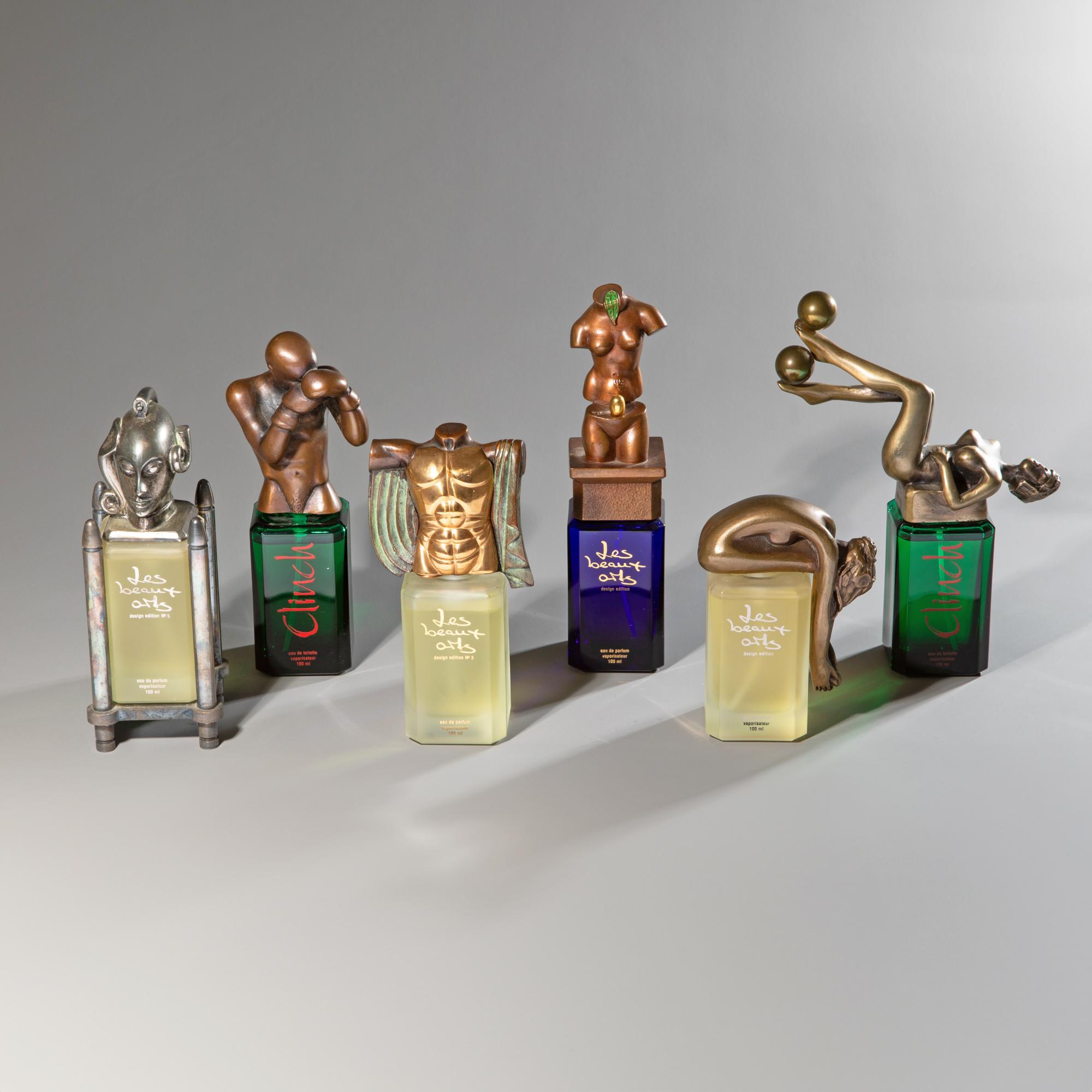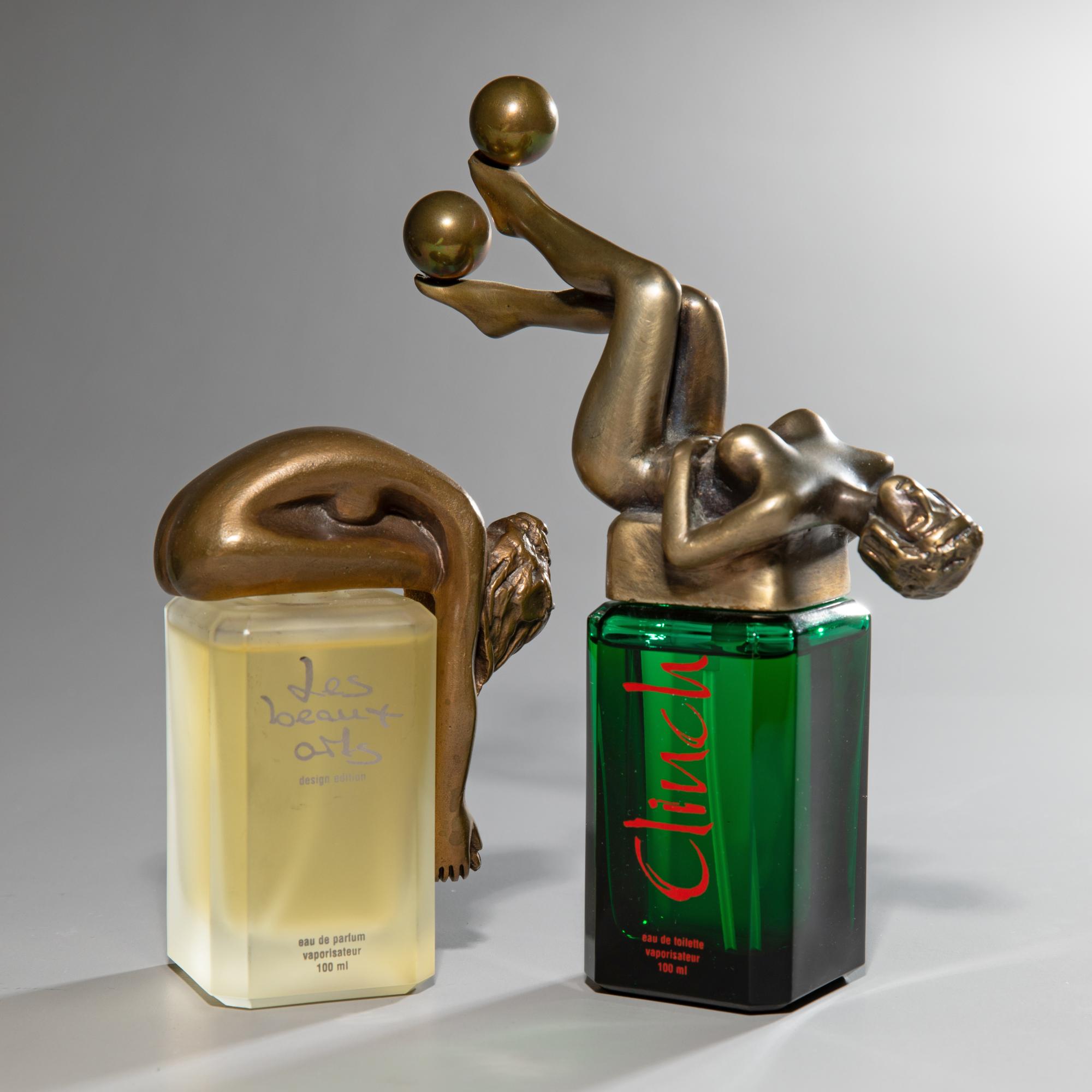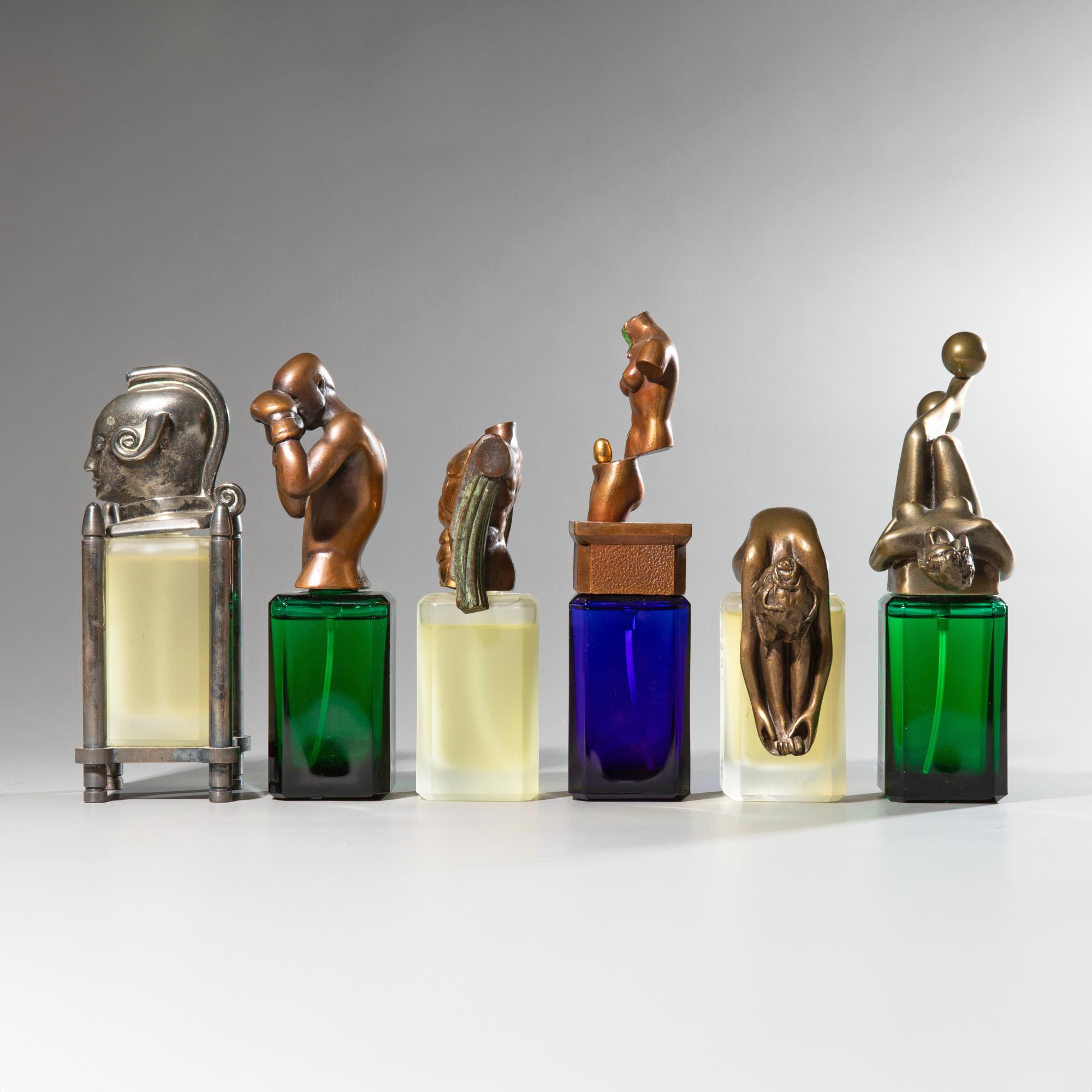 Glasflakons mit Verschlüssen aus Bronze nach Künstlerentwürfen. Salvator Dali,