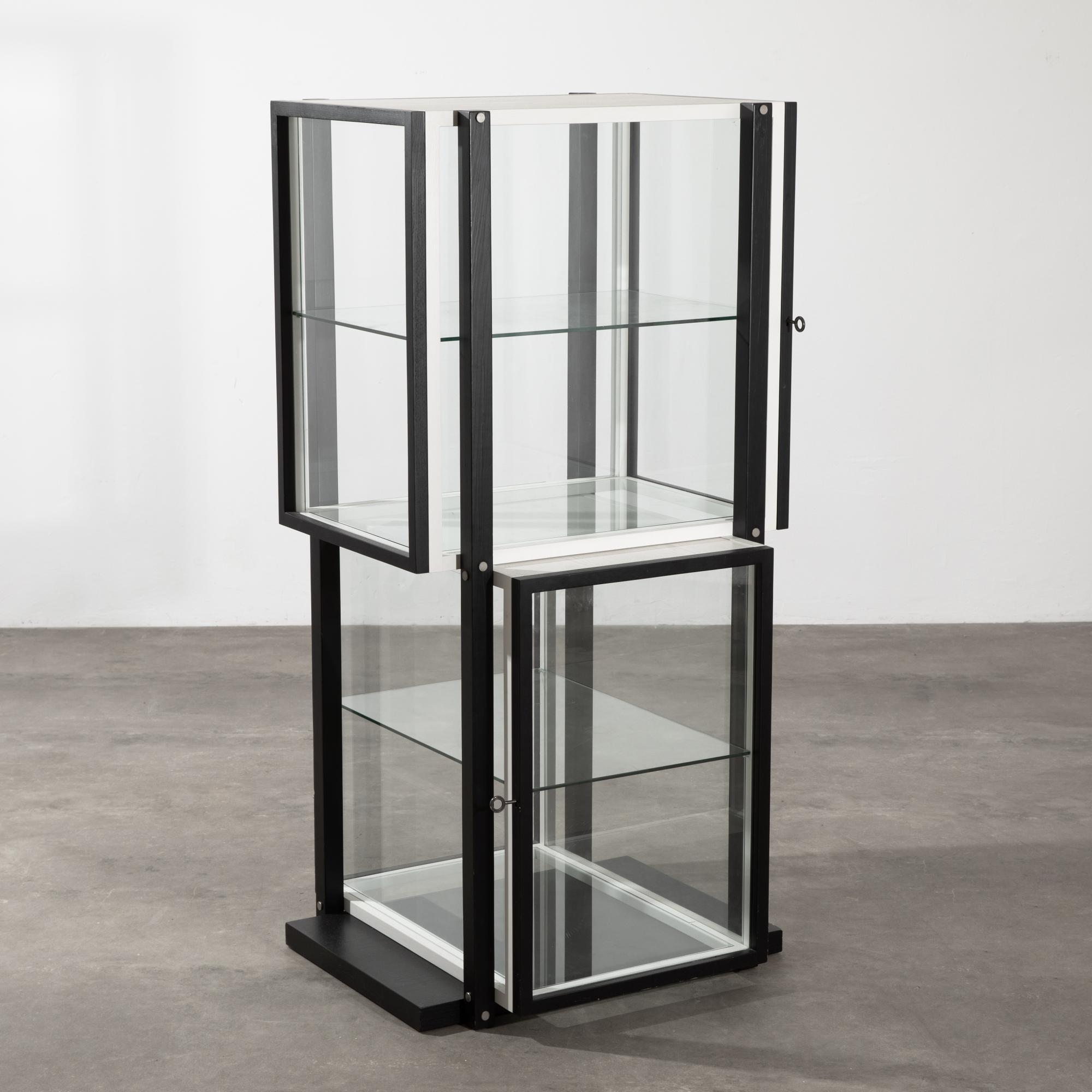 Entwurf 1925. Ausführung Tecta ca. 1980/90er Jahre. Schwarz und weiß lackiertes Holz, Glas. 140 x 68 x 68 cm. In dieser etwas kleineren Form wird die Vitrine aktuell nicht hergestellt.