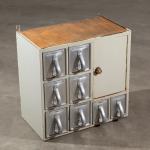 Entwurf 1929. Lackiertes Holz, 8 Aluminiumschütten. 53 x 54 x 34 cm. Schütten bezeichnet mit 'Original Haarer Hanau a. M.'.