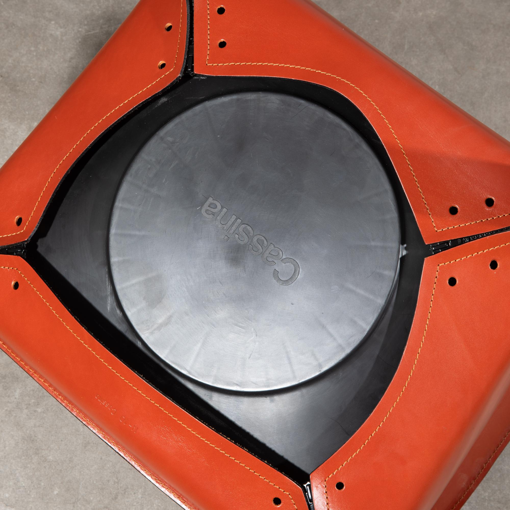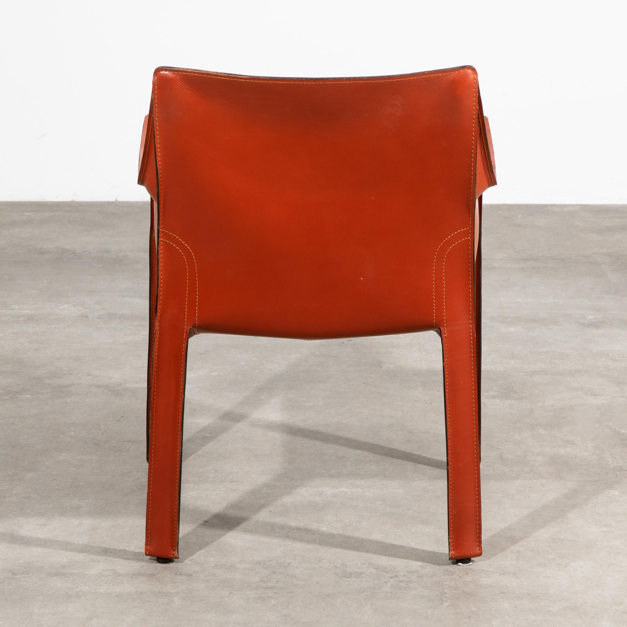 Entwurf 1977. Ausführung Cassina. Metall, Kunststoff, cognacfrabenes Kernleder. 81 x 58 x 50 cm. Unterseitig mit Cassina Prägung bezeichnet.