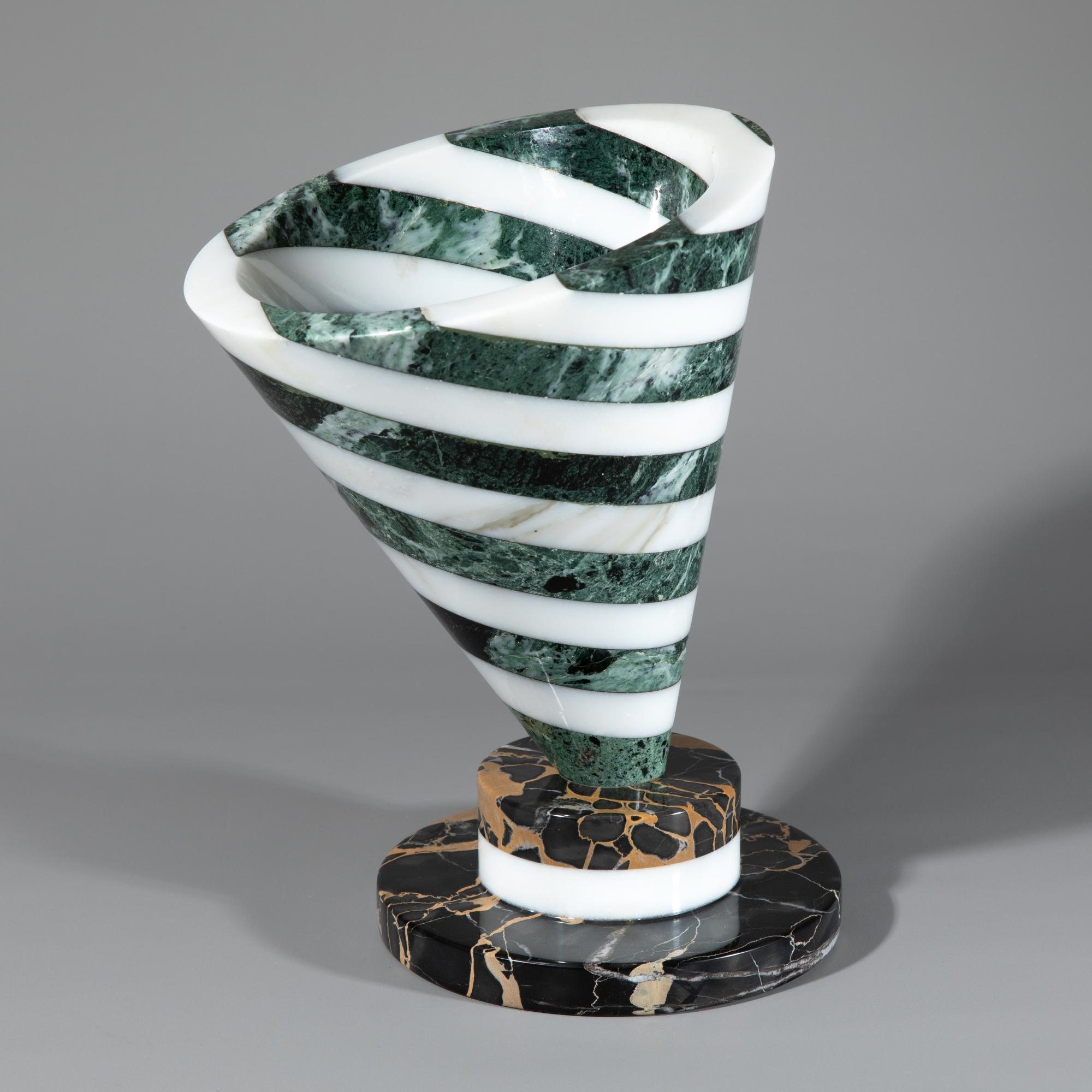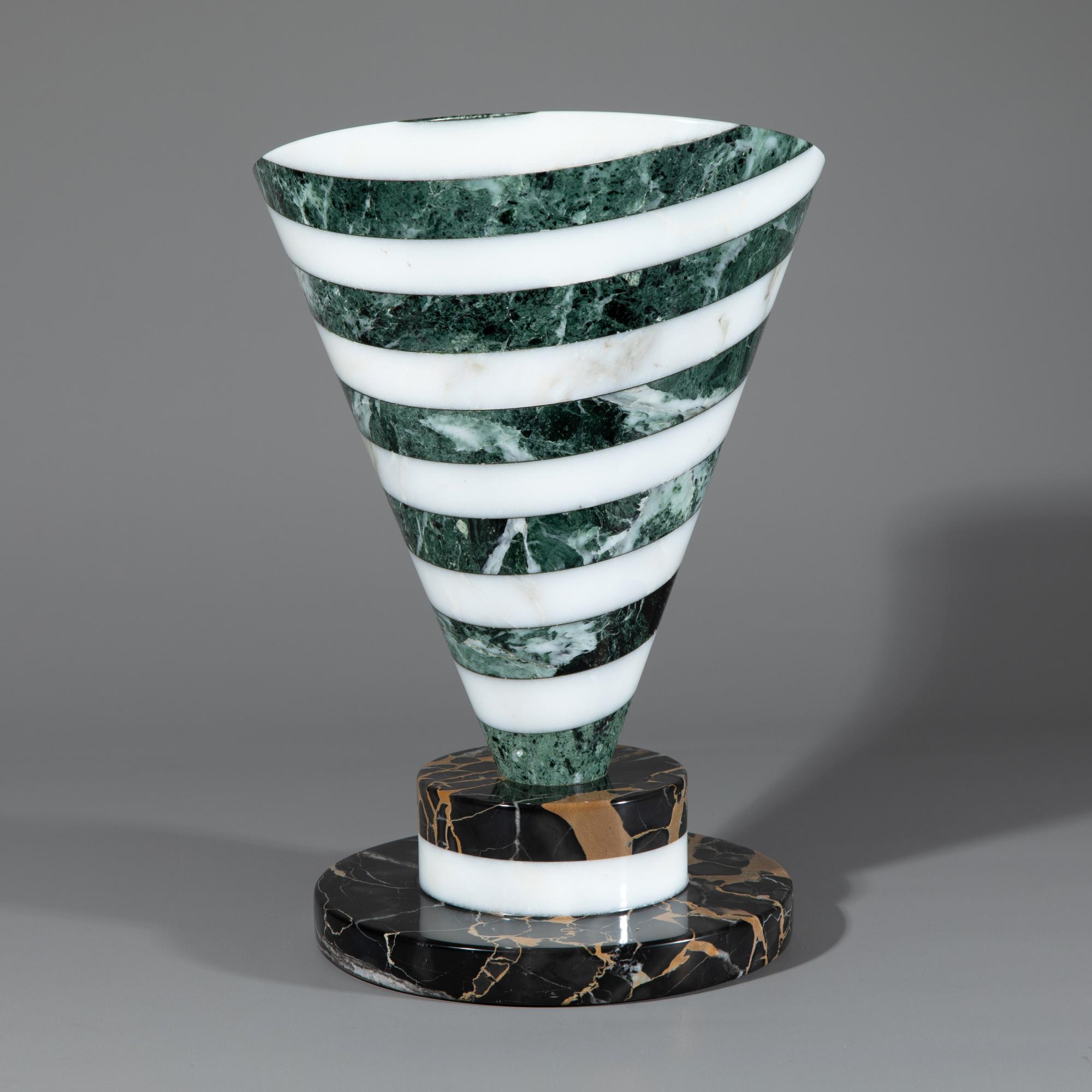 Entwurf um 1985. Ausführung Up & Up. Verschiedene Marmorarten. 31 x 21,5 x 24 cm. Untewrseitig mit einem Aufkleber bezeichnet.