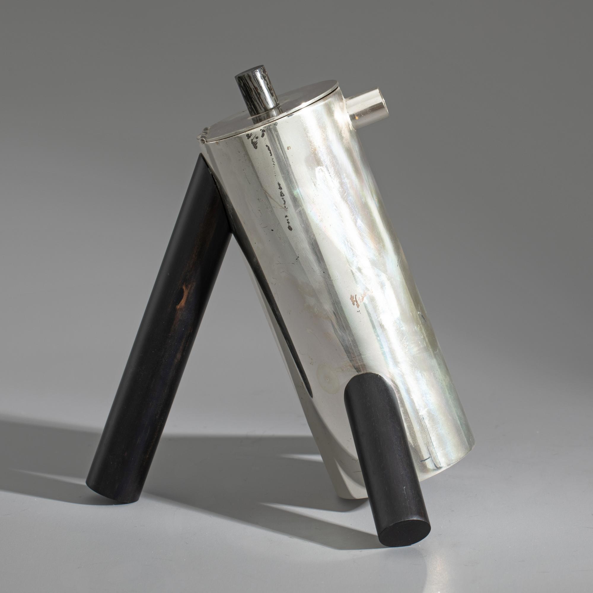 Entwurf 1987. Ausführung WMF in einer limitierten Auflage von nur 5 Stück. Versilbertes Messing, Kunststoff. 21 x 18 x 19 cm. Unterseitig bezeichnet 'WMF Design-Workshop Art.Nr. 21/III, Designed by Matteo Thun'.