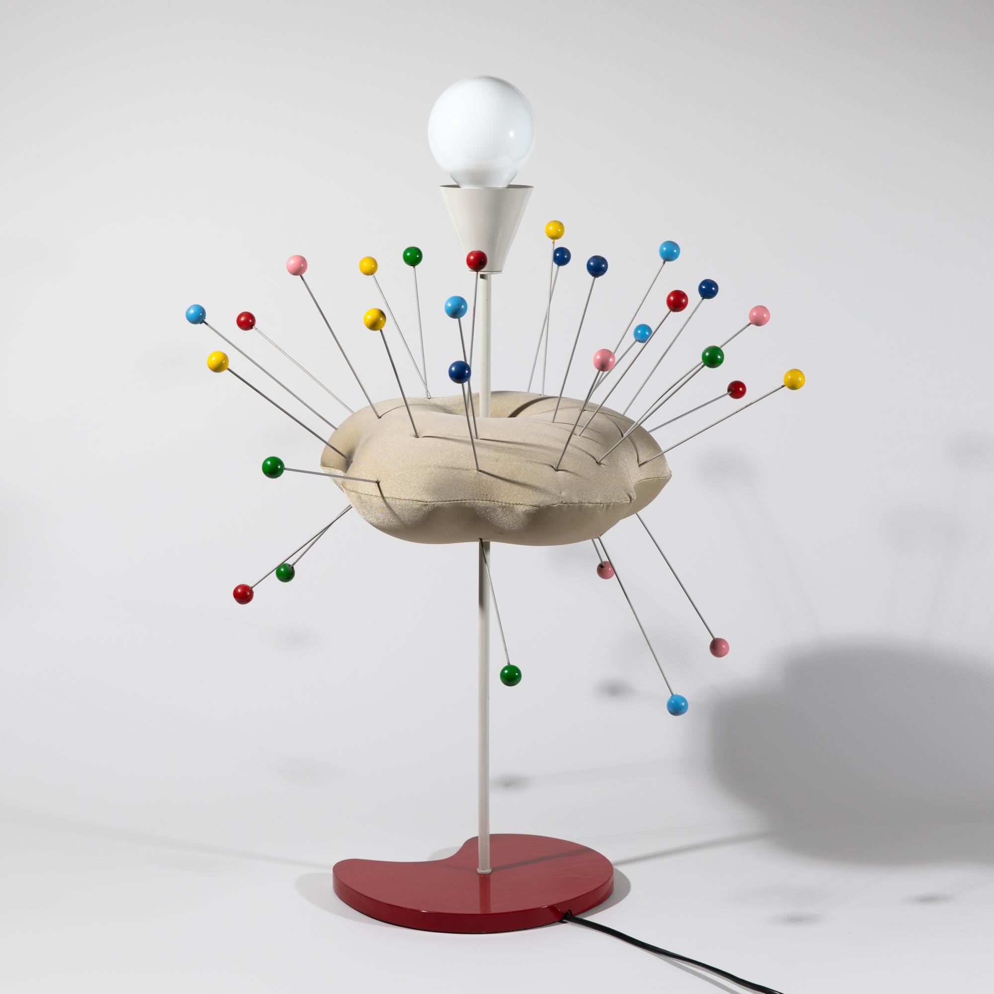 Diese Leuchte wurde im Frühjahr 1987 bei einer Gemeinschaftsausstellung von u. a. Alchimia, Andrea Branzi und Alessandro Mendini, bei Made In, Düsseldorf ausgestellt und vom aktuellen Besitzer dort erworben.