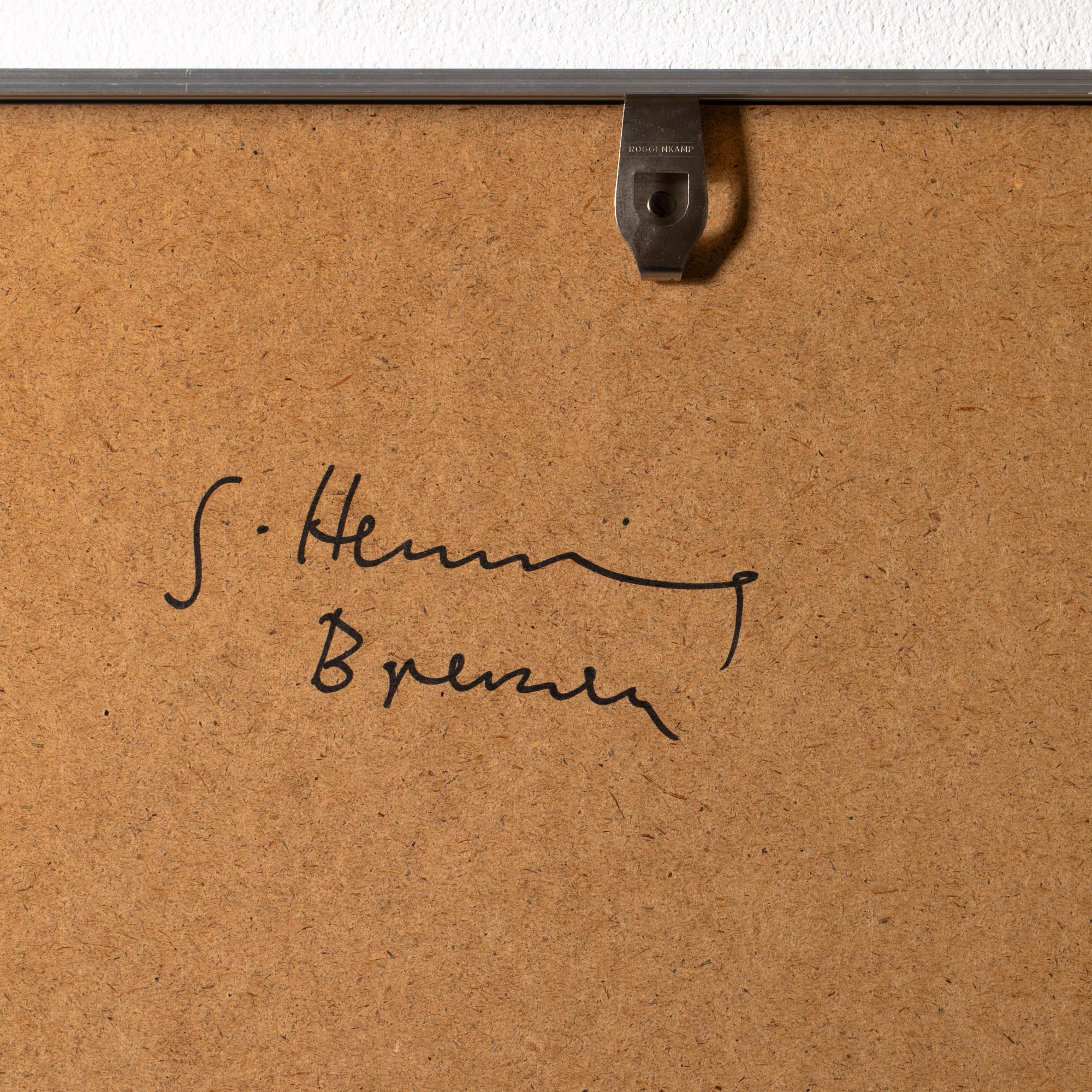 Buntstift auf Papier. Ca. 80 x 70 cm. Unten links signiert und datiert: Henning 1980 (Bleistift), verso auf dem Rahmen signiert und mit Ortsbezeichnung: G. Henning Bremen (schwarzer Faserstift) sowie auf einem Klebeetikett bezeichnet und falsch datiert: Gerda Henning / Ohne Titel87 / Farbstift. Unter Glas gerahmt und so beschrieben.