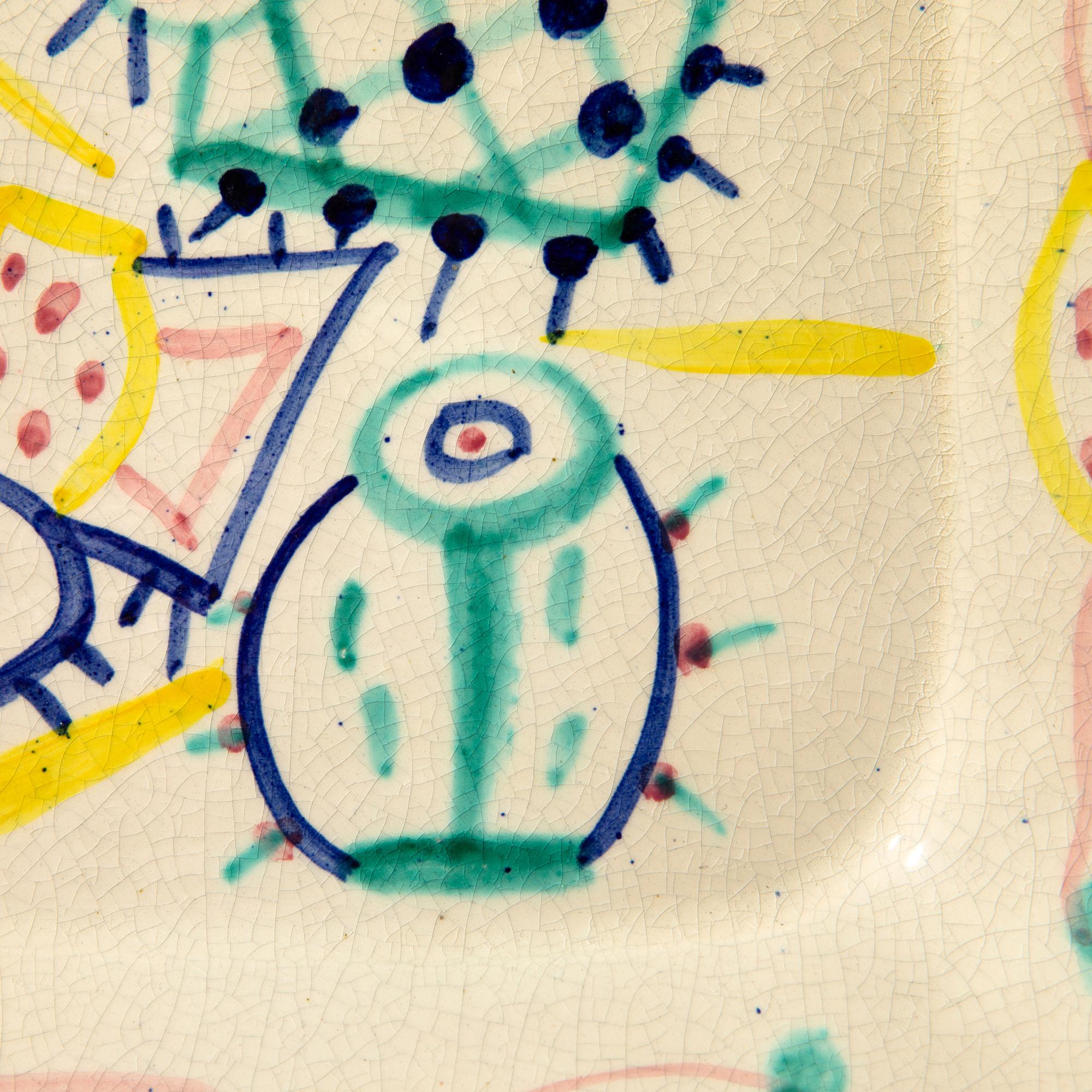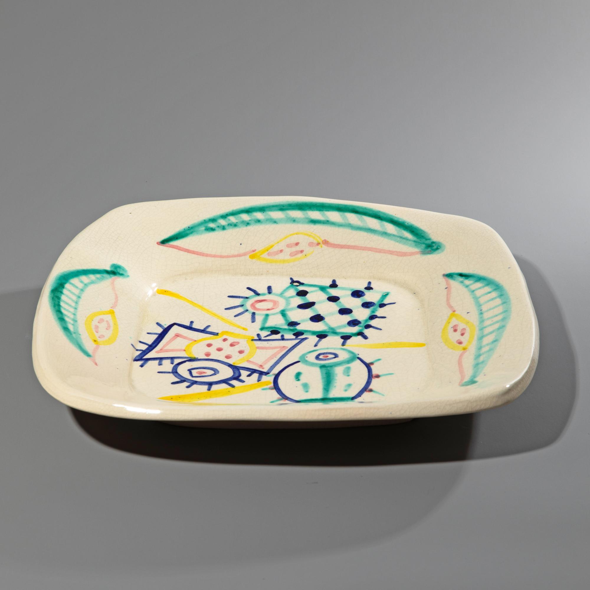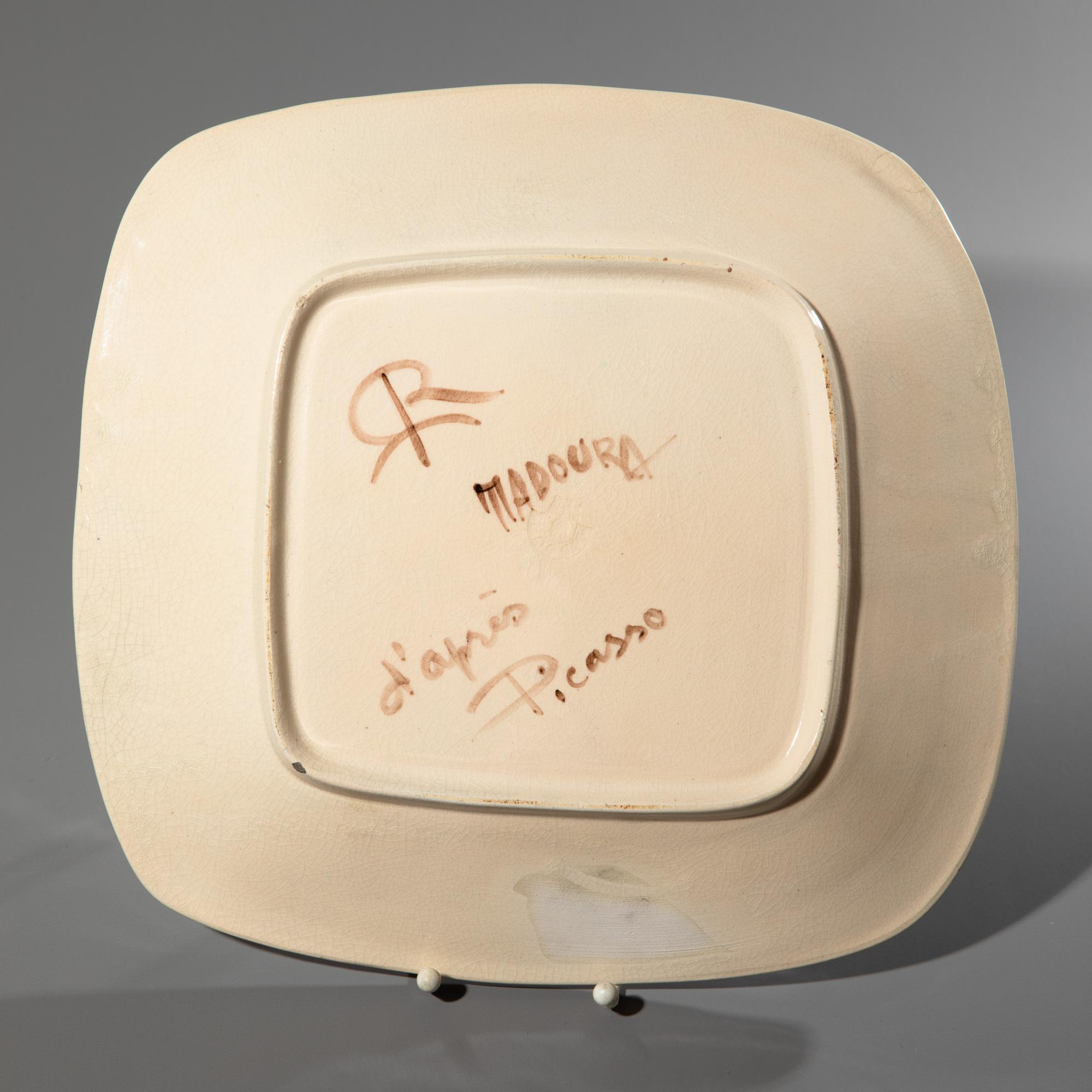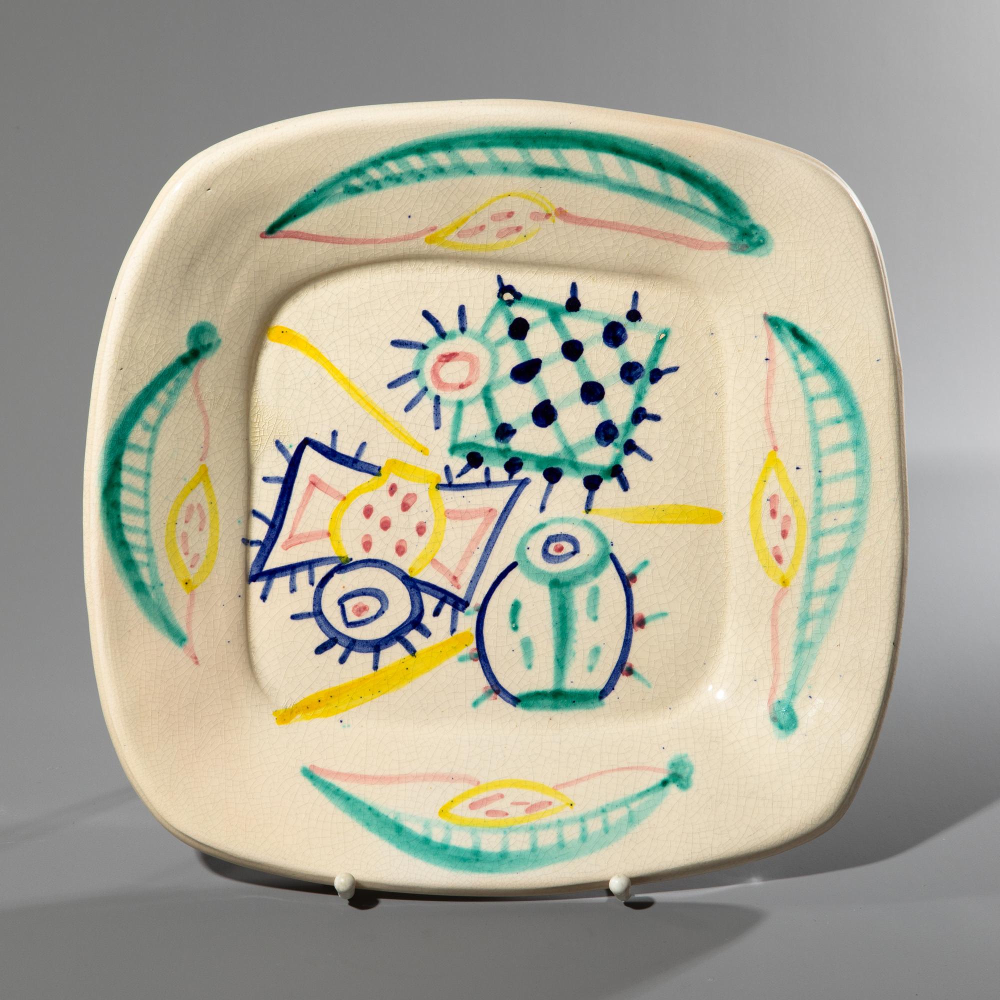 Entwurf 1948. Keramik, polychrom bemalt. Aus der Serie ‘Fruits de Provence'. Aus einer unnummerierten Auflage von 100 Stück. 33,5 x 33,5 cm. Unterseitig bezeichnet: CR (Monogramm von Suzanne Ramié), MADOURA PLEIN FEU EDITION PICASSO (Pressmarke), MADOURA, d'après Picasso (gemalt).