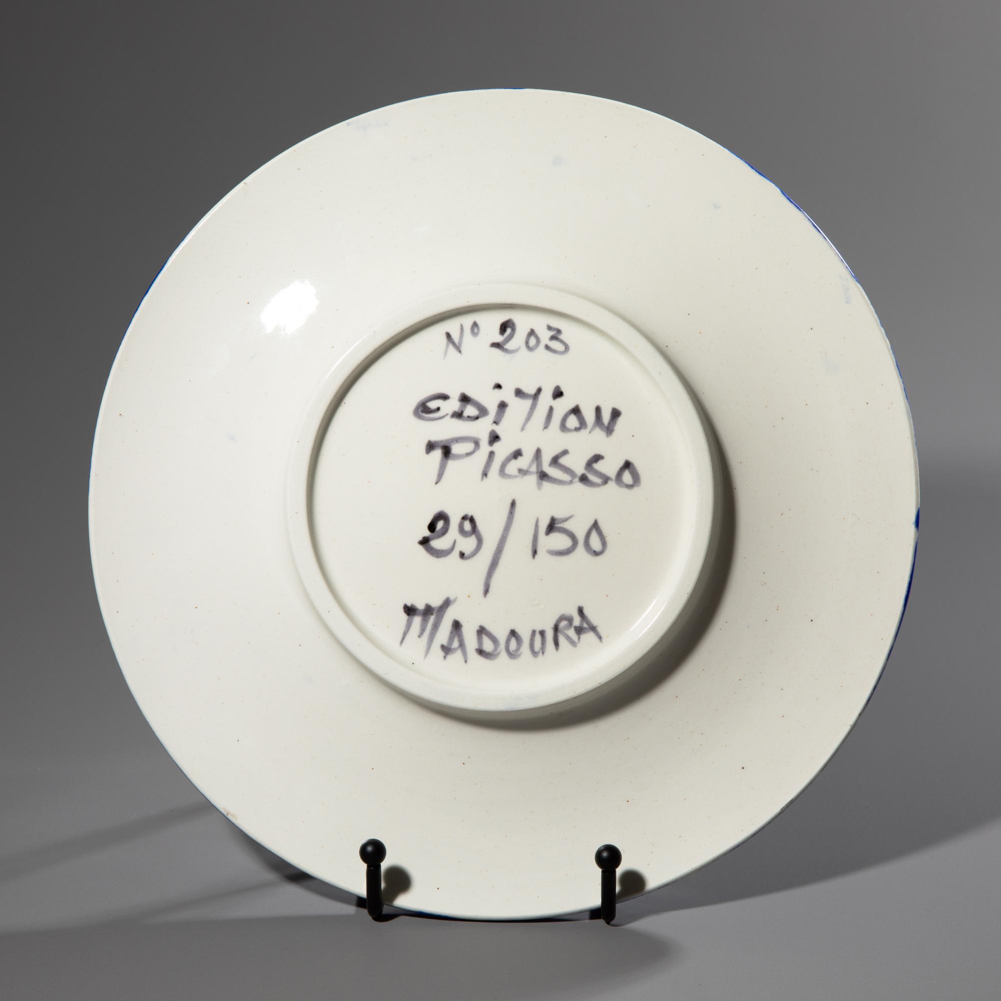 Flache Fayence, glasiert und bemalt. D. 25,5 cm. Nummeriert 29/150, betitelt, mit den Inschriften Edition Picasso und Madoura,